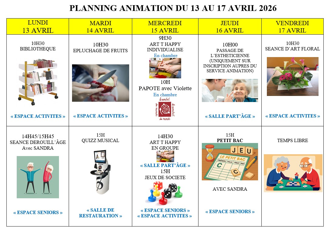 Au sein de l’EHPAD l’animation participe à l’amélioration de la qualité de vie des résidents en prenant en compte les souhaits et les possibilités de chacun.