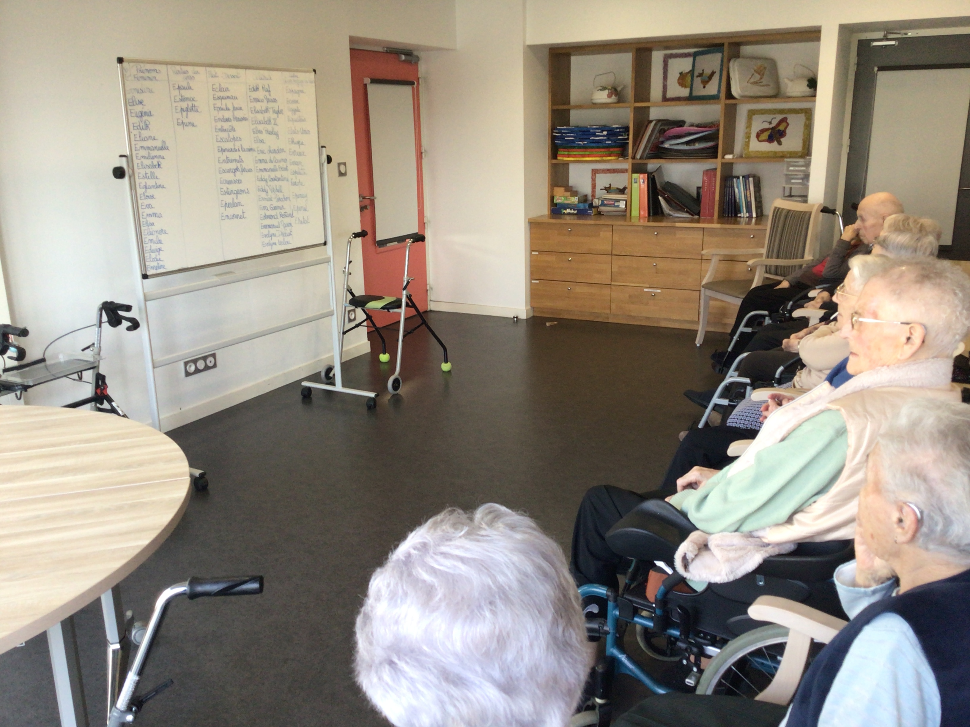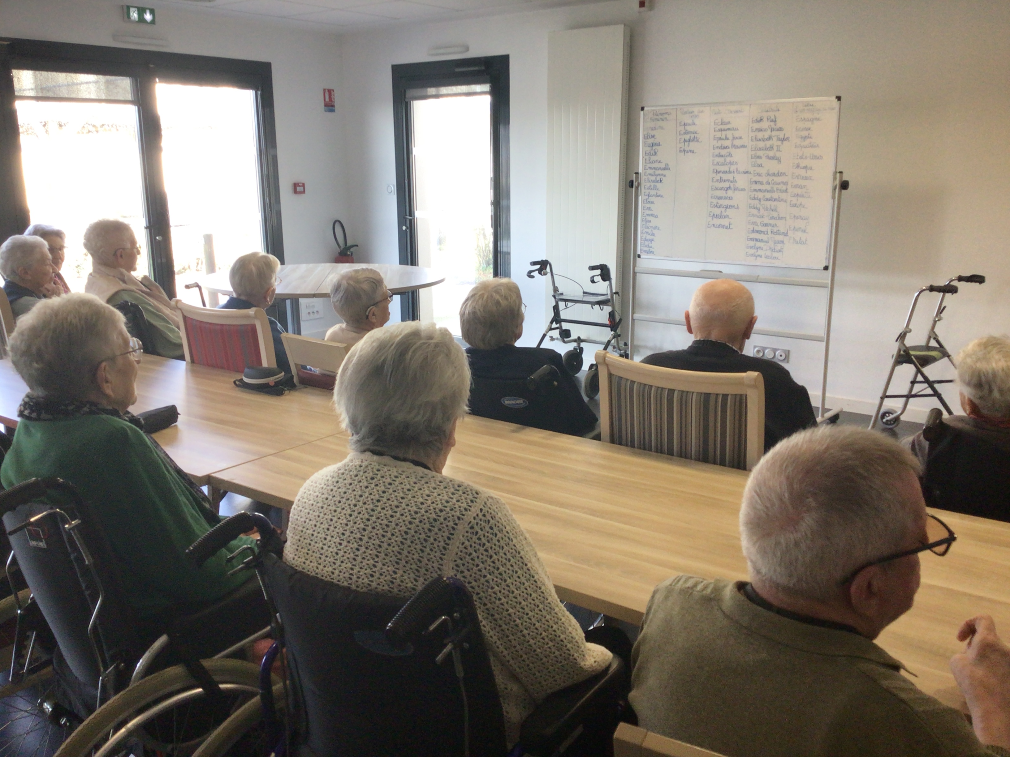Le Petit Bac proposé cet après-midi avait réuni un bon nombre de résidents. Ce jeu de mémoire collectif plaît beaucoup aux résidents, il permet une stimulation cognitive mais aussi d'encourager les interactions sociales.