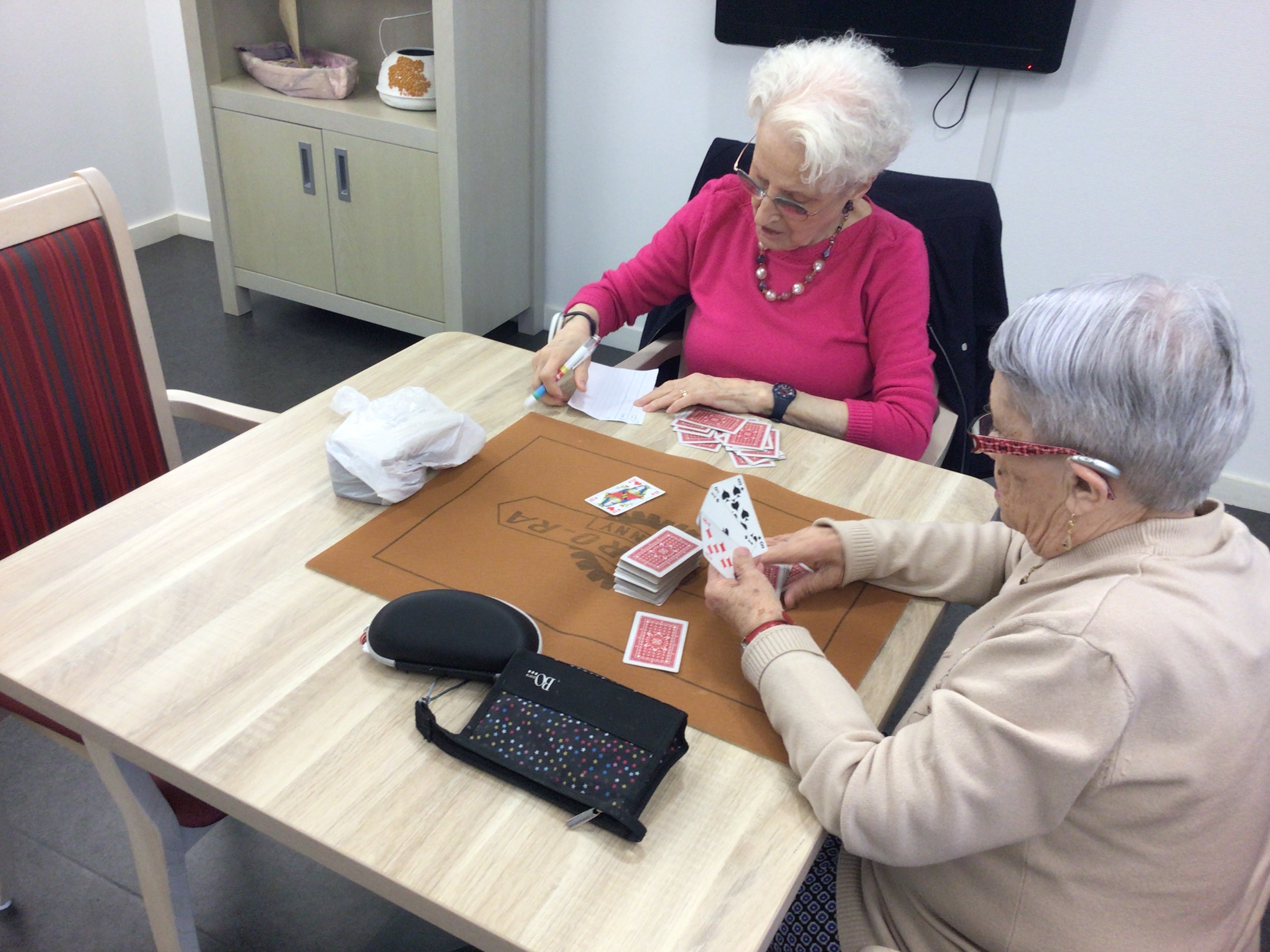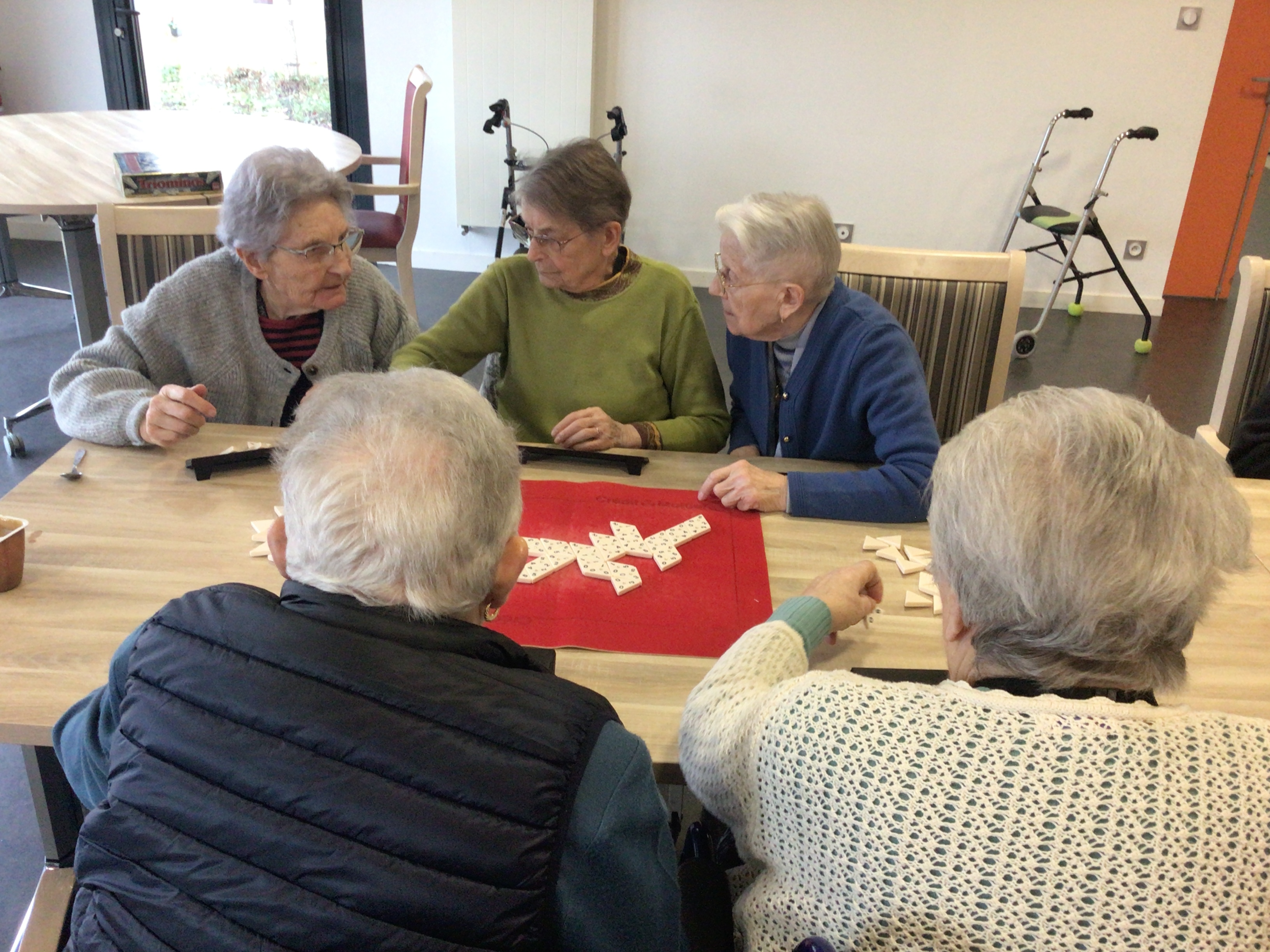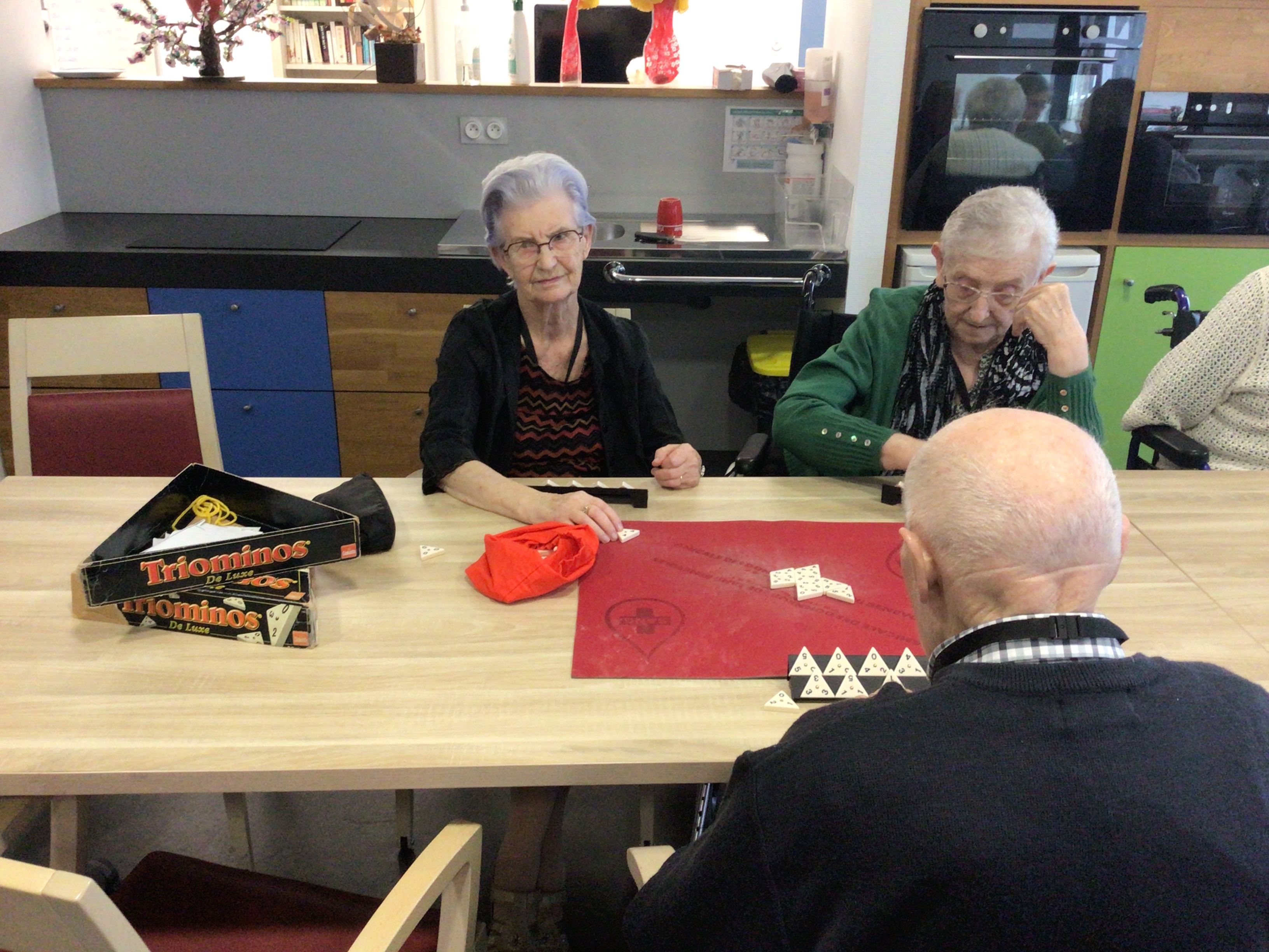 Des résidentes se sont retrouvées autour de la table de jeux. Un bel outil numérique pour développer la motricité fine, divertir et renforcer les liens sociaux.