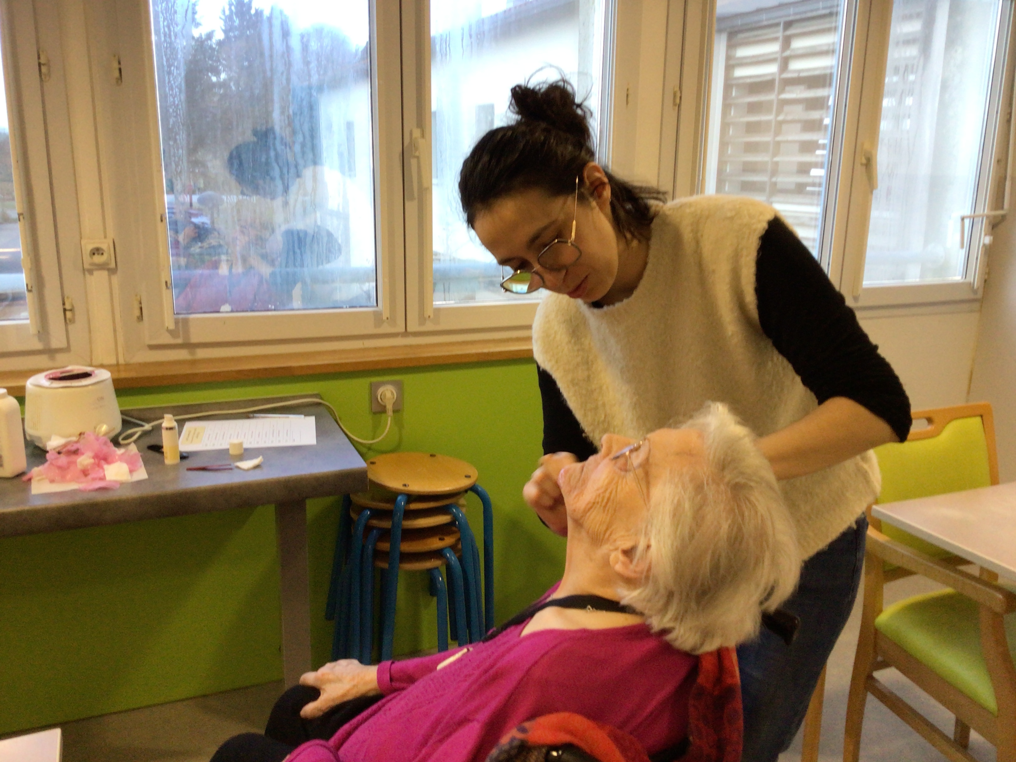 Son intervention chaque mois permet aux résidentes de profiter de ce moment d'esthétique, temps important pour l'estime de soi.