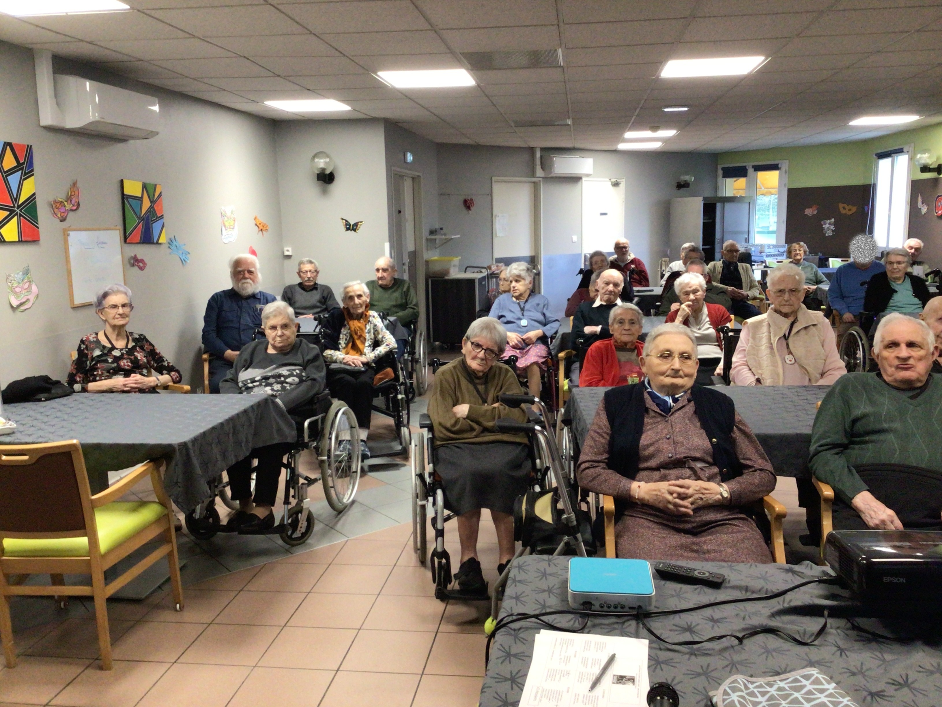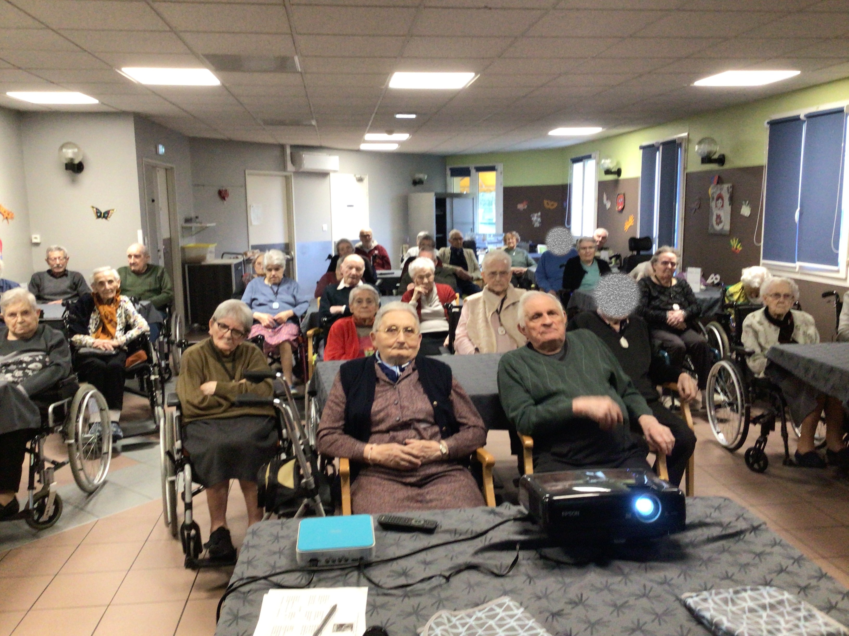 après midi: film "je vous trouve très beau" avec Michel Blanc. les Résidents ont apprécié la beauté du film et le fait que ce soit à la campagne. Au moemnt du goûter, les résidents ont pu raconter leurs souvenirs : cultiver les parcelles, traire les vaches,...