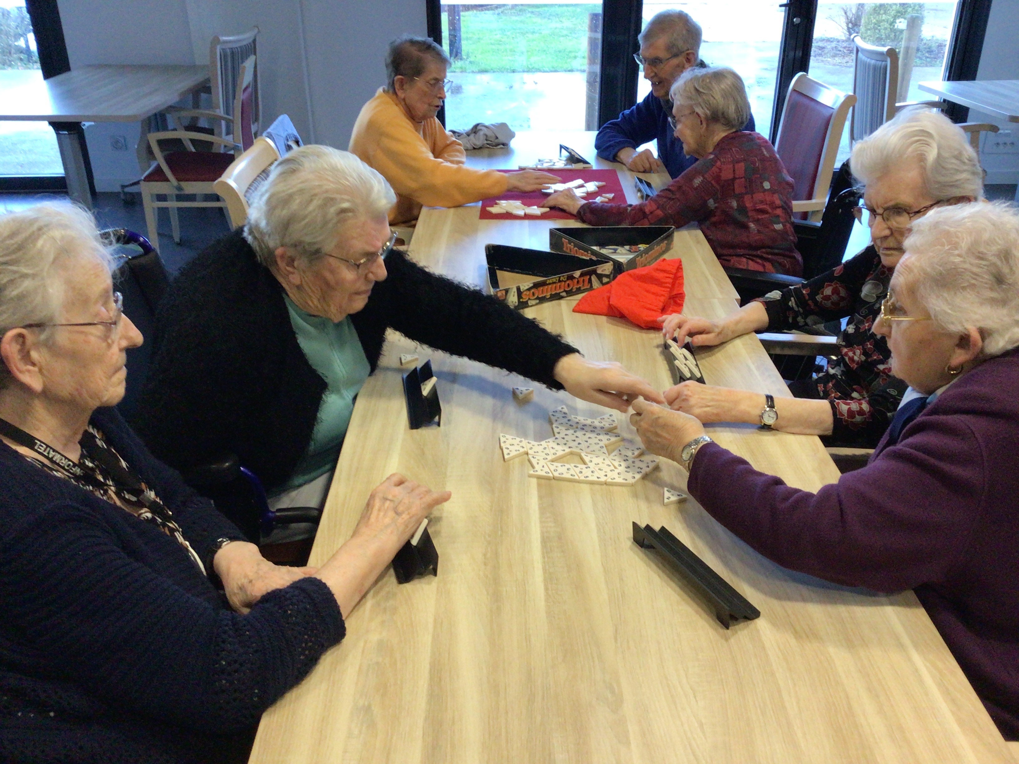 Jeu coopératif car les résidents s'entraident durant la partie. Ce jeu permet de faire travailler sa mémoire et d'échanger sur la bonne écriture du mot et sa définition. exemple: Onyx.
