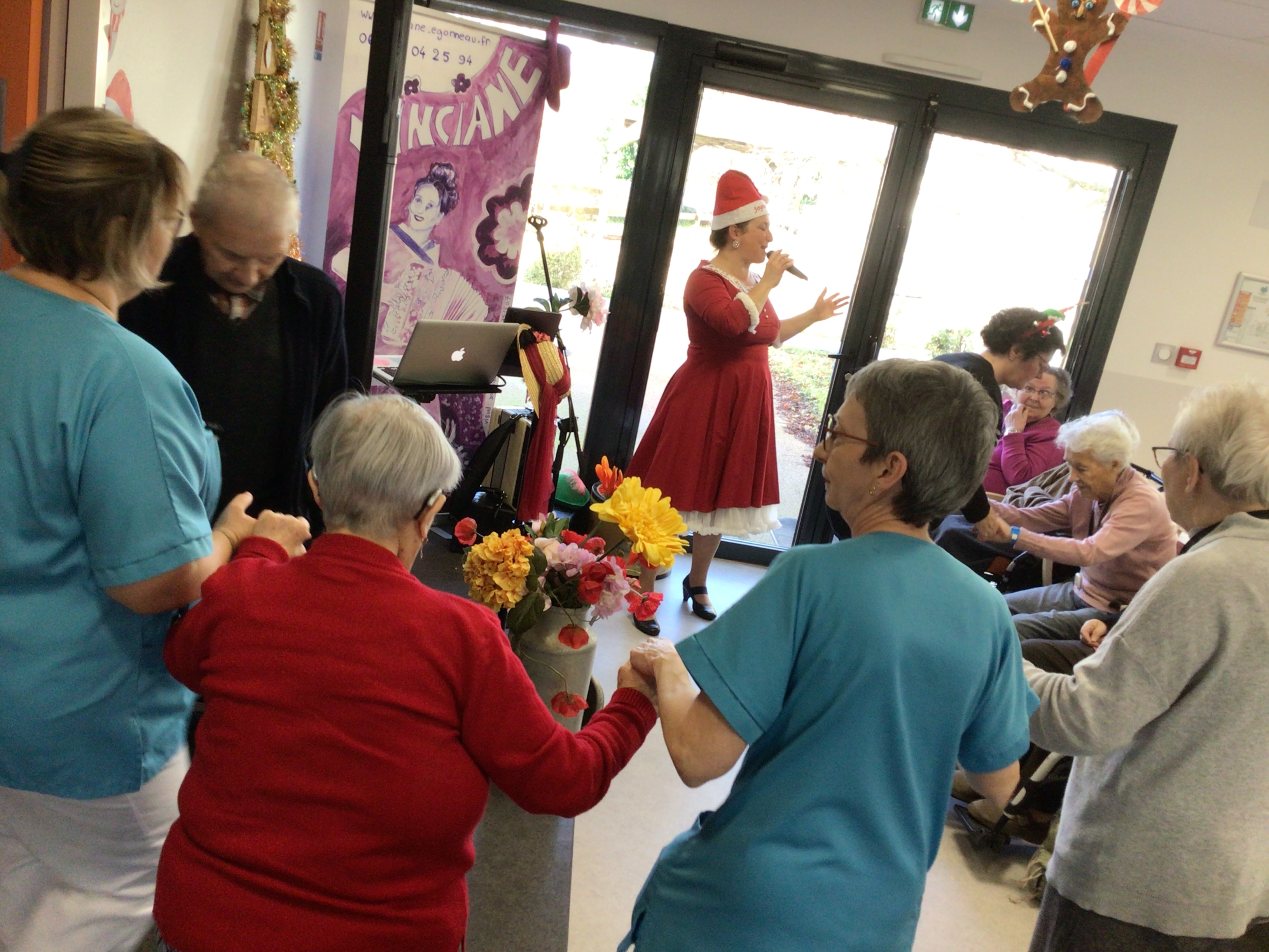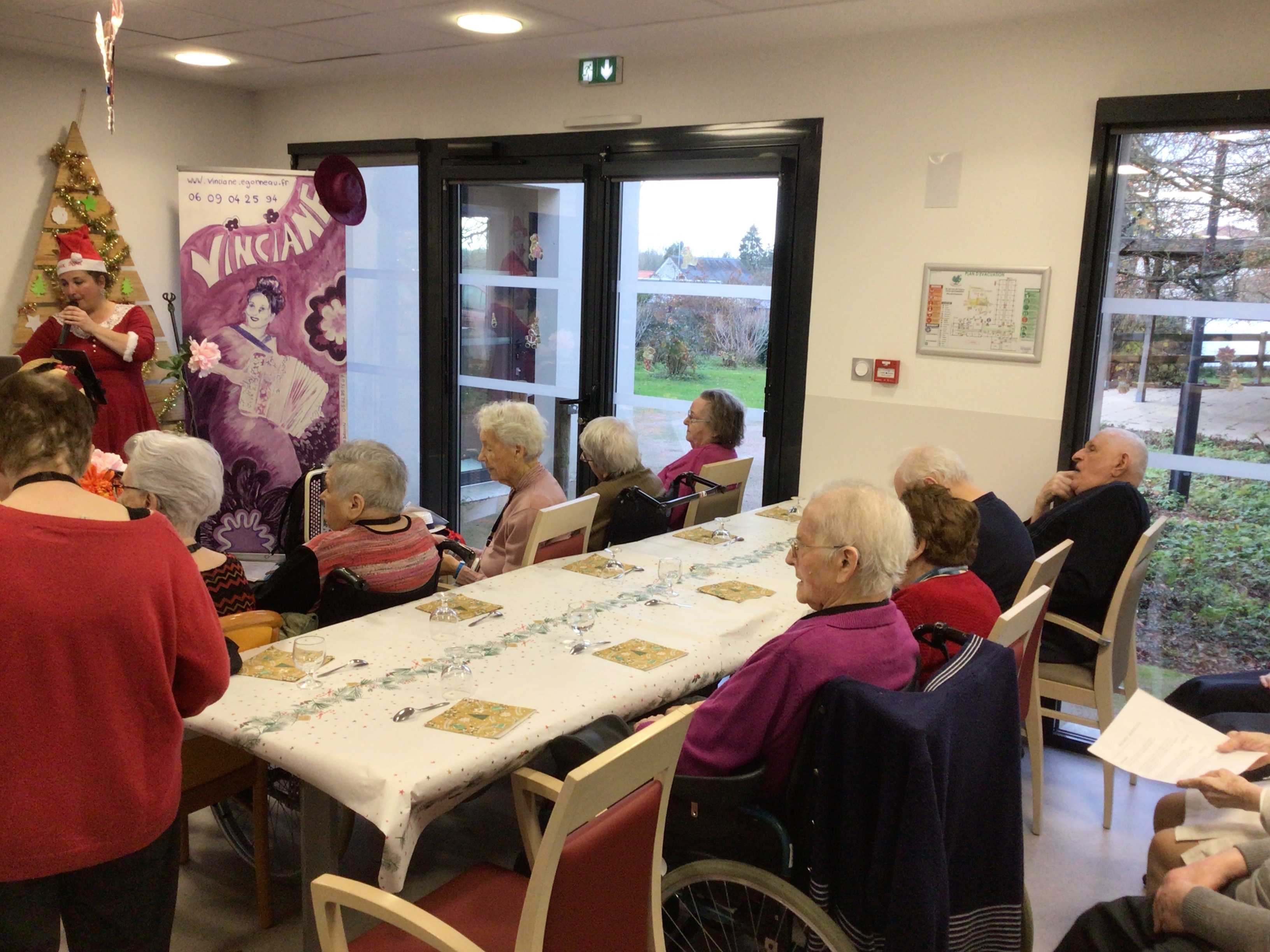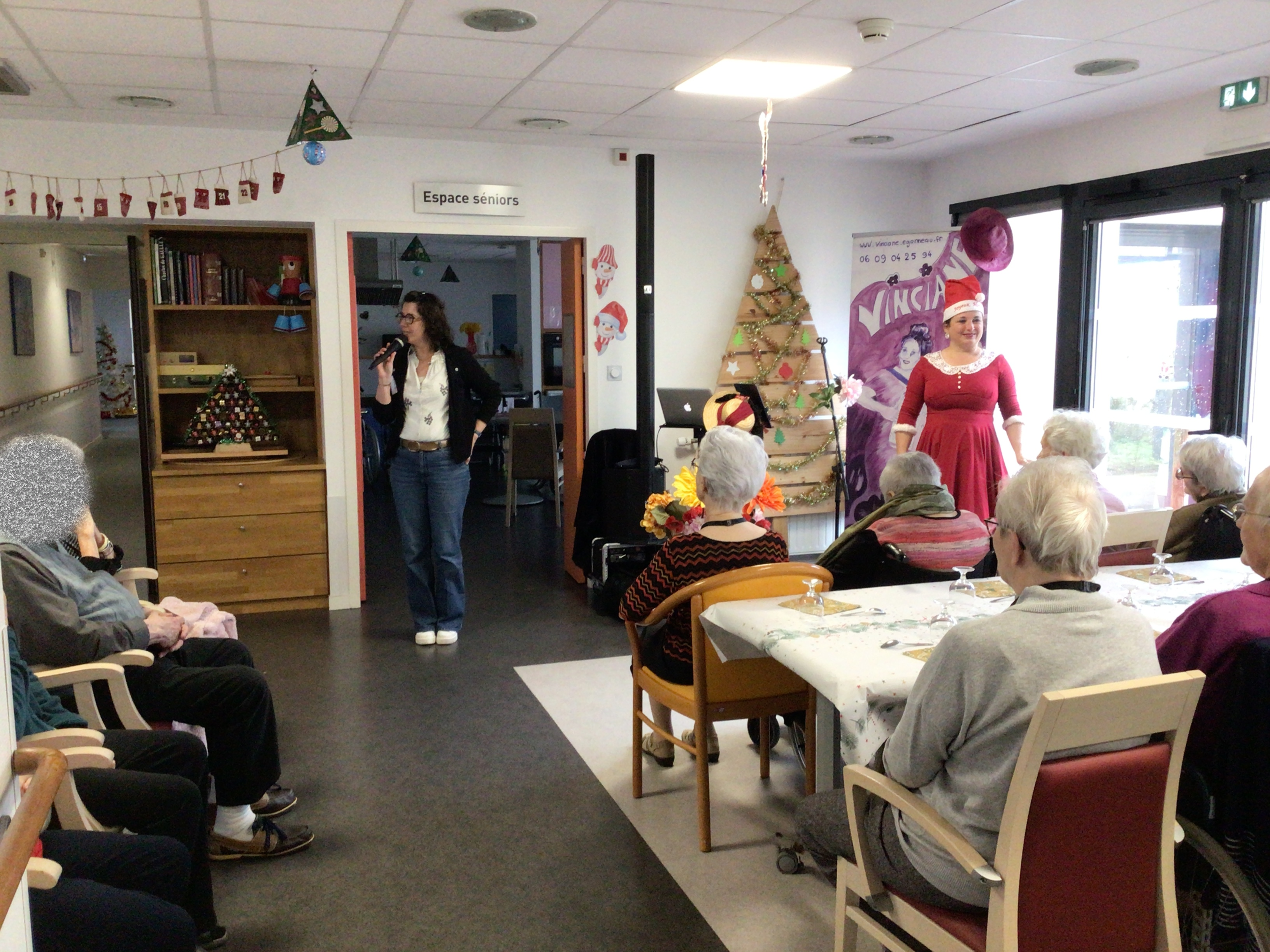 Le goûter de Noël au sein de l’EHPAD a réuni l’ensemble des résidents autour d’un bon moment musical animé par Vincianne Egonneau artiste chanteuse en collaboration avec les animatrices Claudie et Sandra.