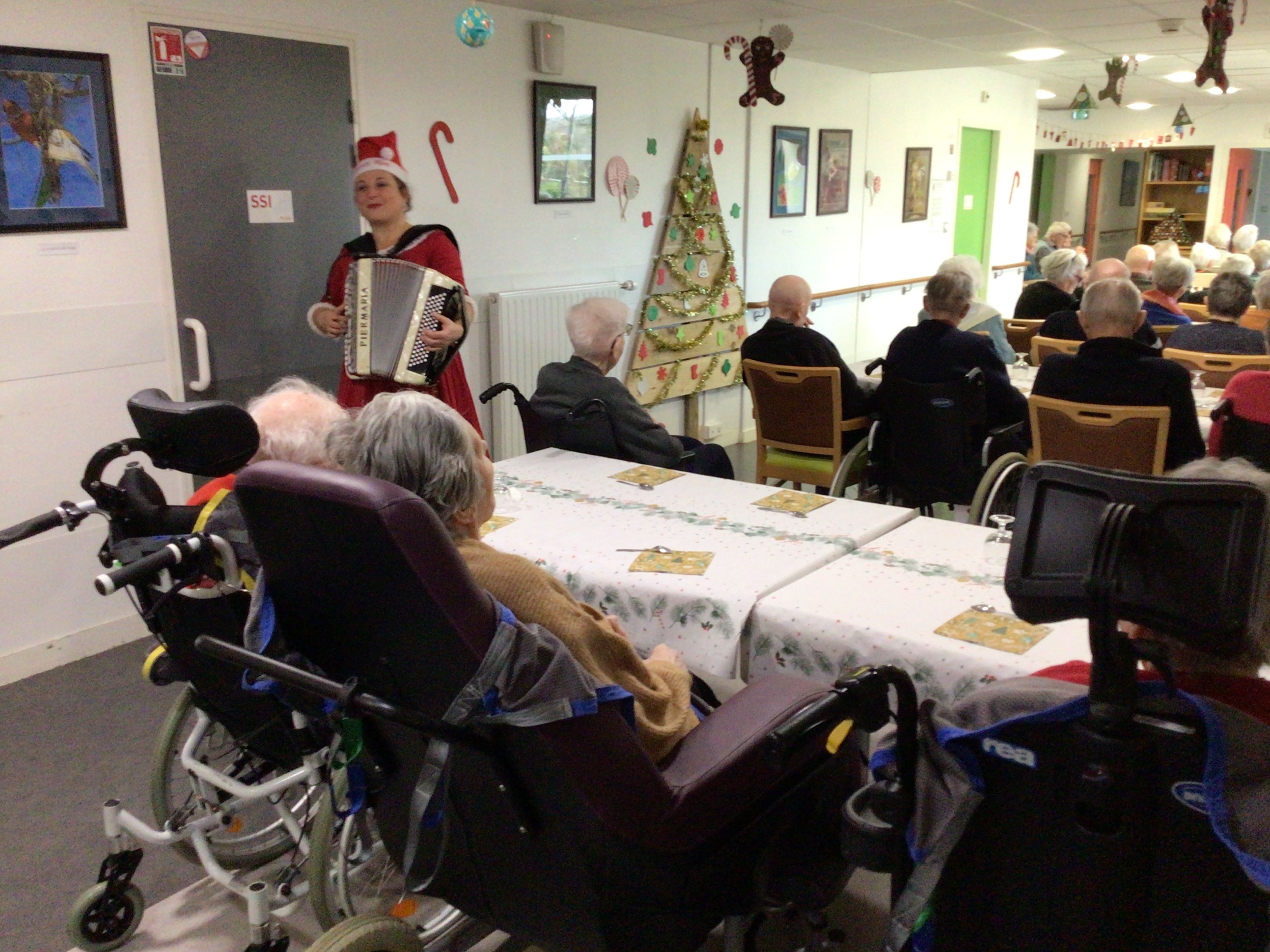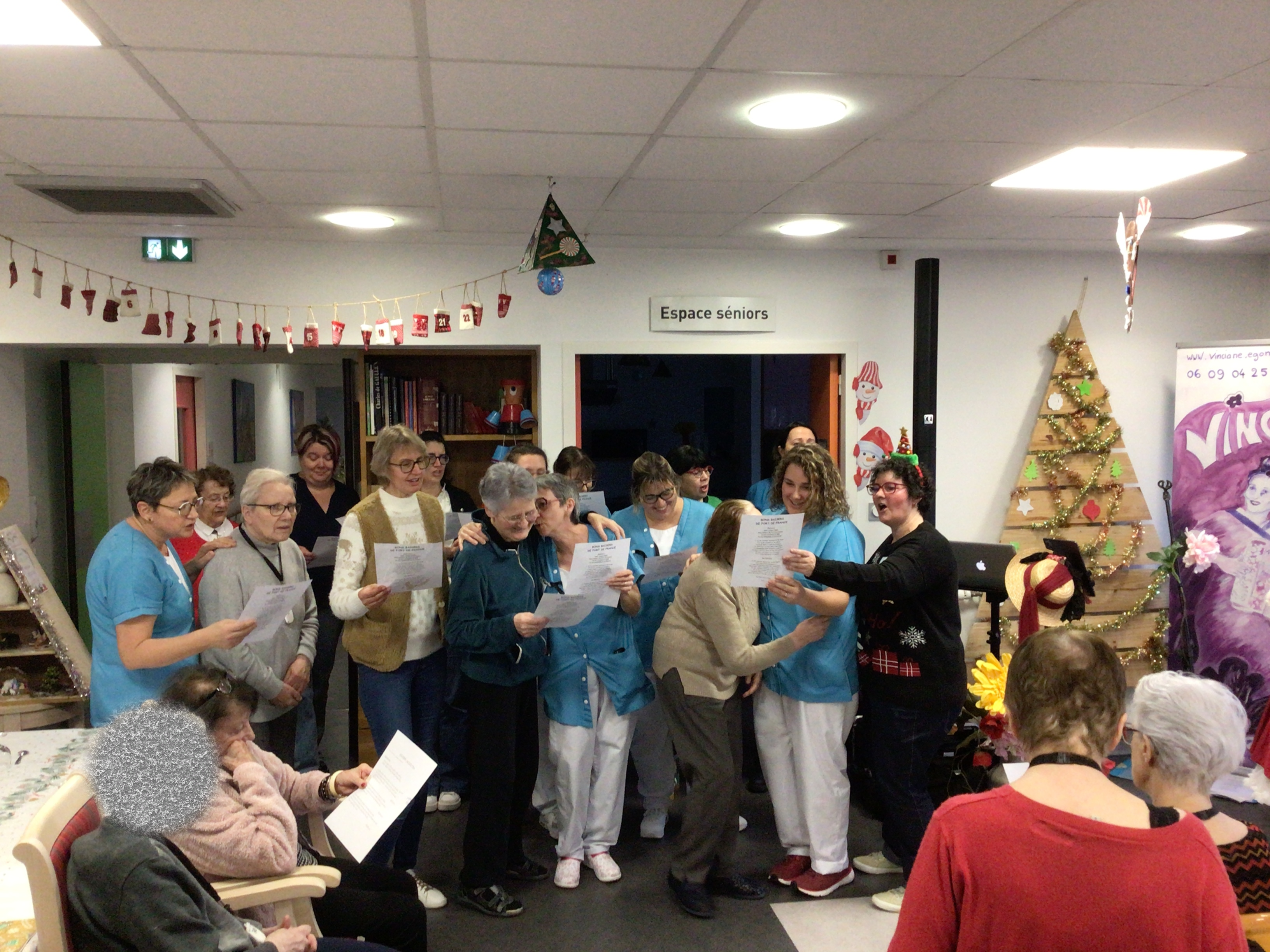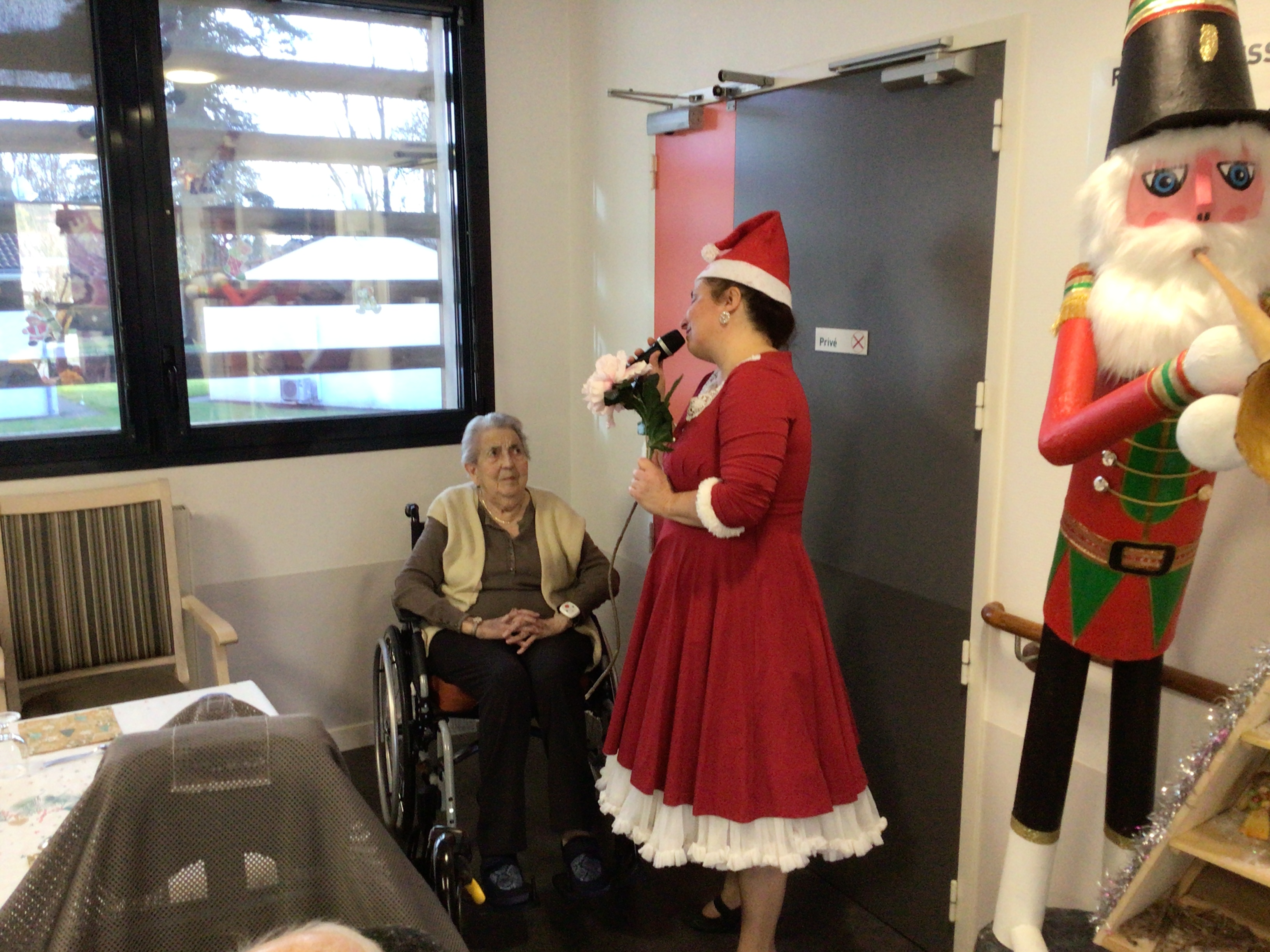 Le goûter de Noël au sein de l’EHPAD a réuni l’ensemble des résidents autour d’un bon moment musical animé par Vincianne Egonneau artiste chanteuse en collaboration avec les animatrices Claudie et Sandra.