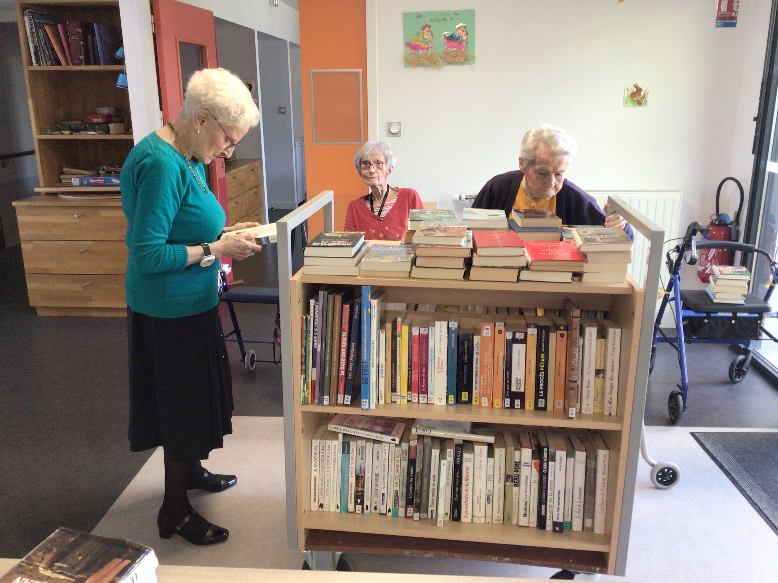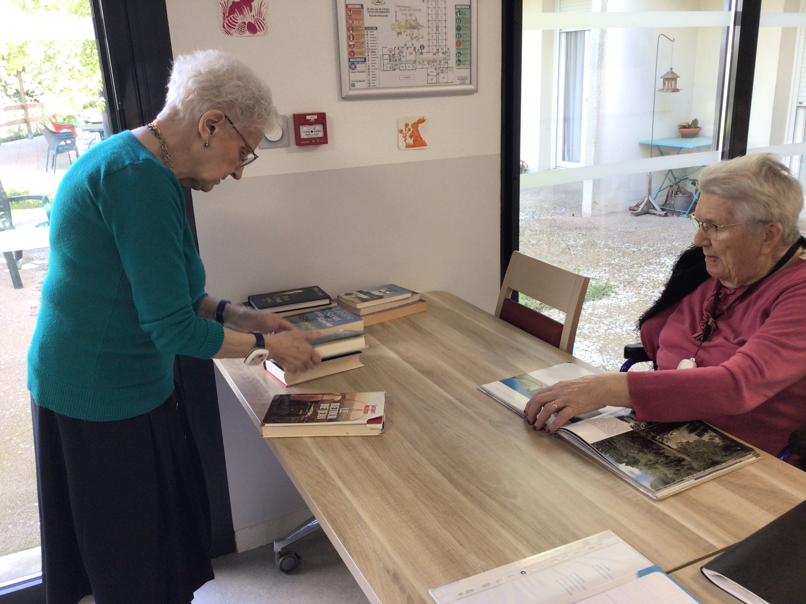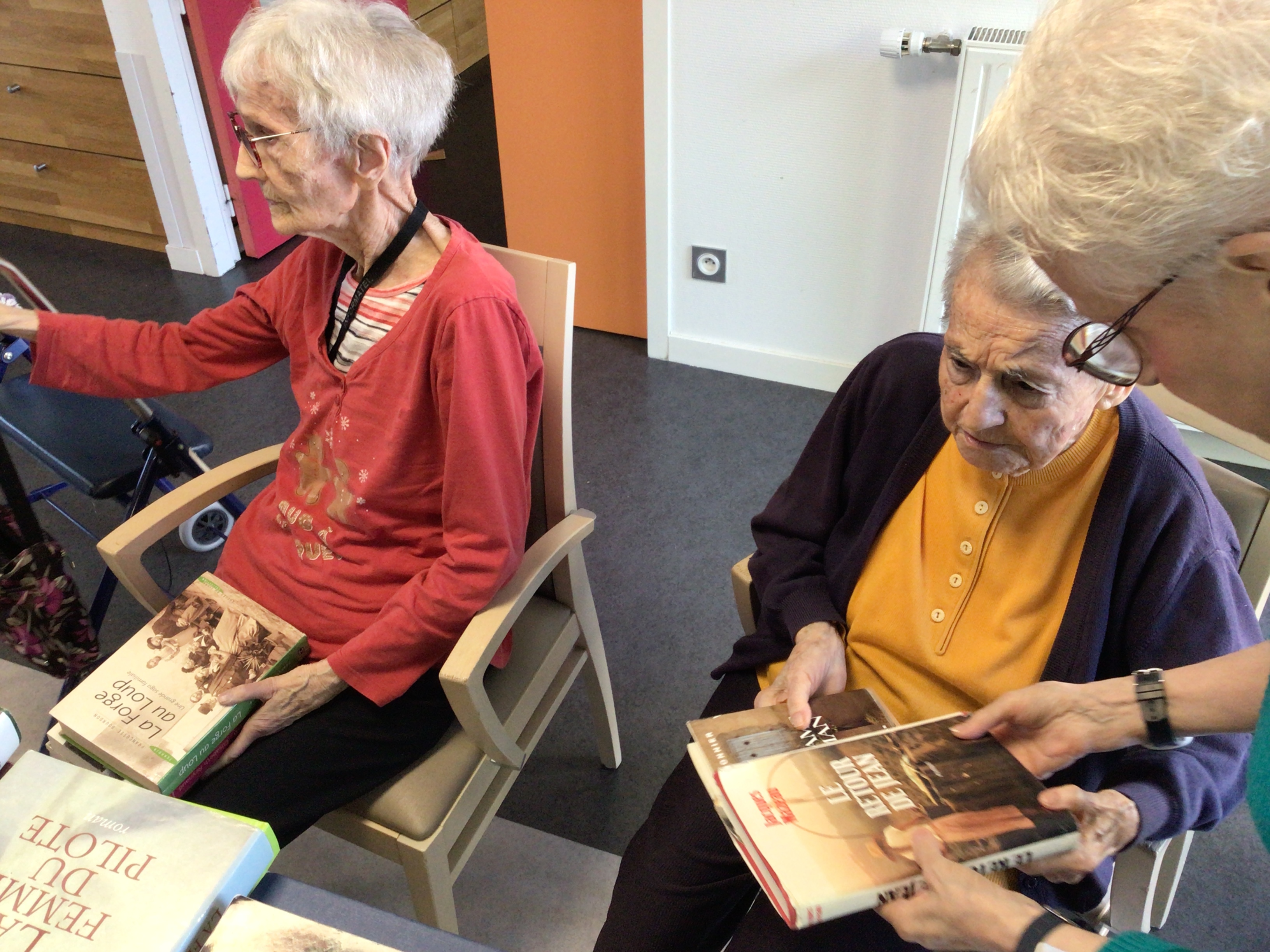 Un échange de livre pour certains qui profitent de ce temps autour des livres pour papoter avec les autres résidents.