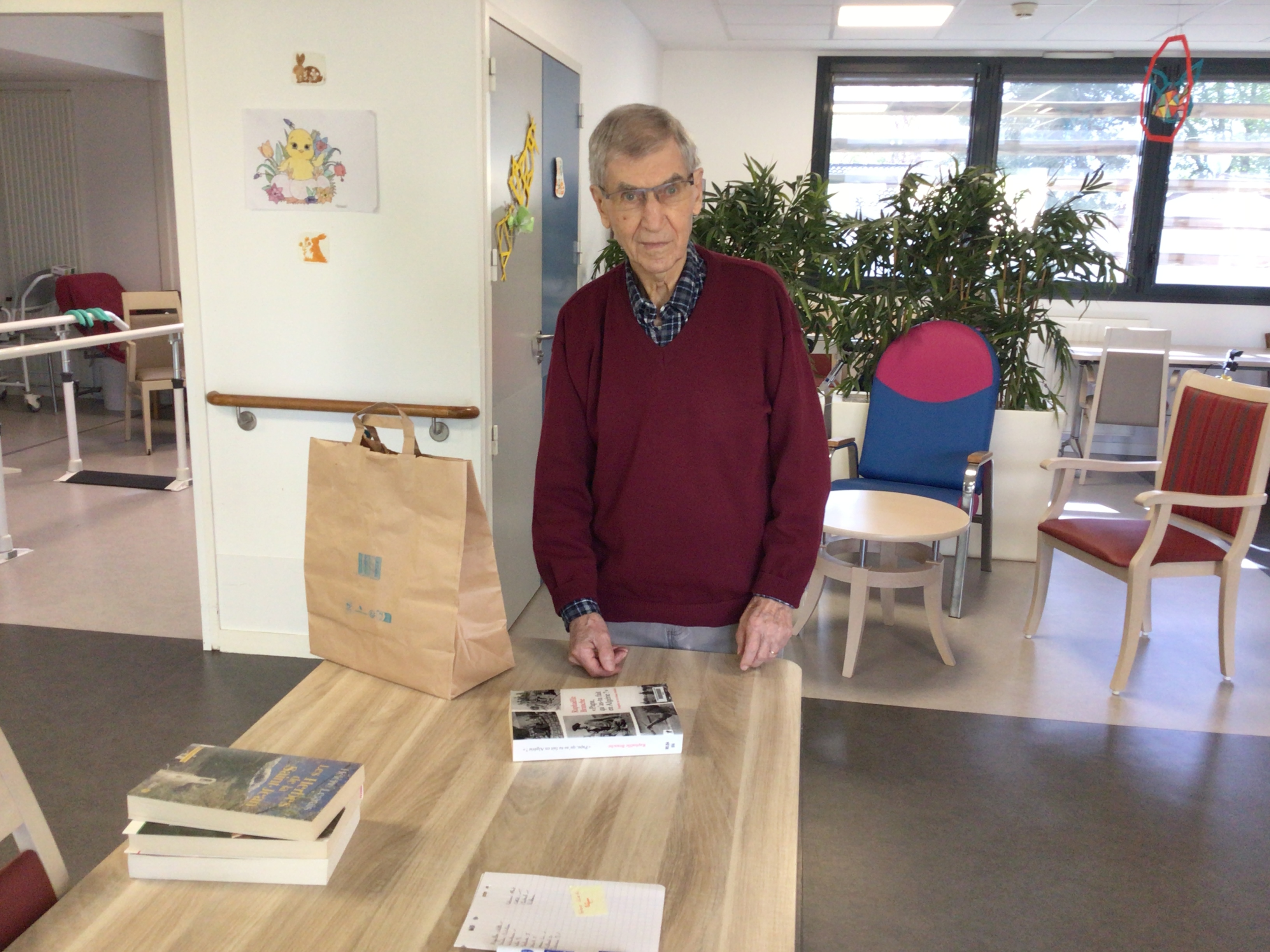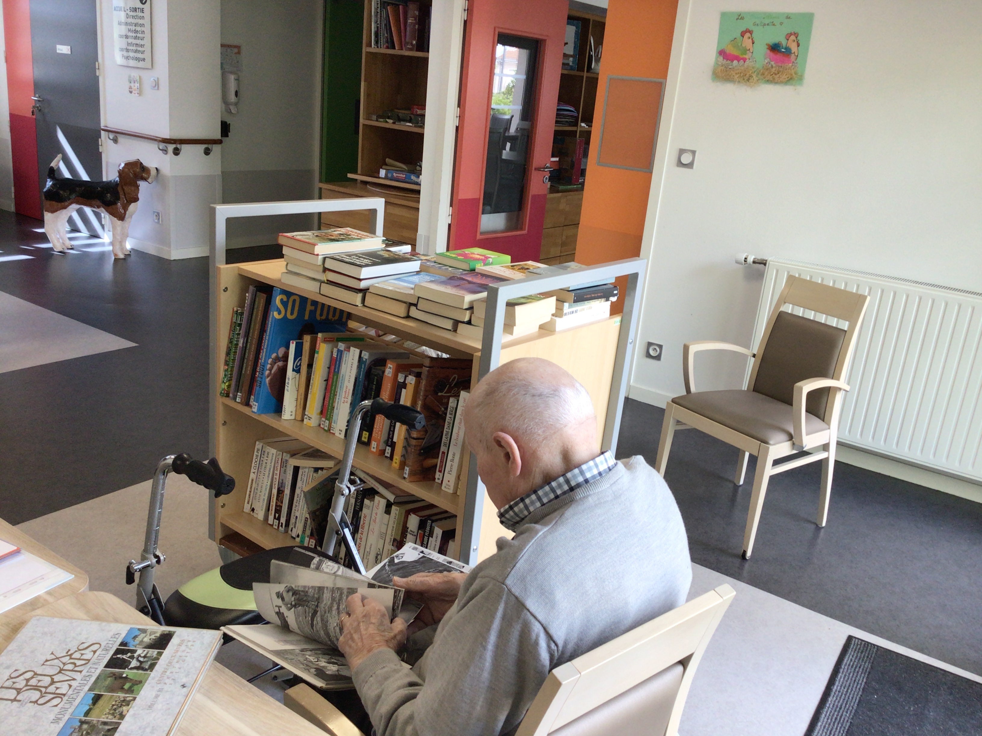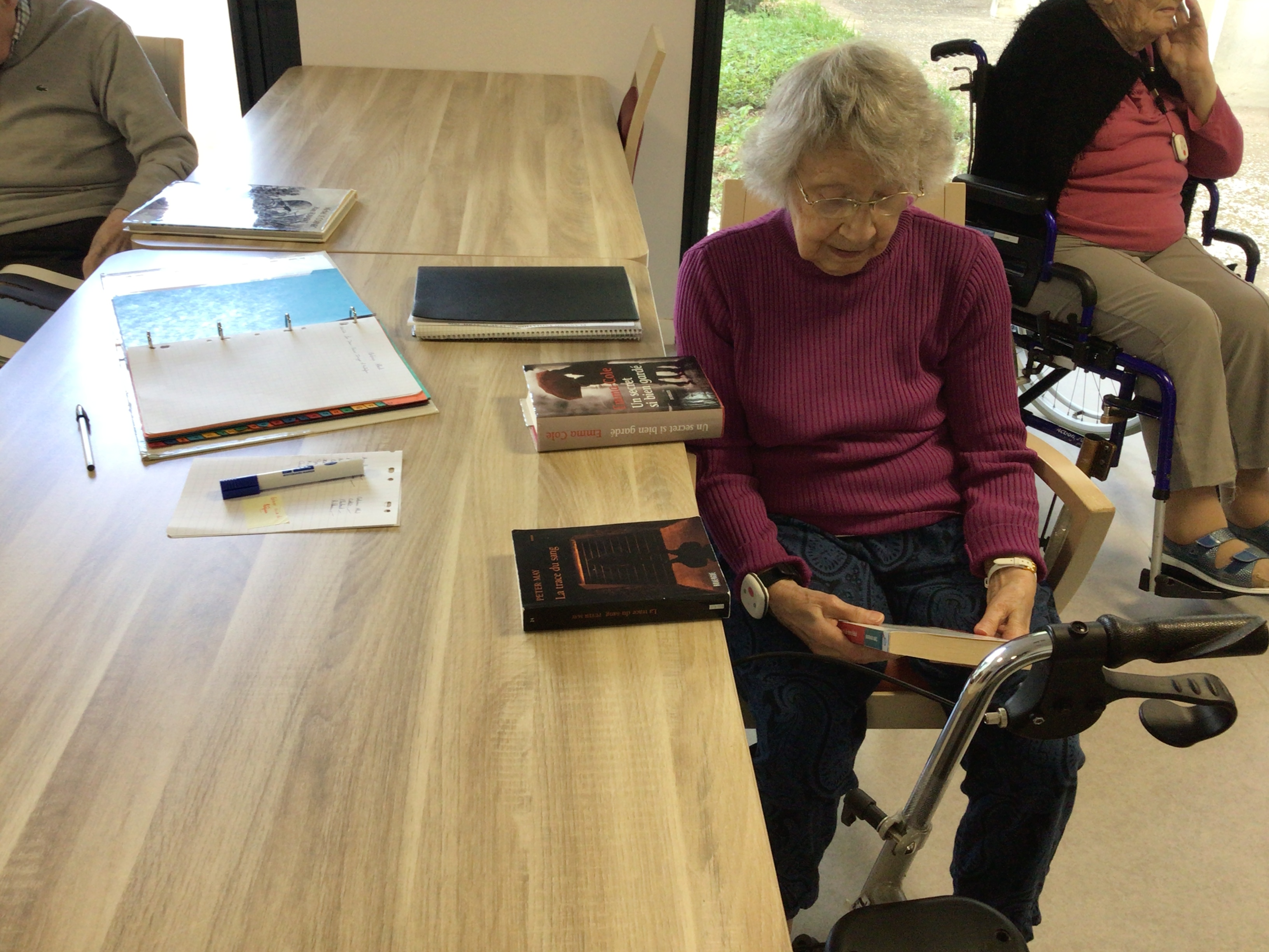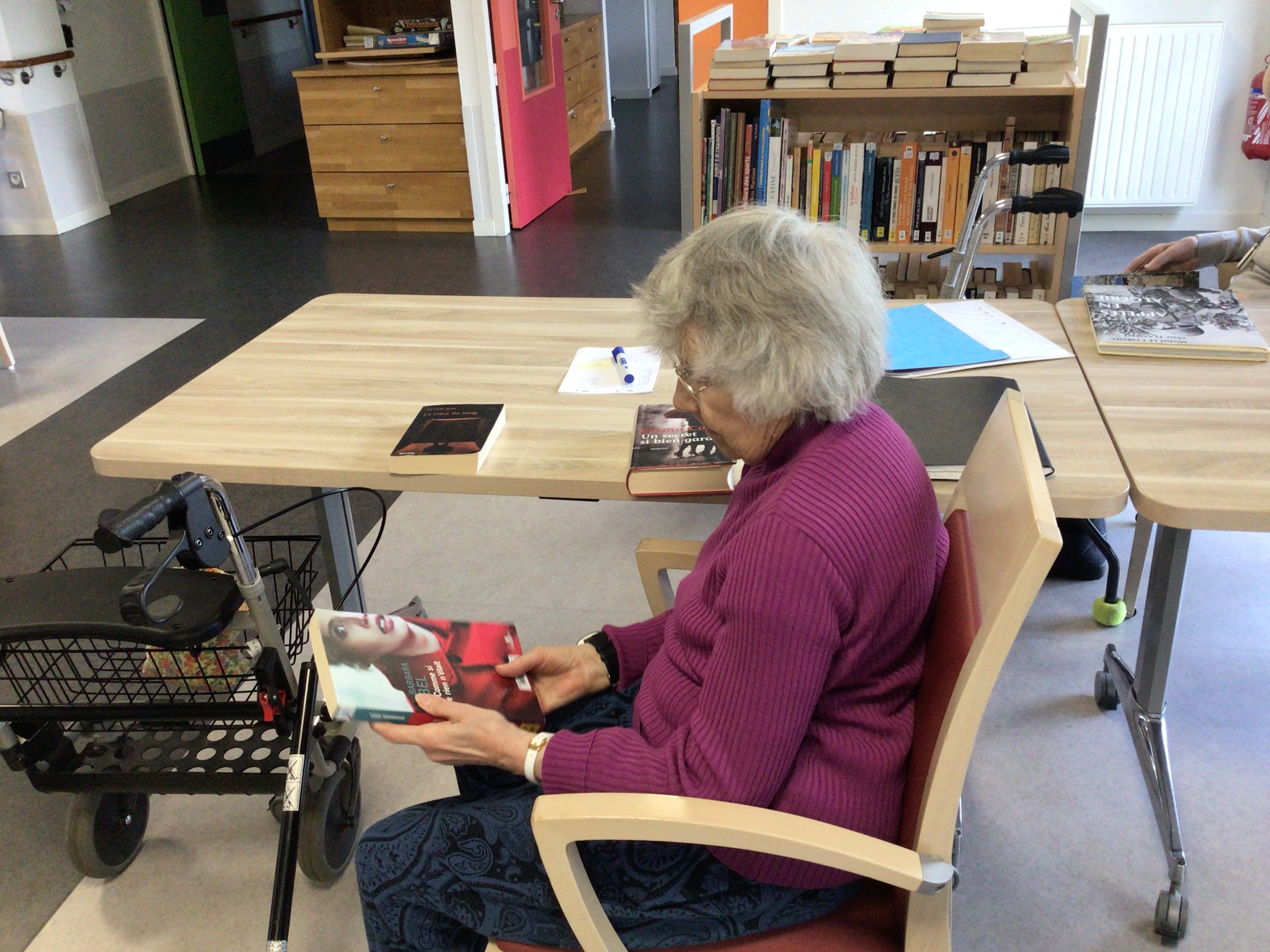 Un échange de livre pour certains qui profitent de ce temps autour des livres pour papoter avec les autres résidents.