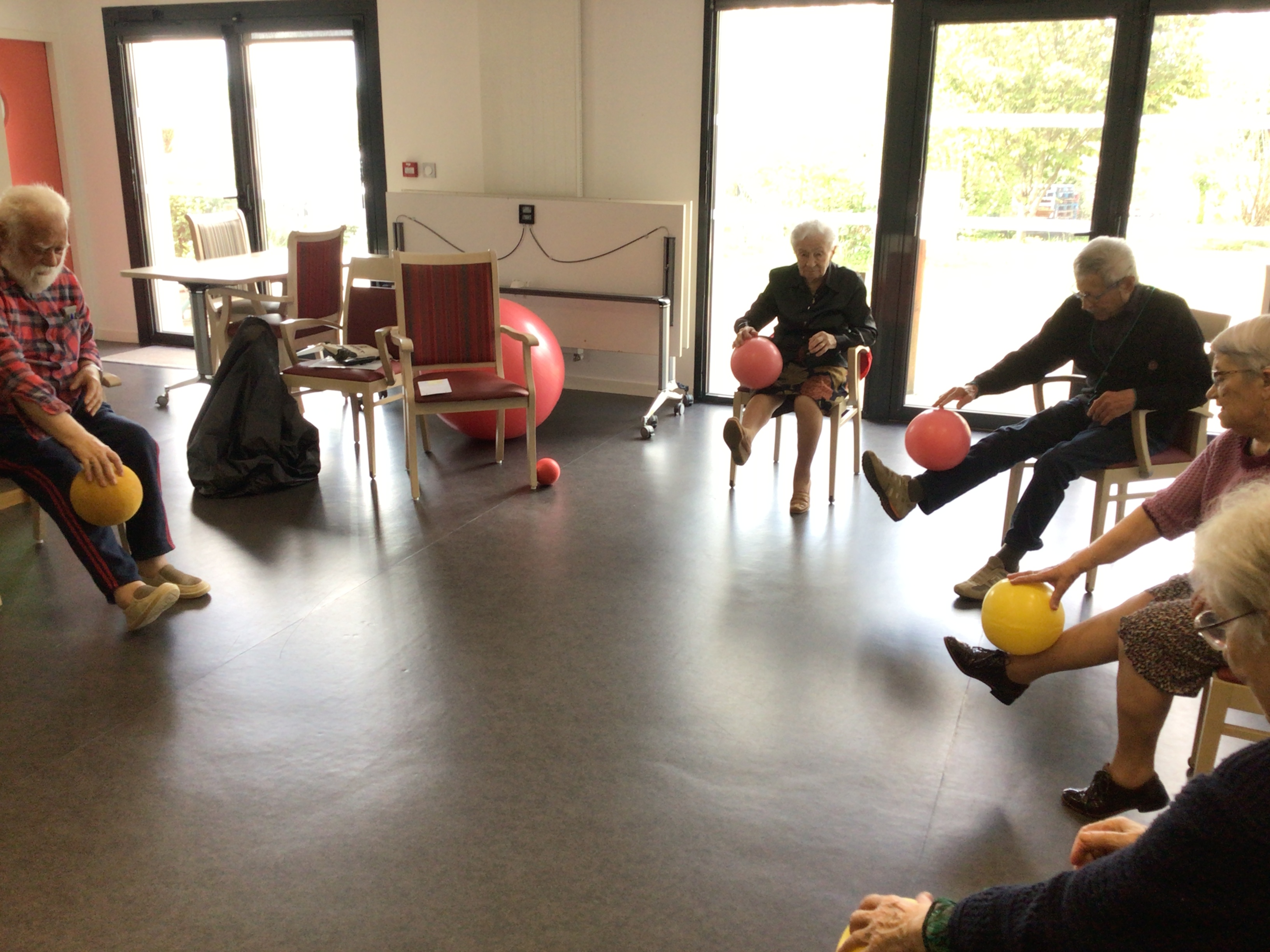 Séance Dérouill’âge cet après-midi, des exercices de renforcement musculaire adaptés au groupe, un moment de sport détente, de jeux et surtout le plaisir d’être ensemble.