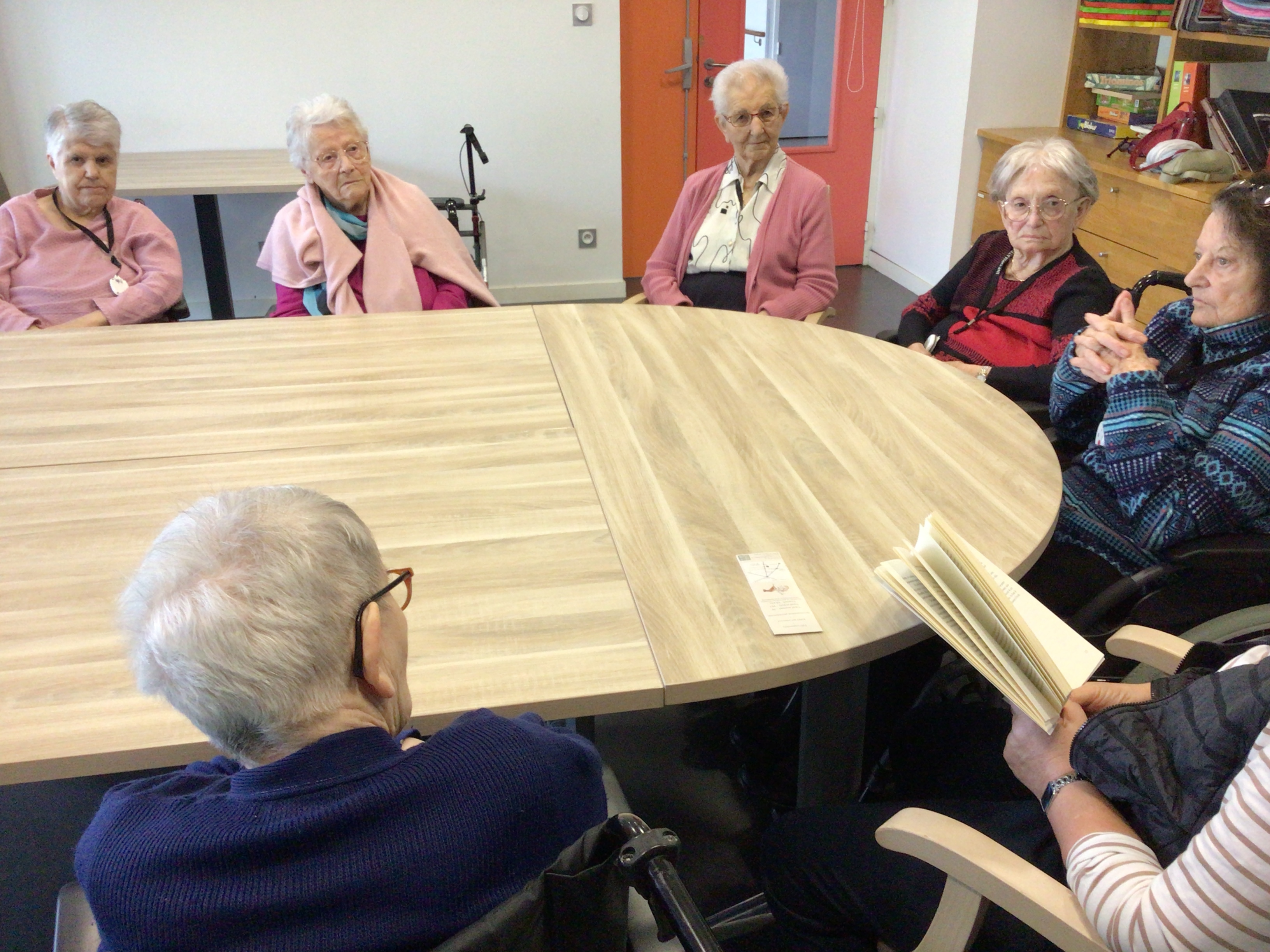 Reprise de l'atelier "Lecture à haute voix" ce matin, avec les bénévoles qui avaient pour l'occasion trouver de nouvelles lectures pour les résidents qui étaient présents.