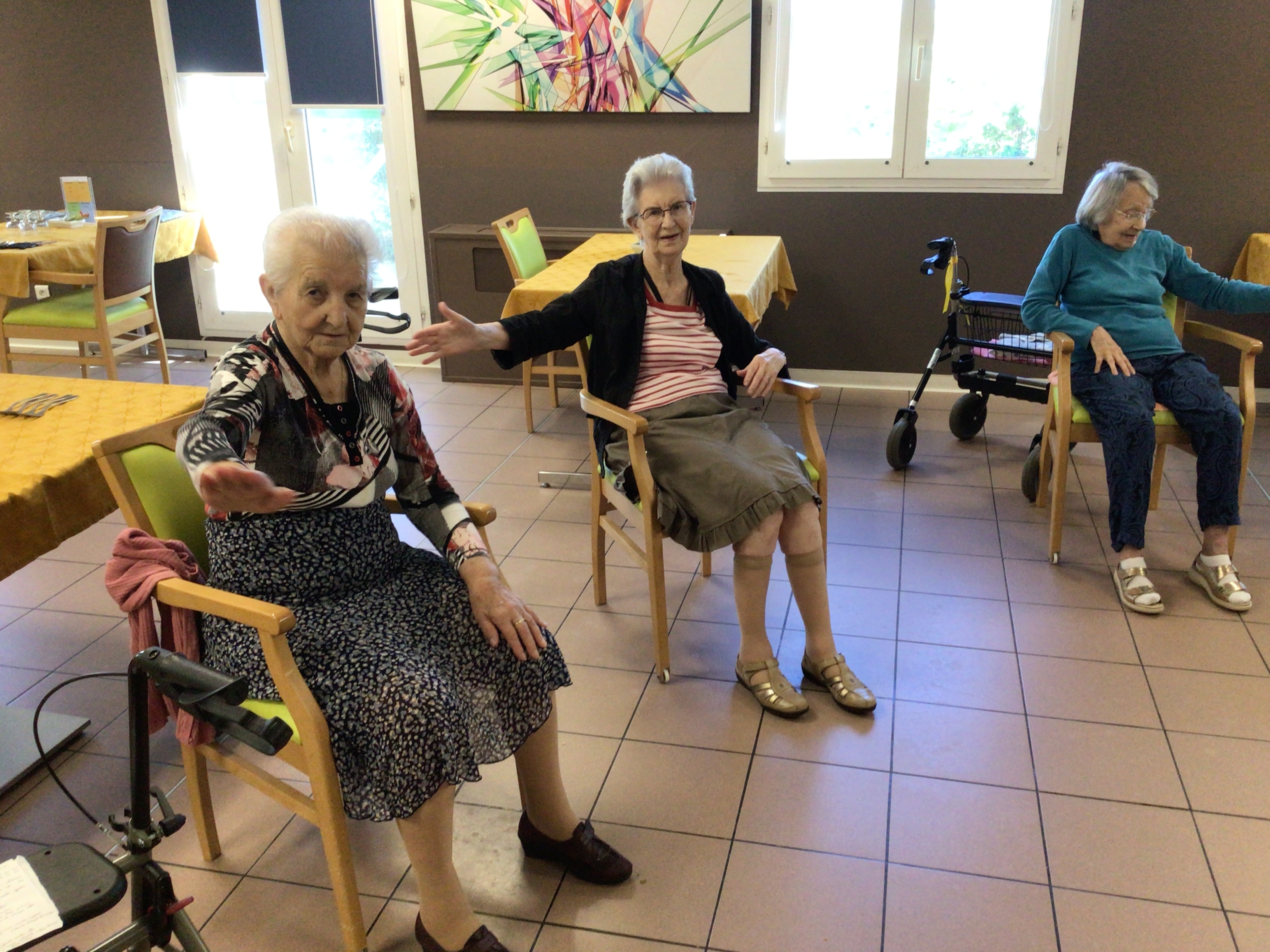 Séance Dérouill'âge cet après-midi, avec un groupe de résidents fidèles et motivés.