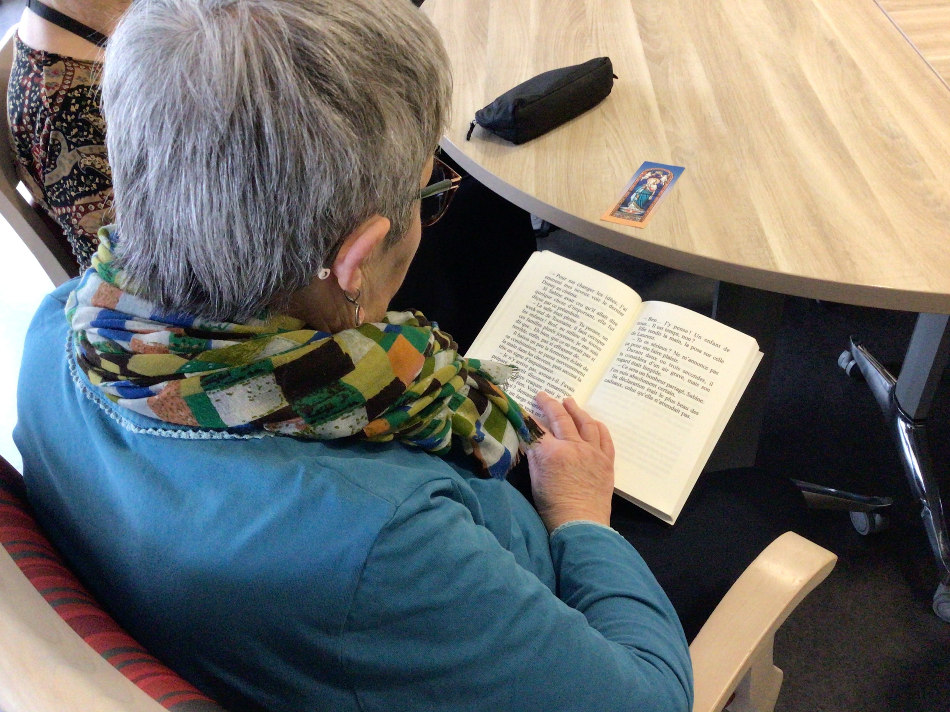 -Atelier lecture à haute voix ce matin, avec les bénévoles Françine et Chantal. Des lectures courtes, simples permettant des temps d'échanges.