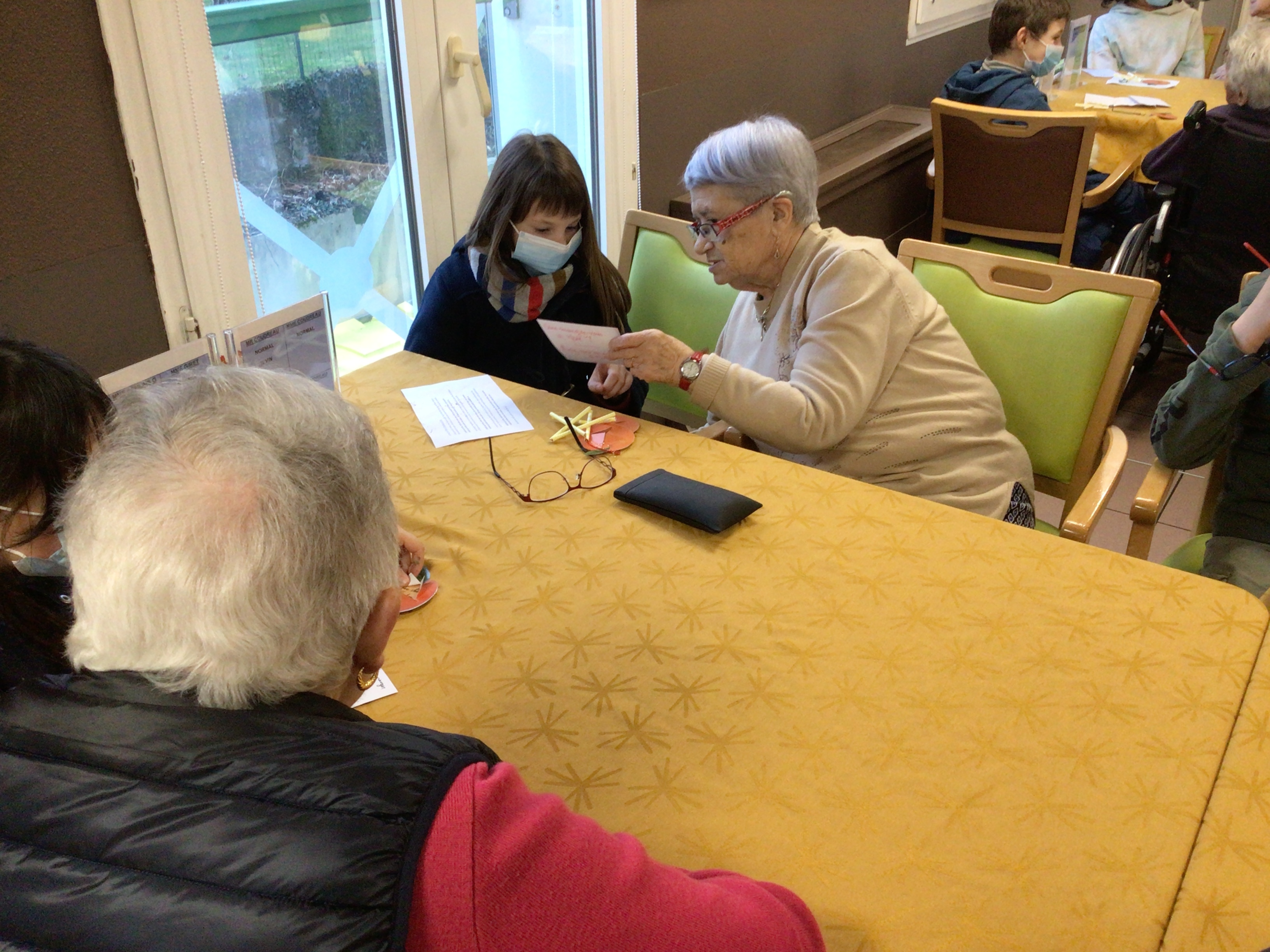 Une rencontre réussie, avec beaucoup d’échanges et de partage, les enfants avaient confectionné des petits objets pour les résidents et ont clôturer ce beau moment en chansons.