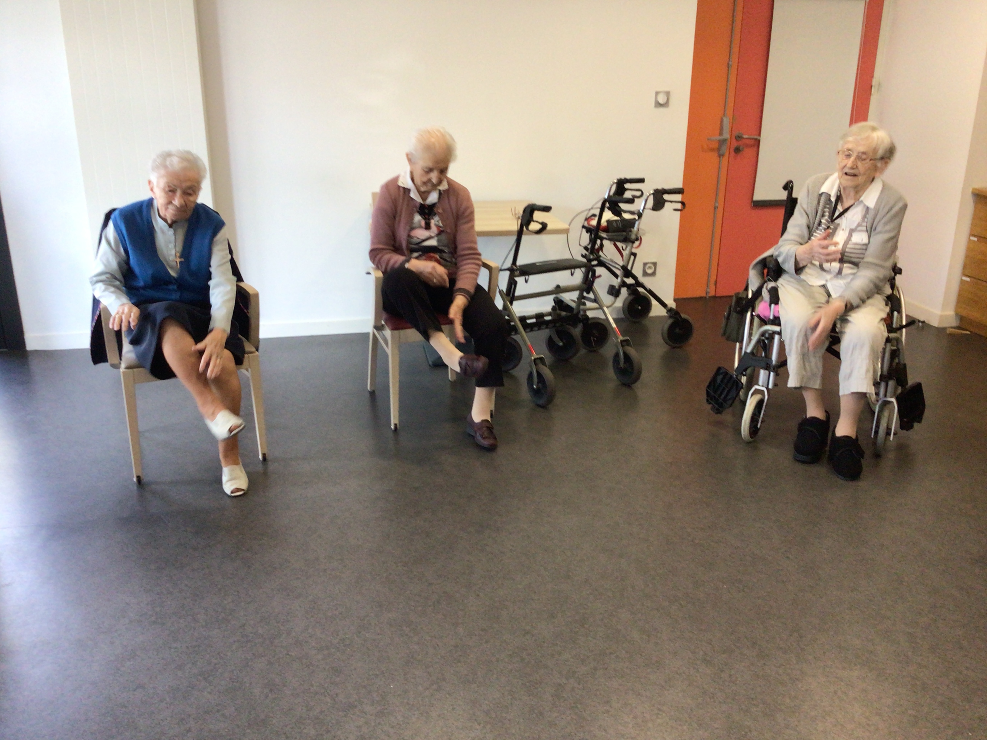 -Séance Dérouill'âge cet après-midi, échauffements des articulations, jeu de ballons ...avec un groupe de résidents dynamiques et investis