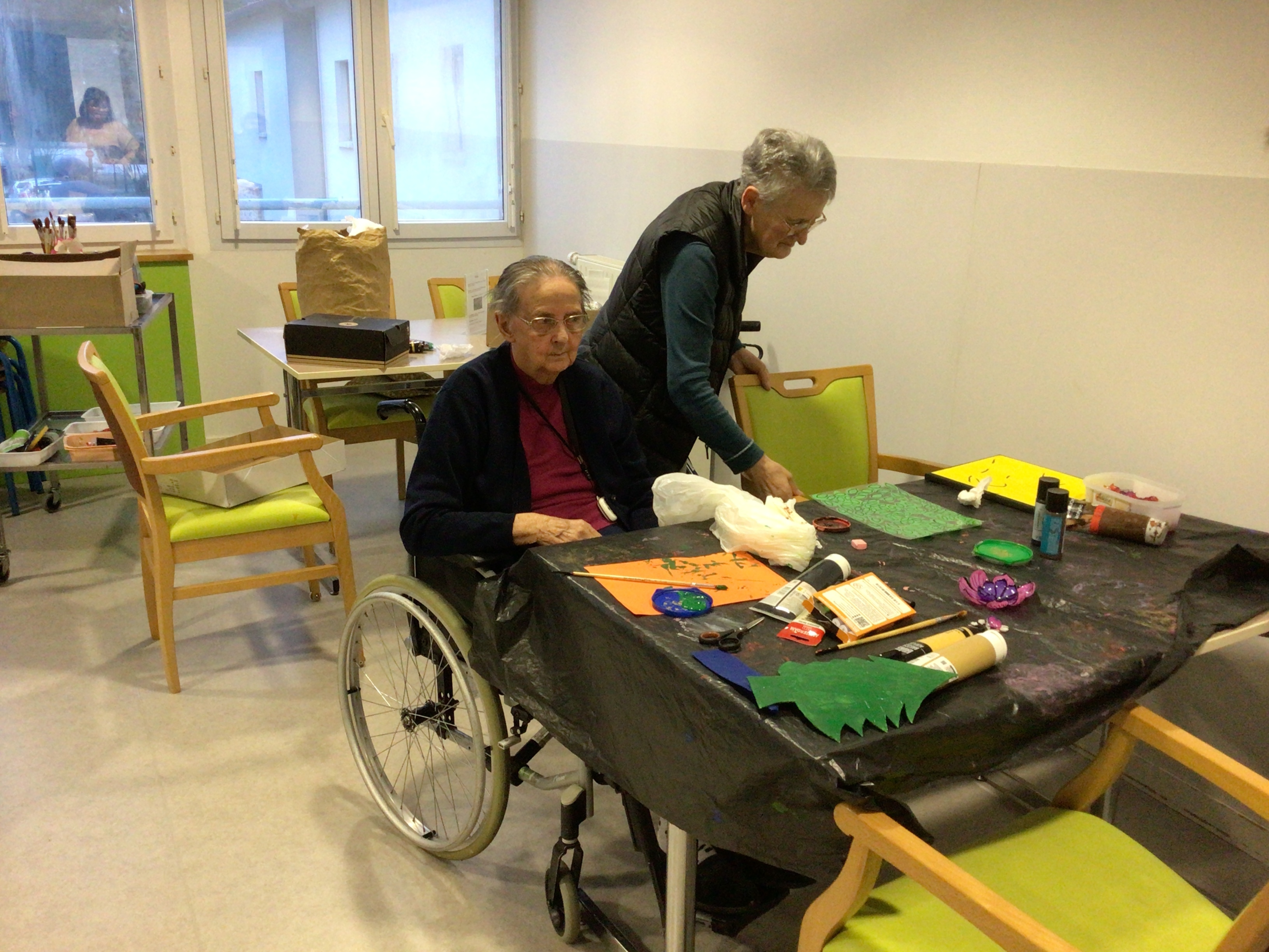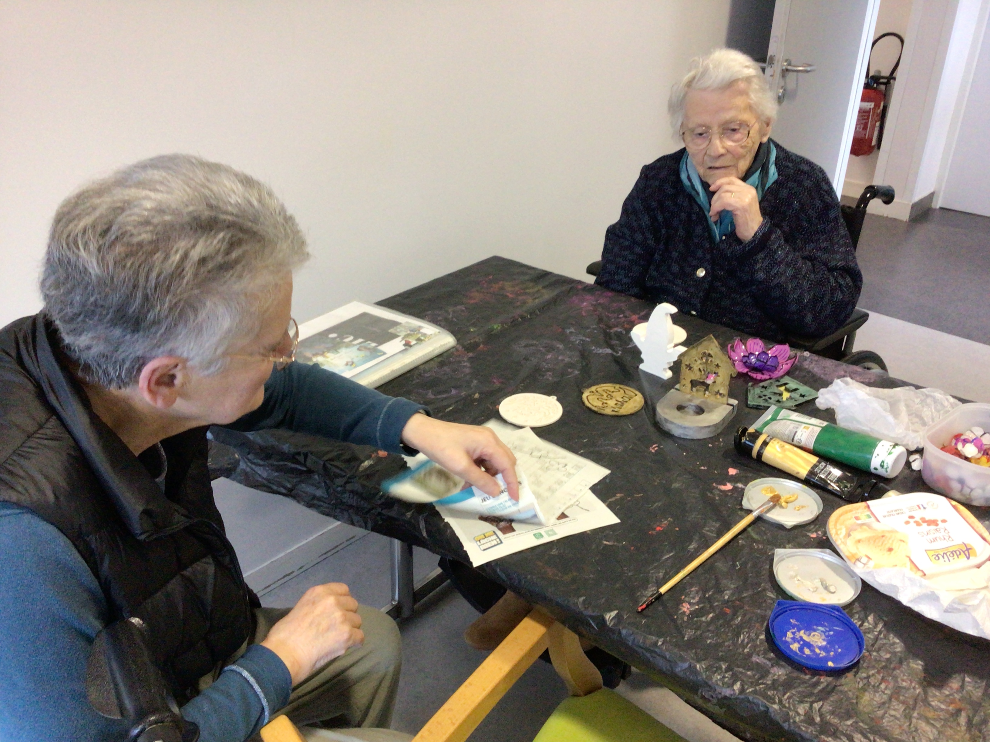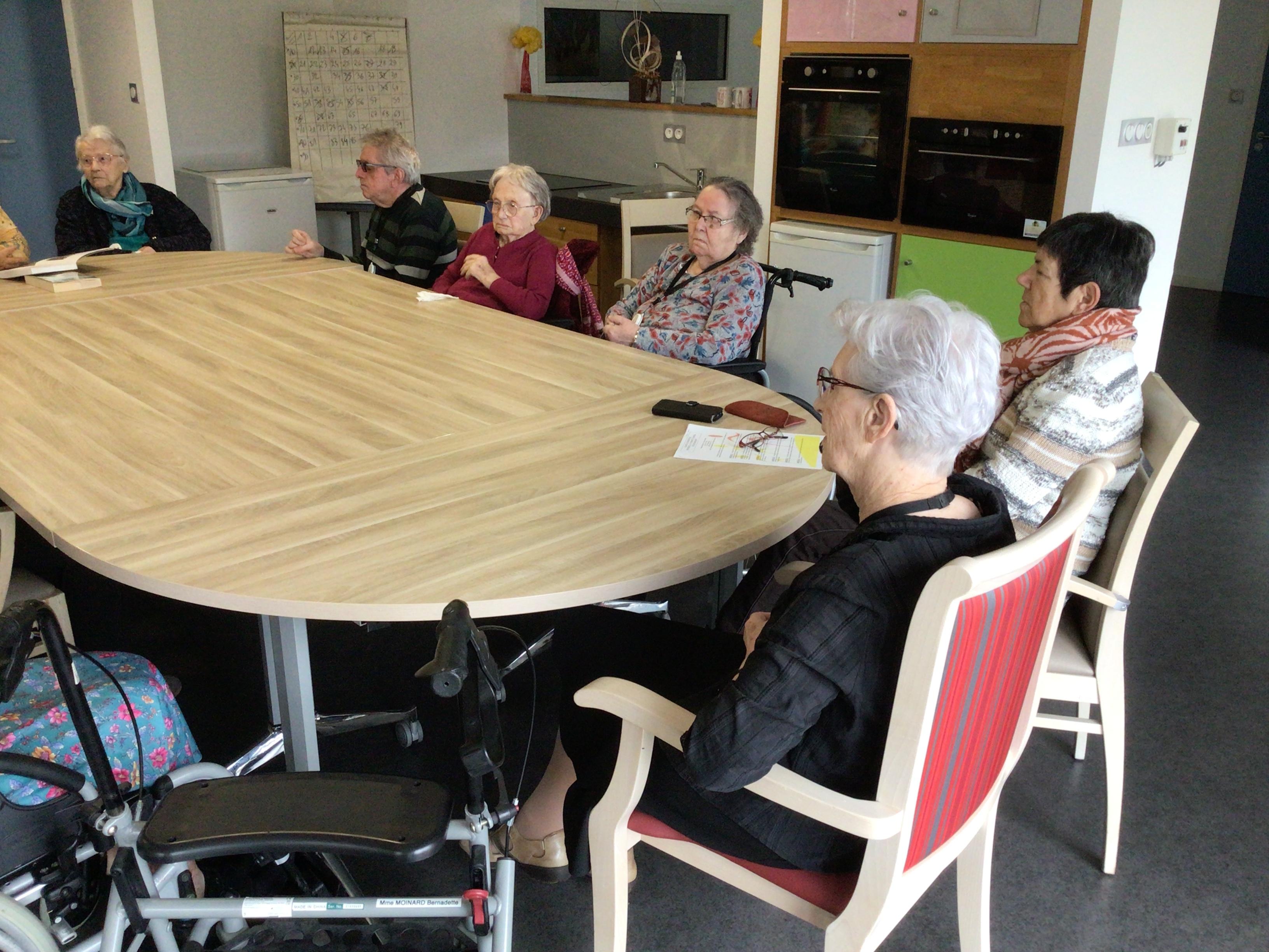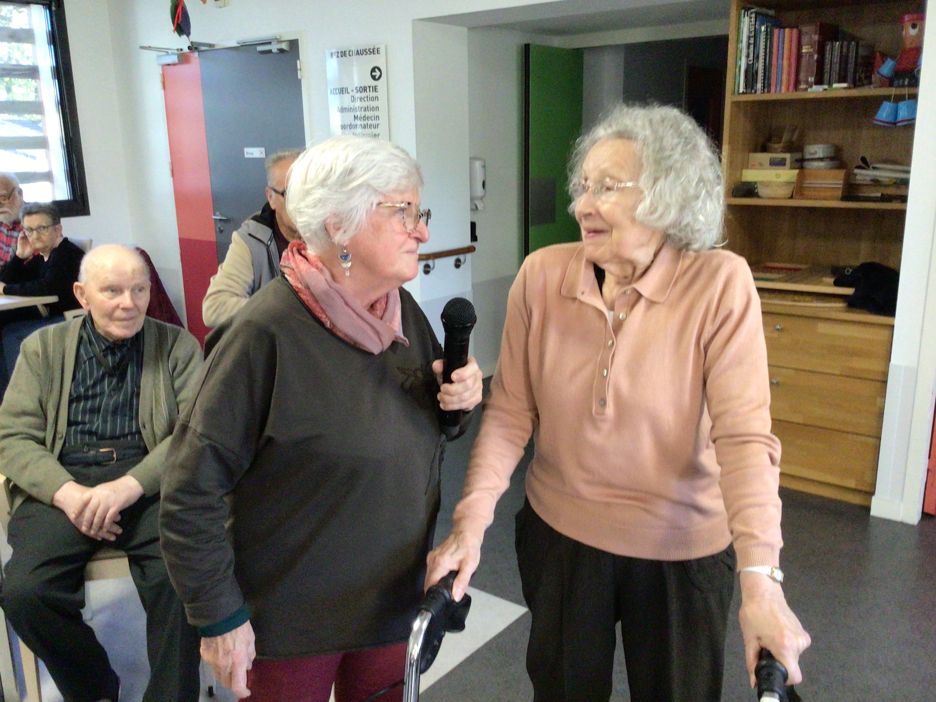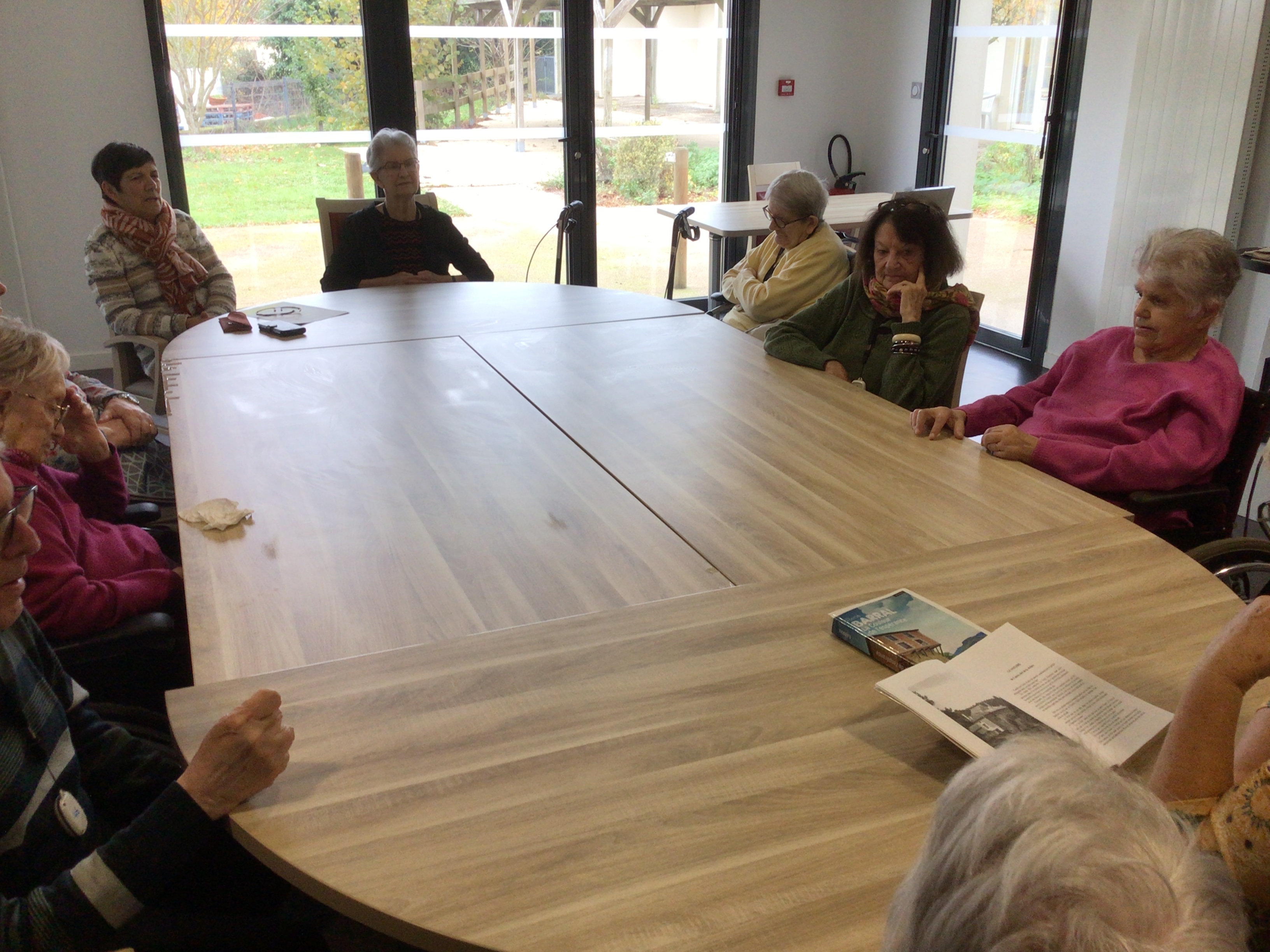 -Lecture à haute voix avec les bénévoles Josiane et Thérèse ce matin. Un moment de lecture toujours apprécié pour le groupe de résidents.