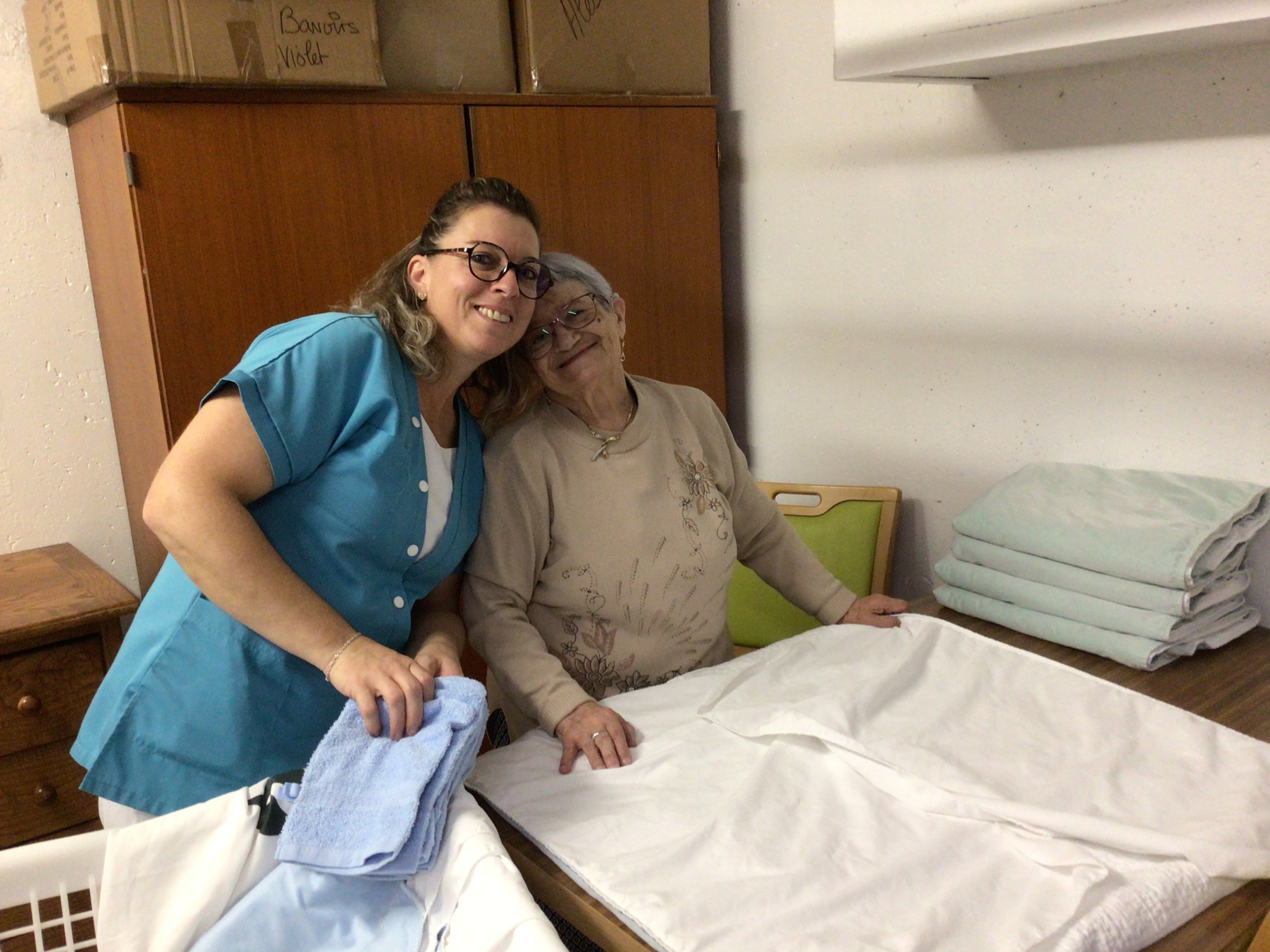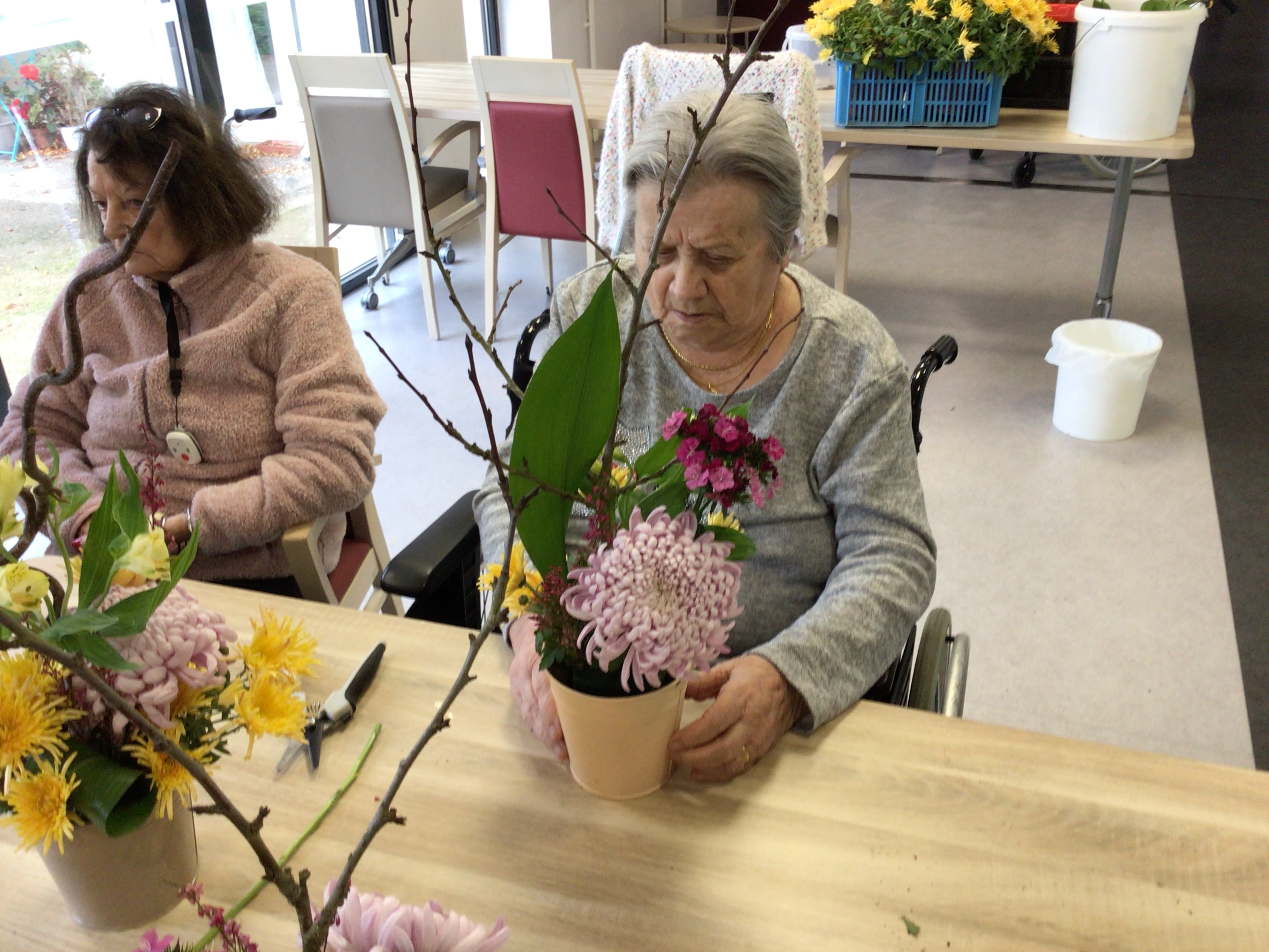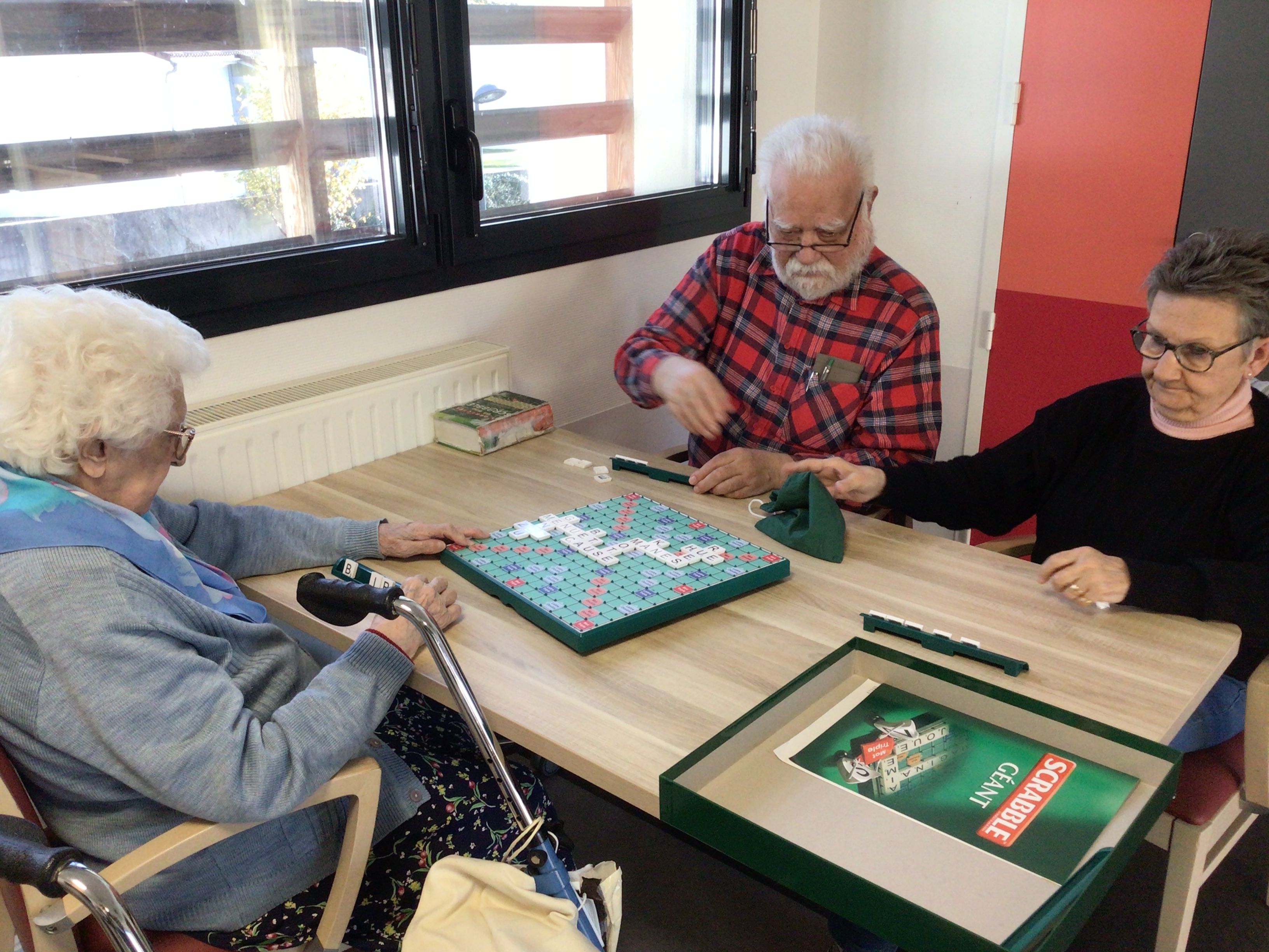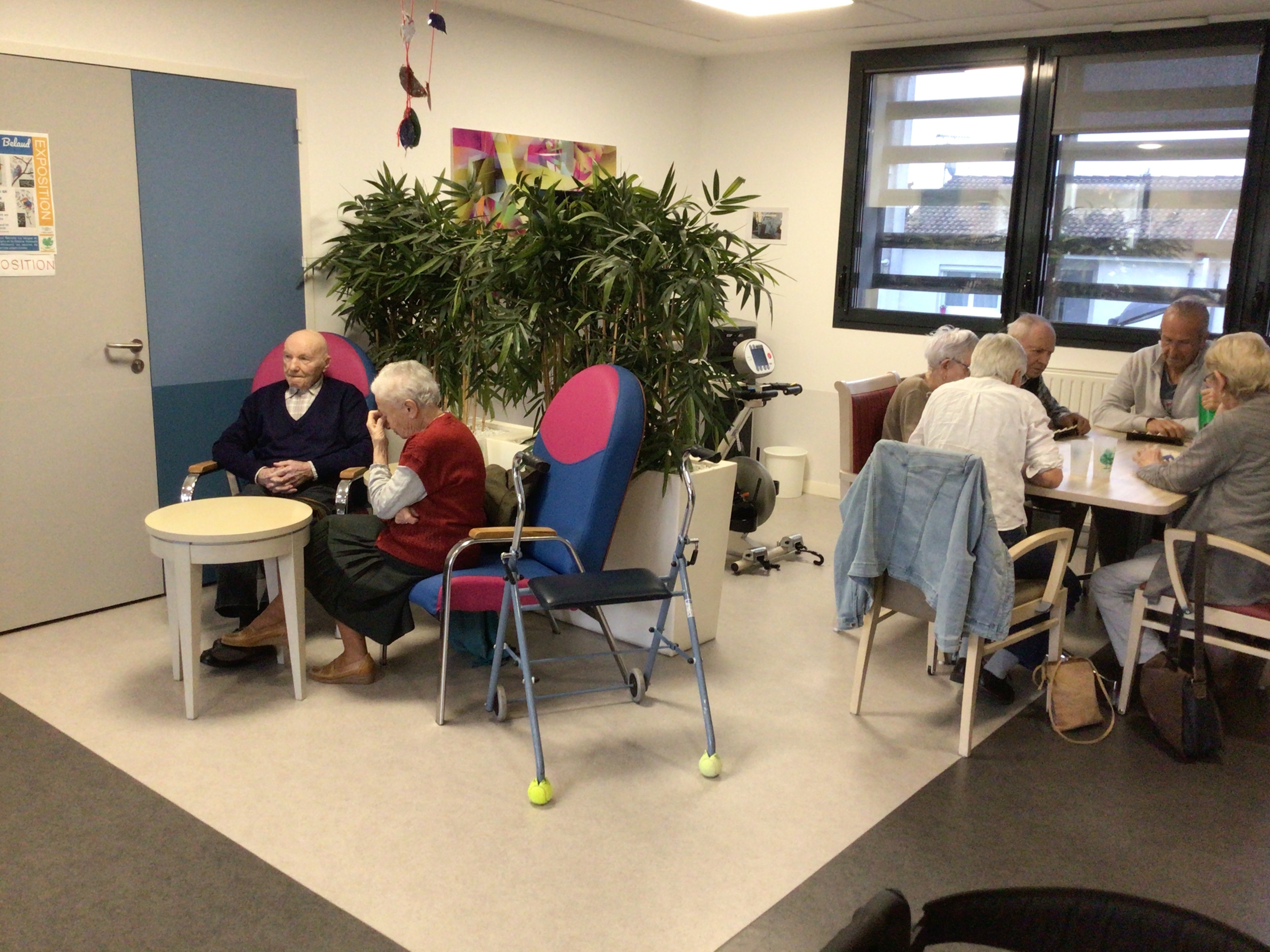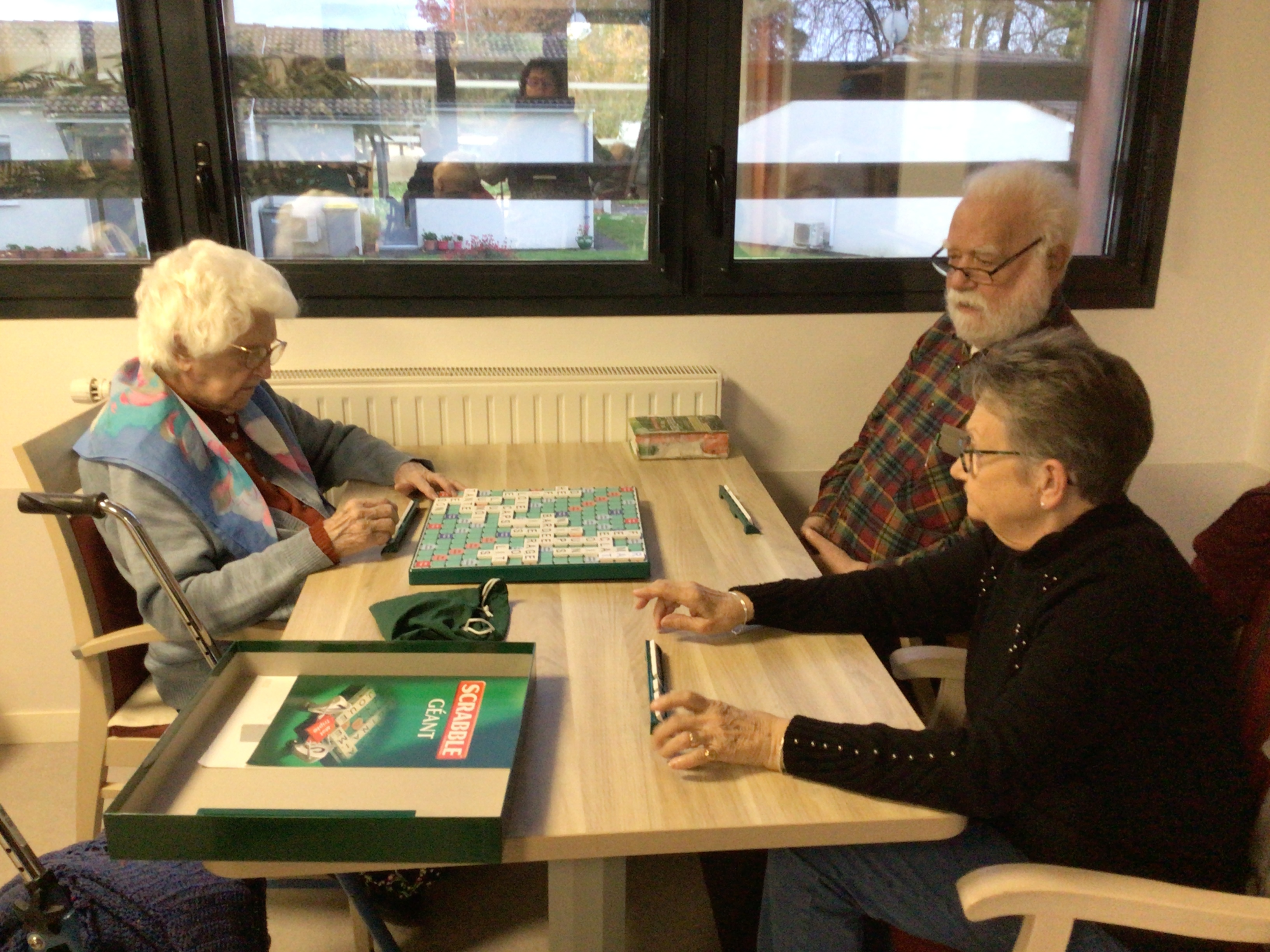 -Lecture à haute voix avec les bénévoles Josiane et Thérèse ce matin. Un moment de lecture toujours apprécié pour le groupe de résidents.