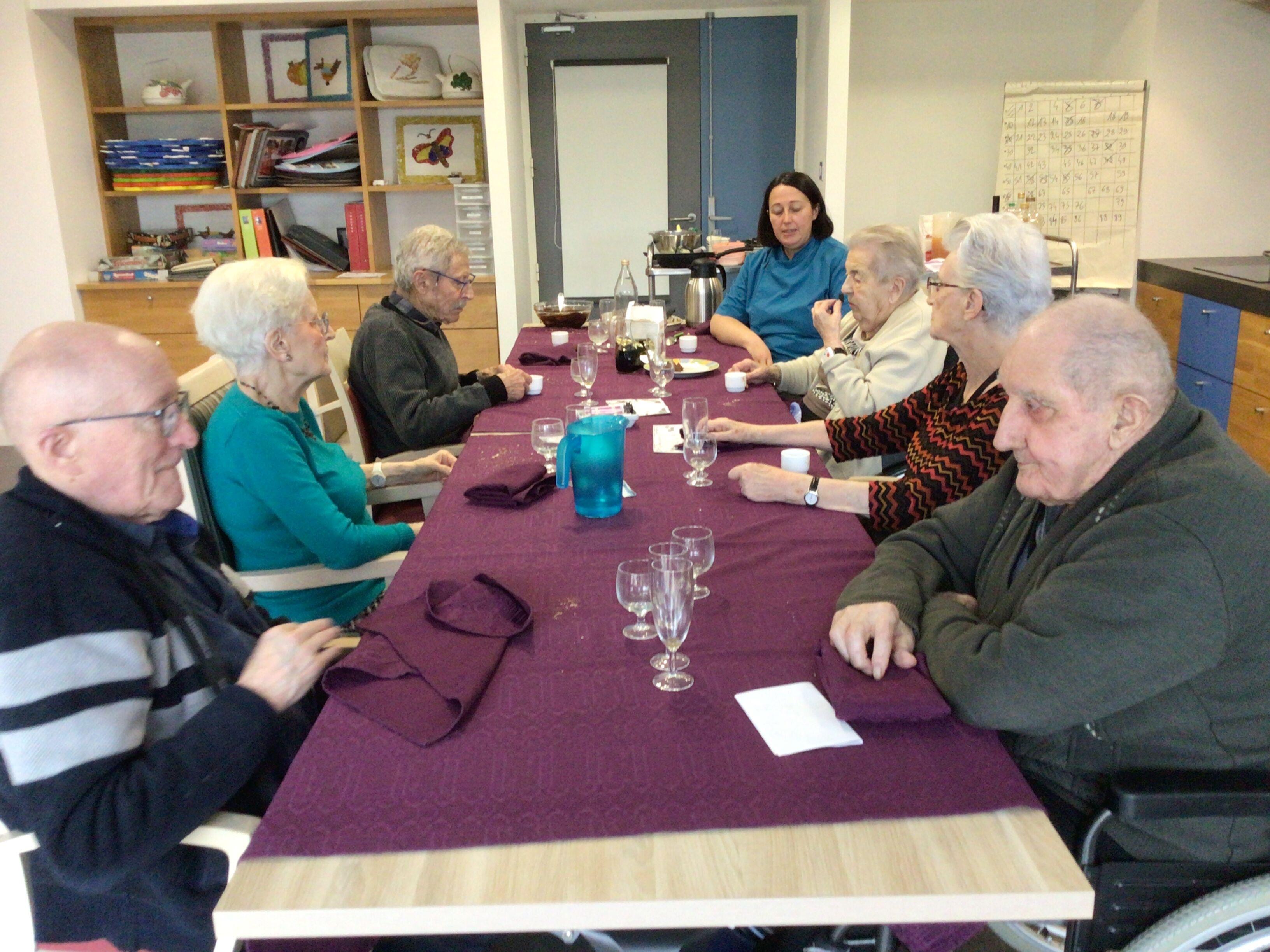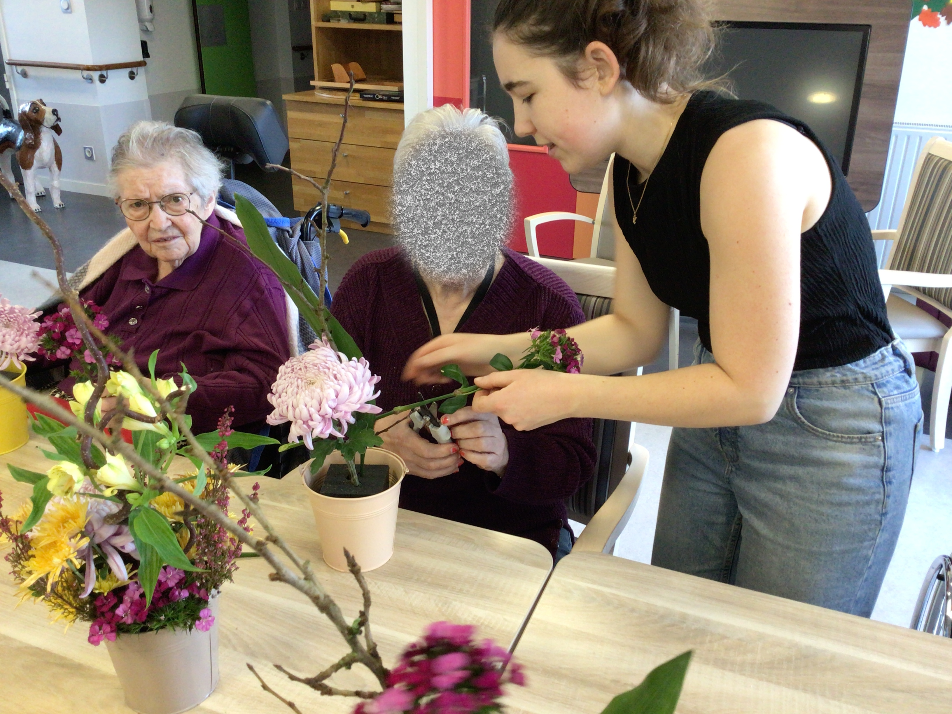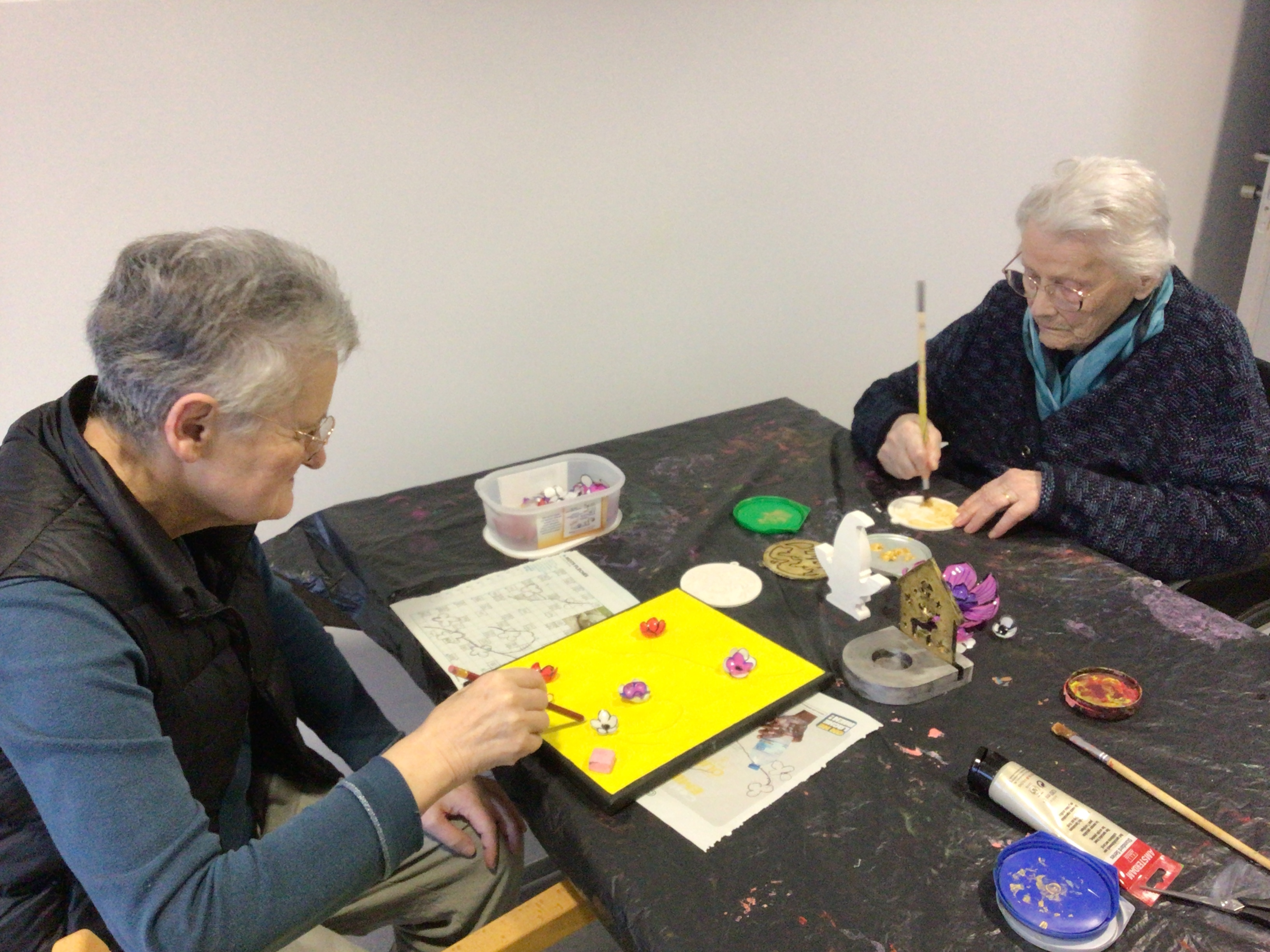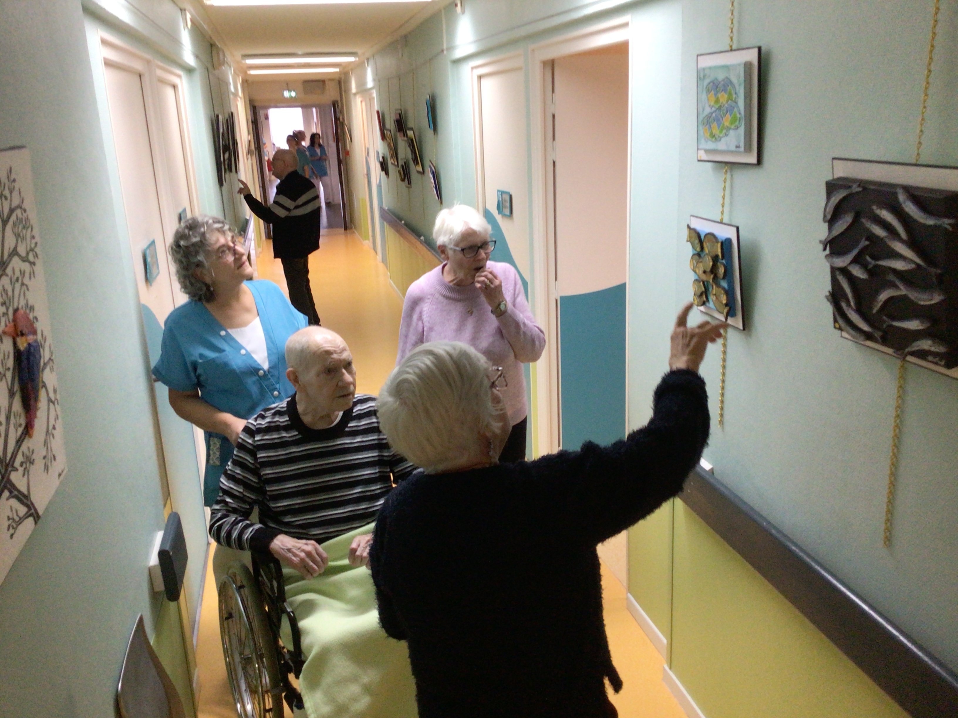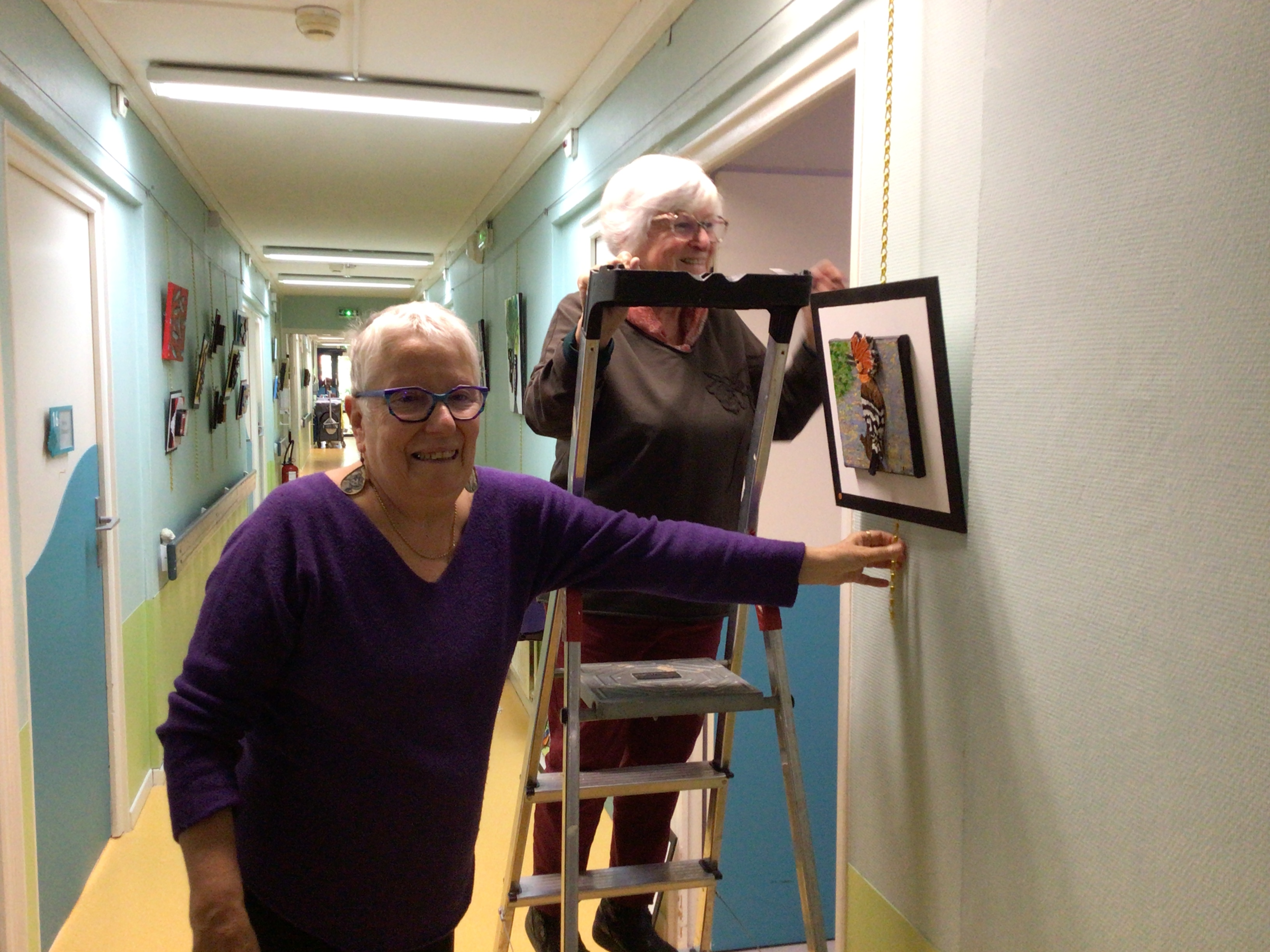 -Lecture à haute voix avec les bénévoles Josiane et Thérèse ce matin. Un moment de lecture toujours apprécié pour le groupe de résidents.