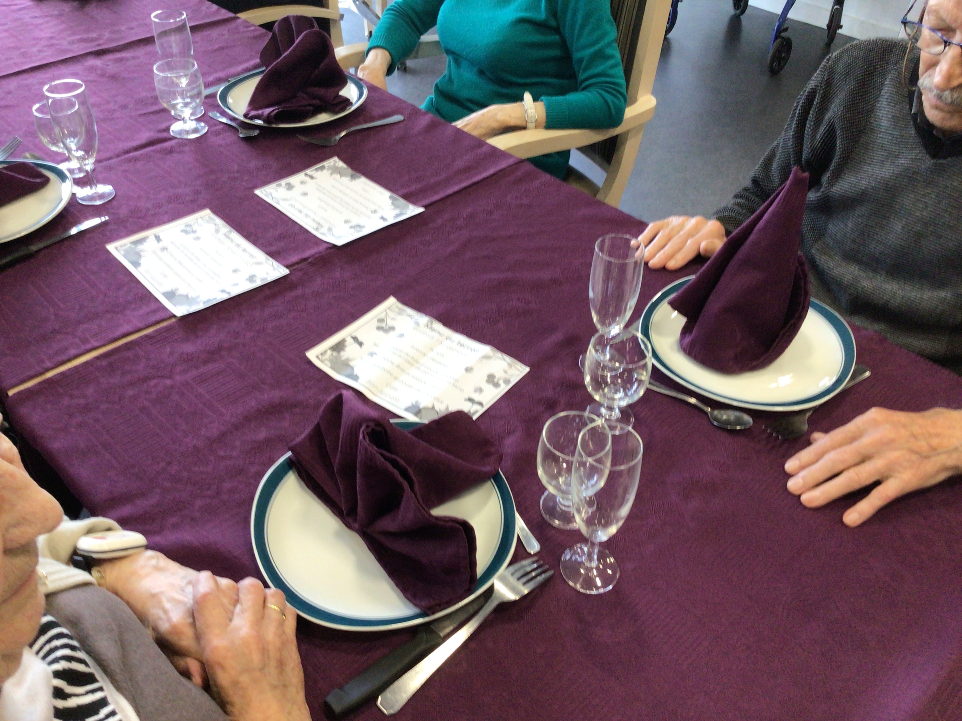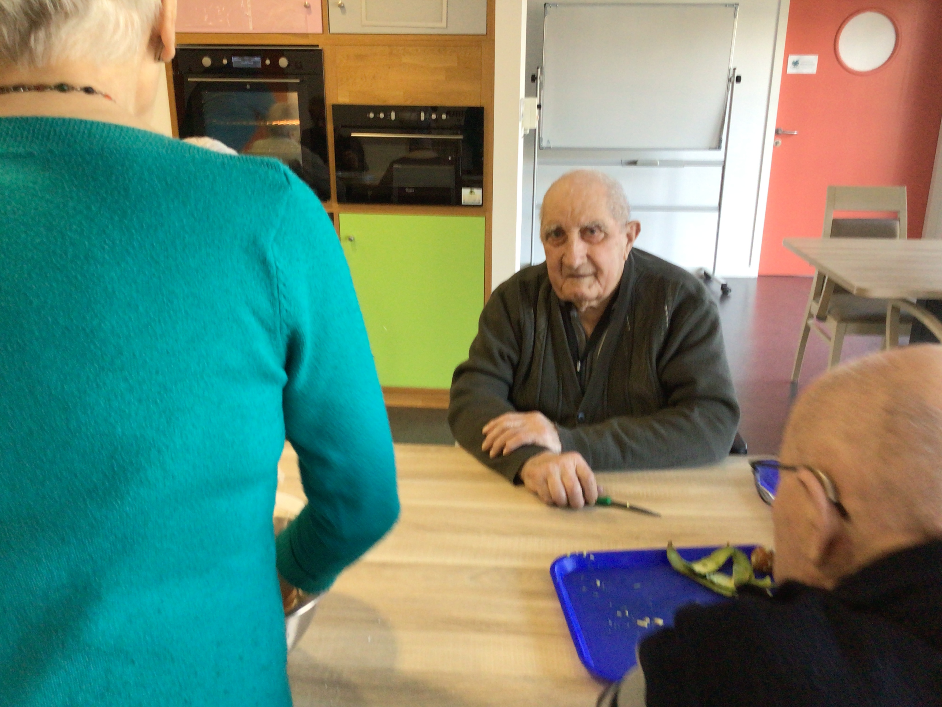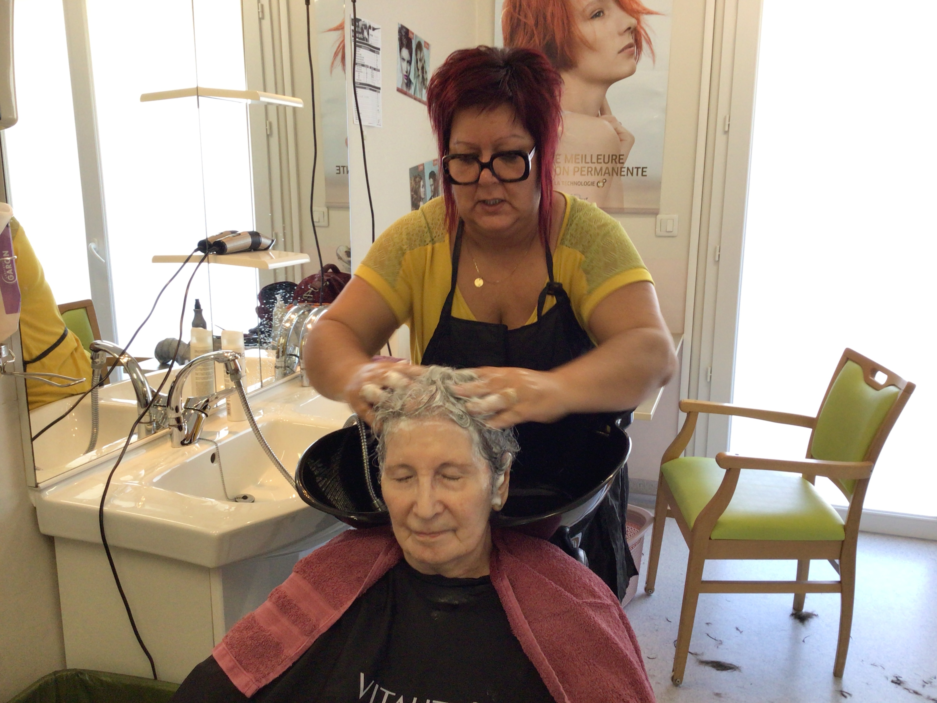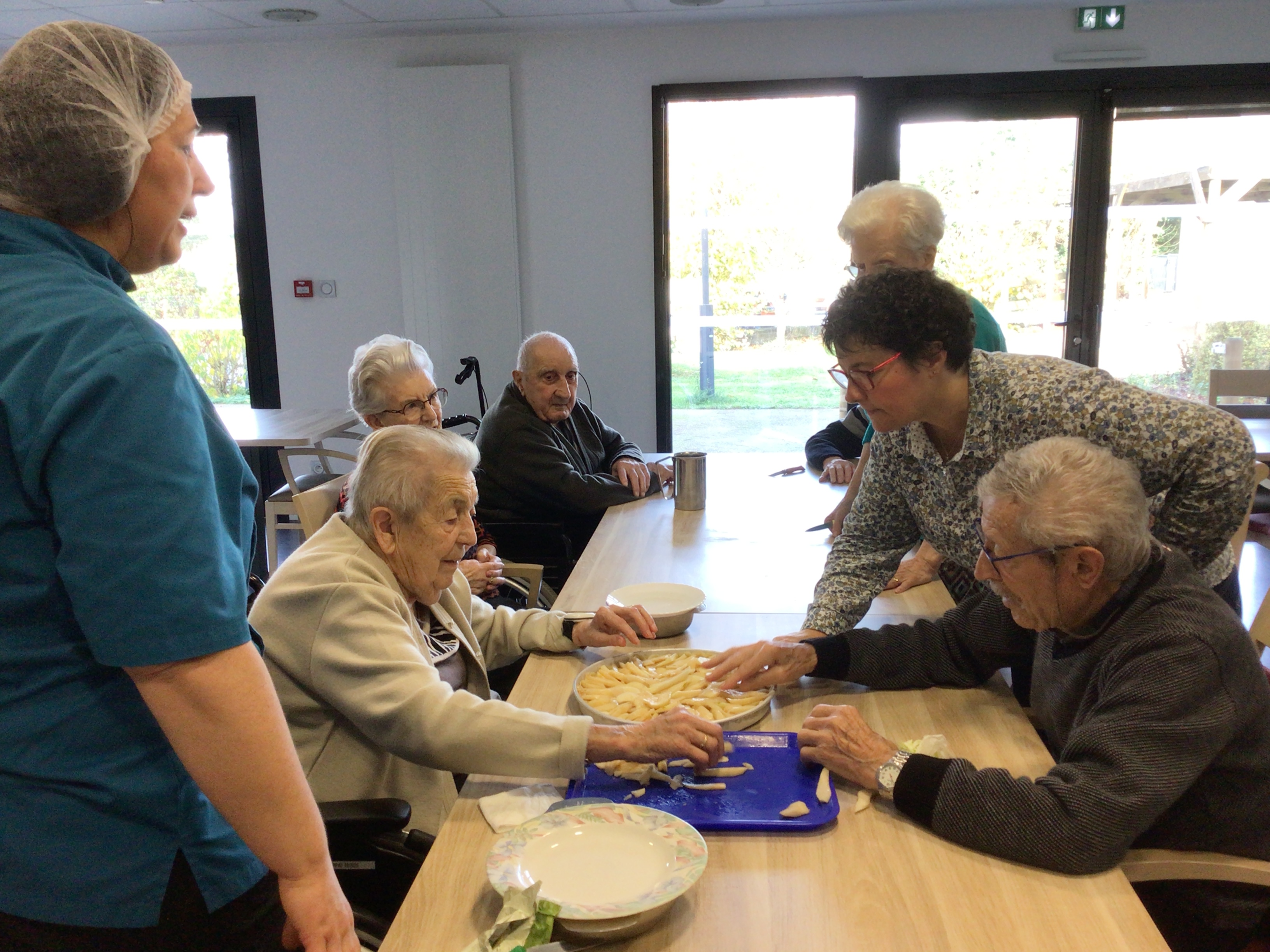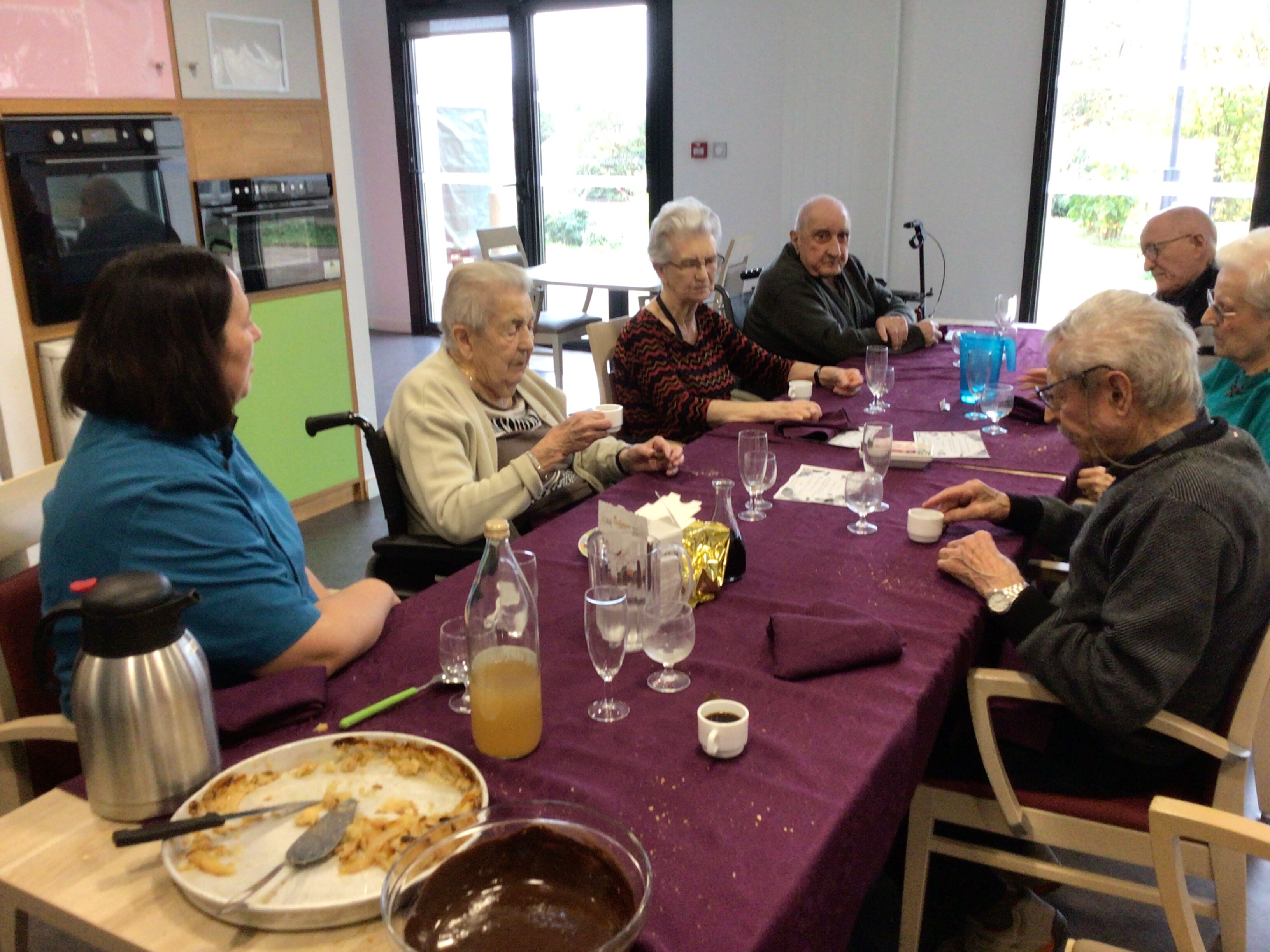 -Lecture à haute voix avec les bénévoles Josiane et Thérèse ce matin. Un moment de lecture toujours apprécié pour le groupe de résidents.
