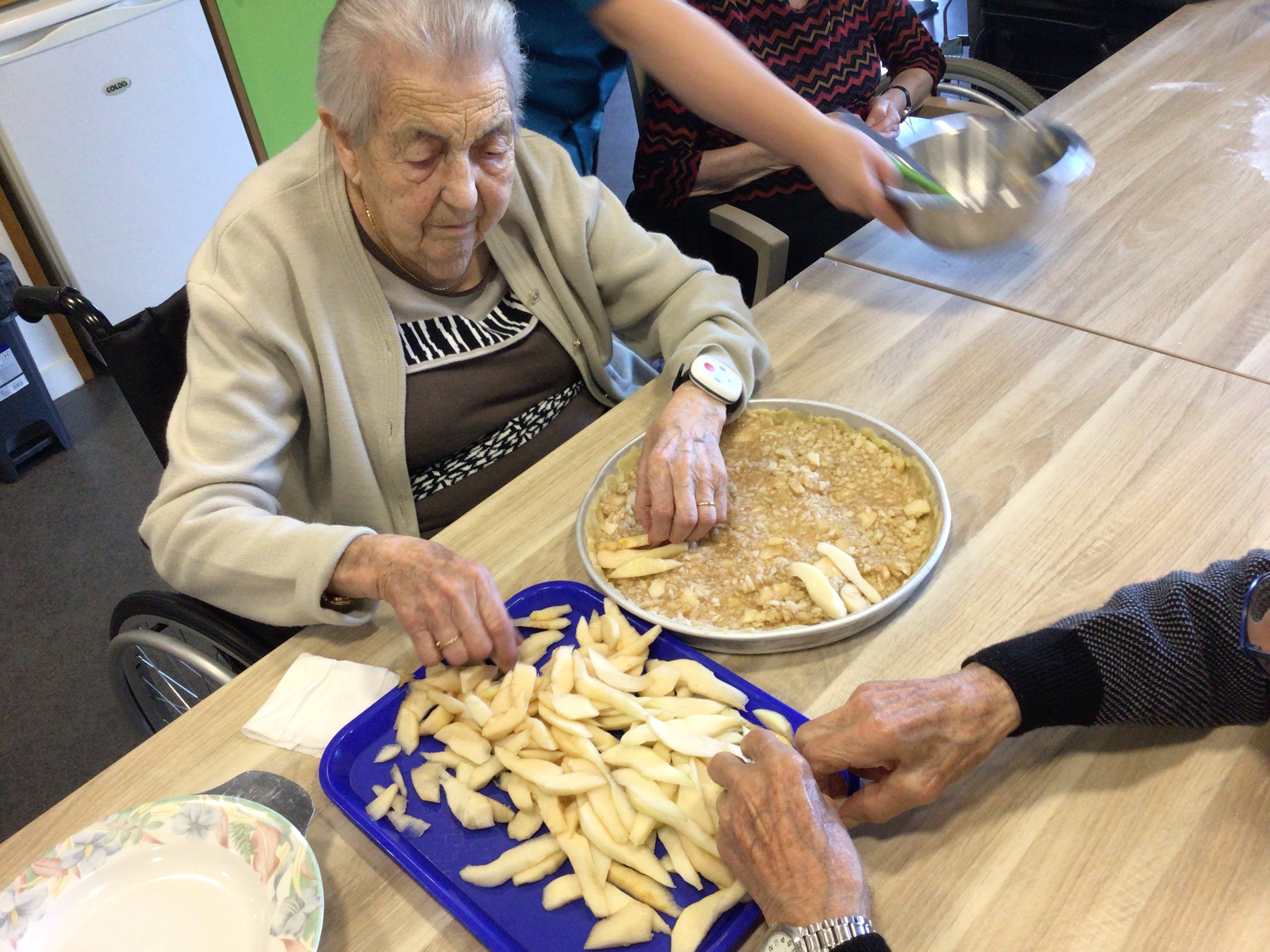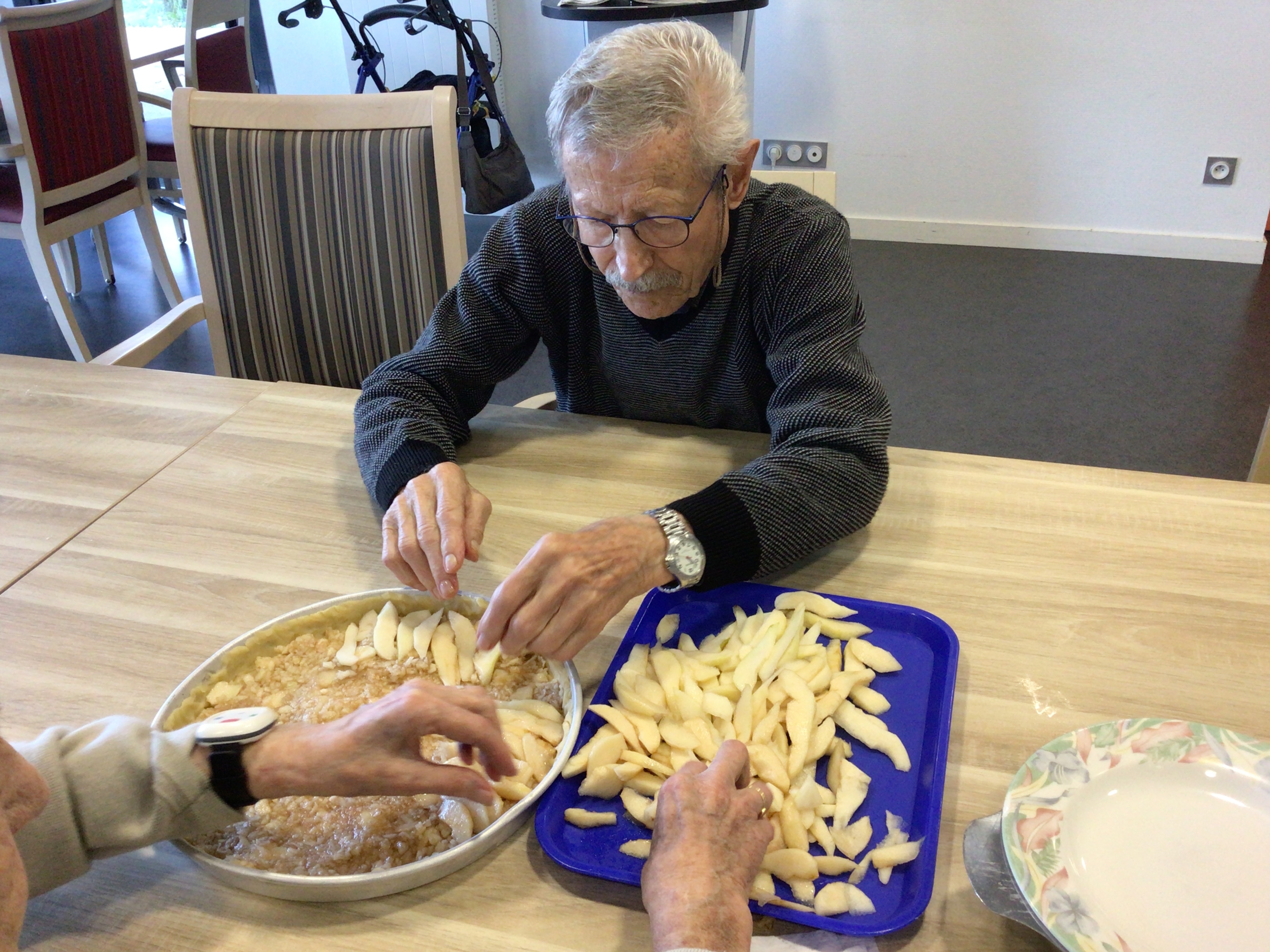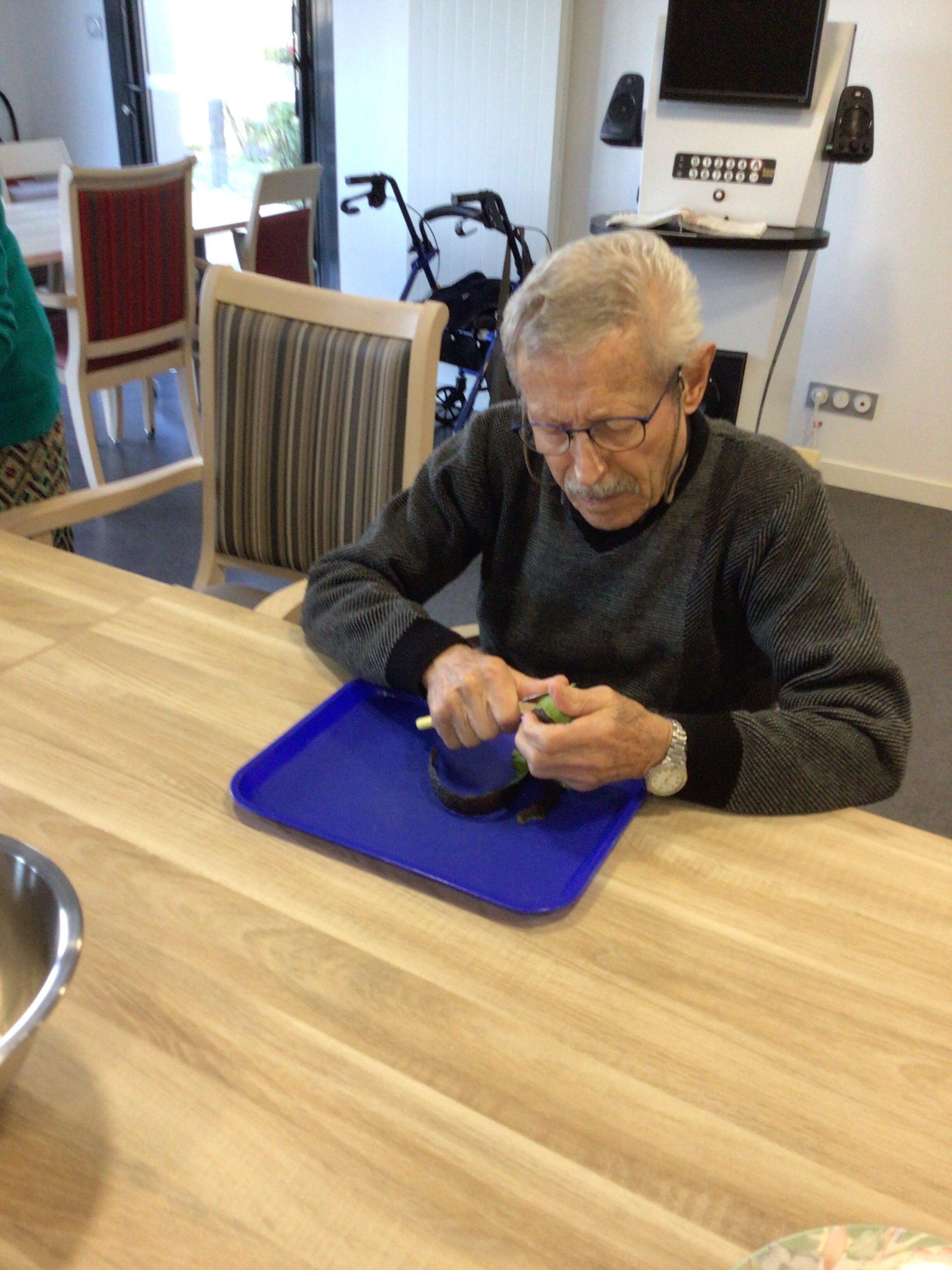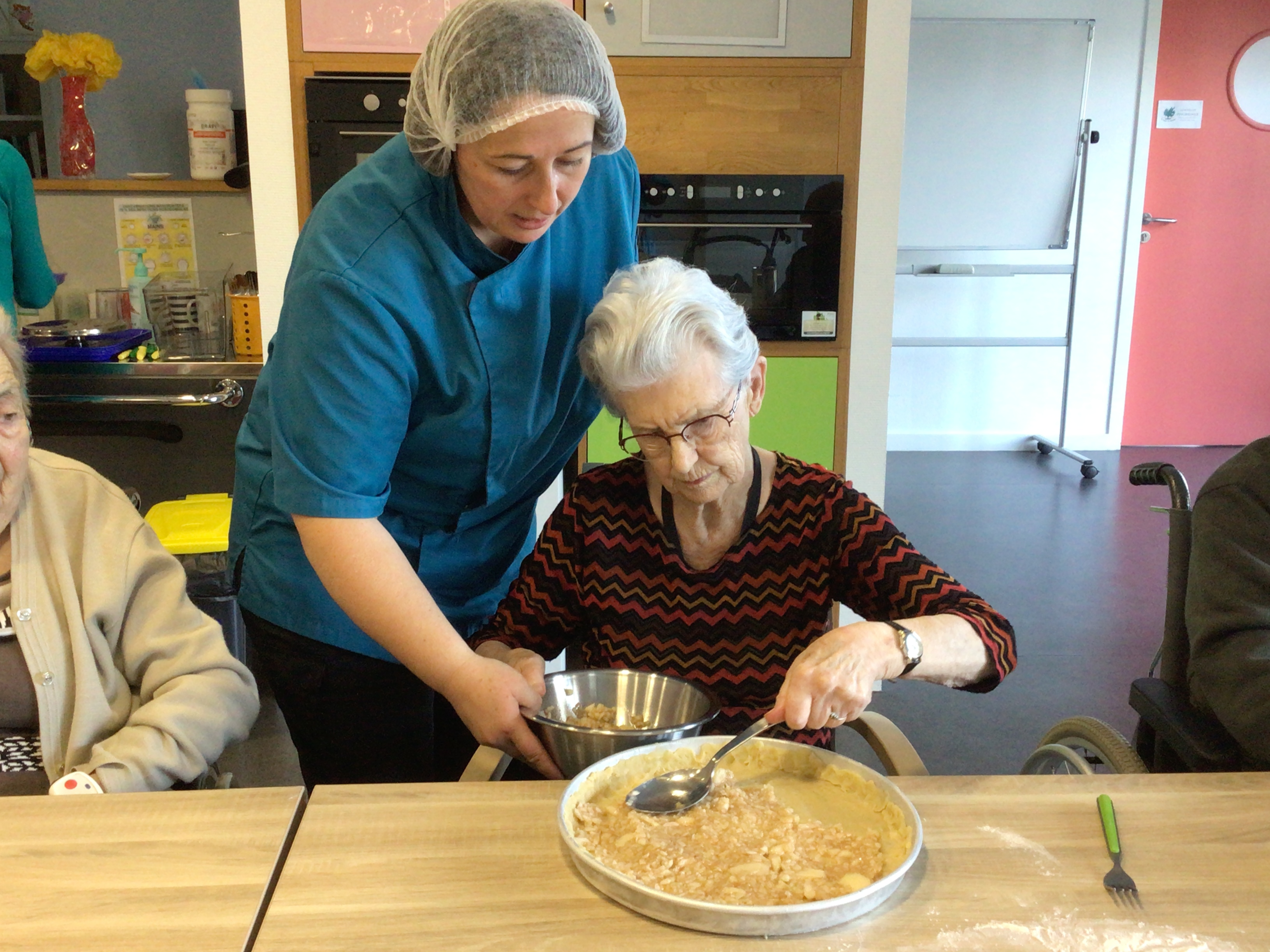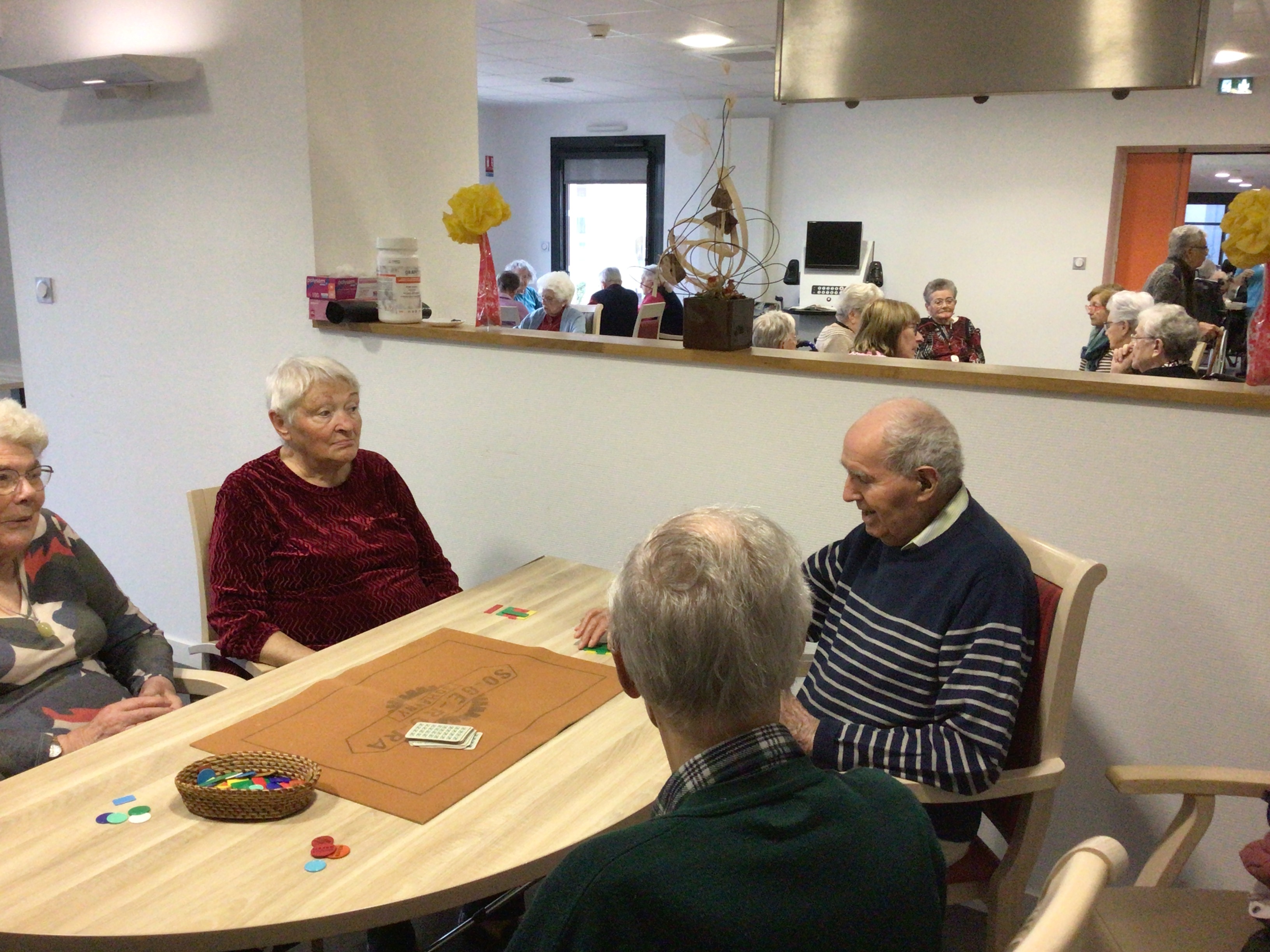 -Lecture à haute voix avec les bénévoles Josiane et Thérèse ce matin. Un moment de lecture toujours apprécié pour le groupe de résidents.