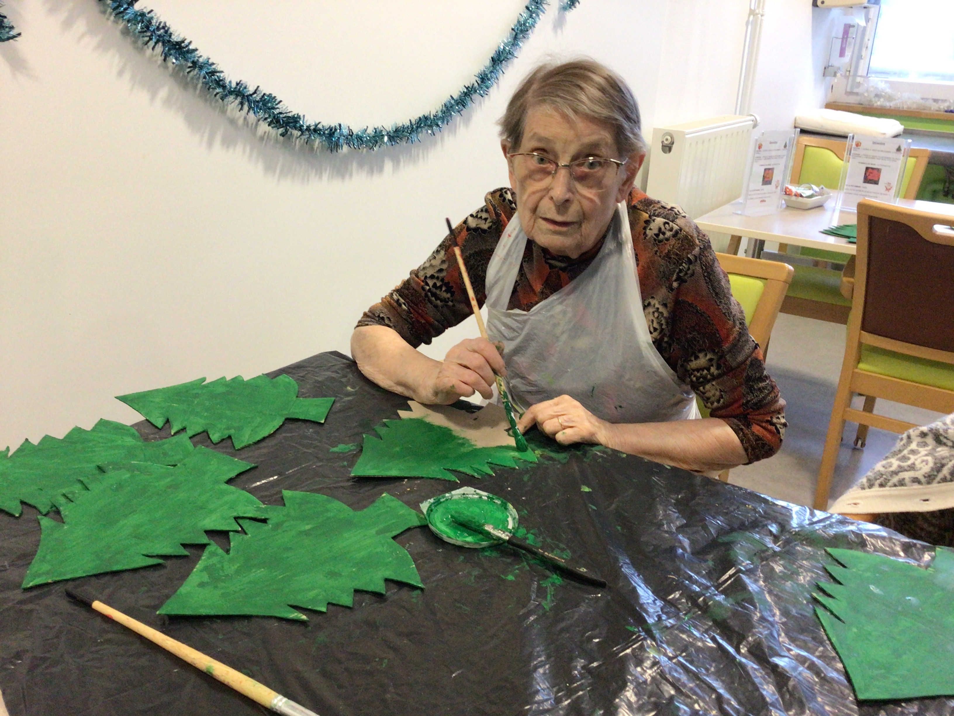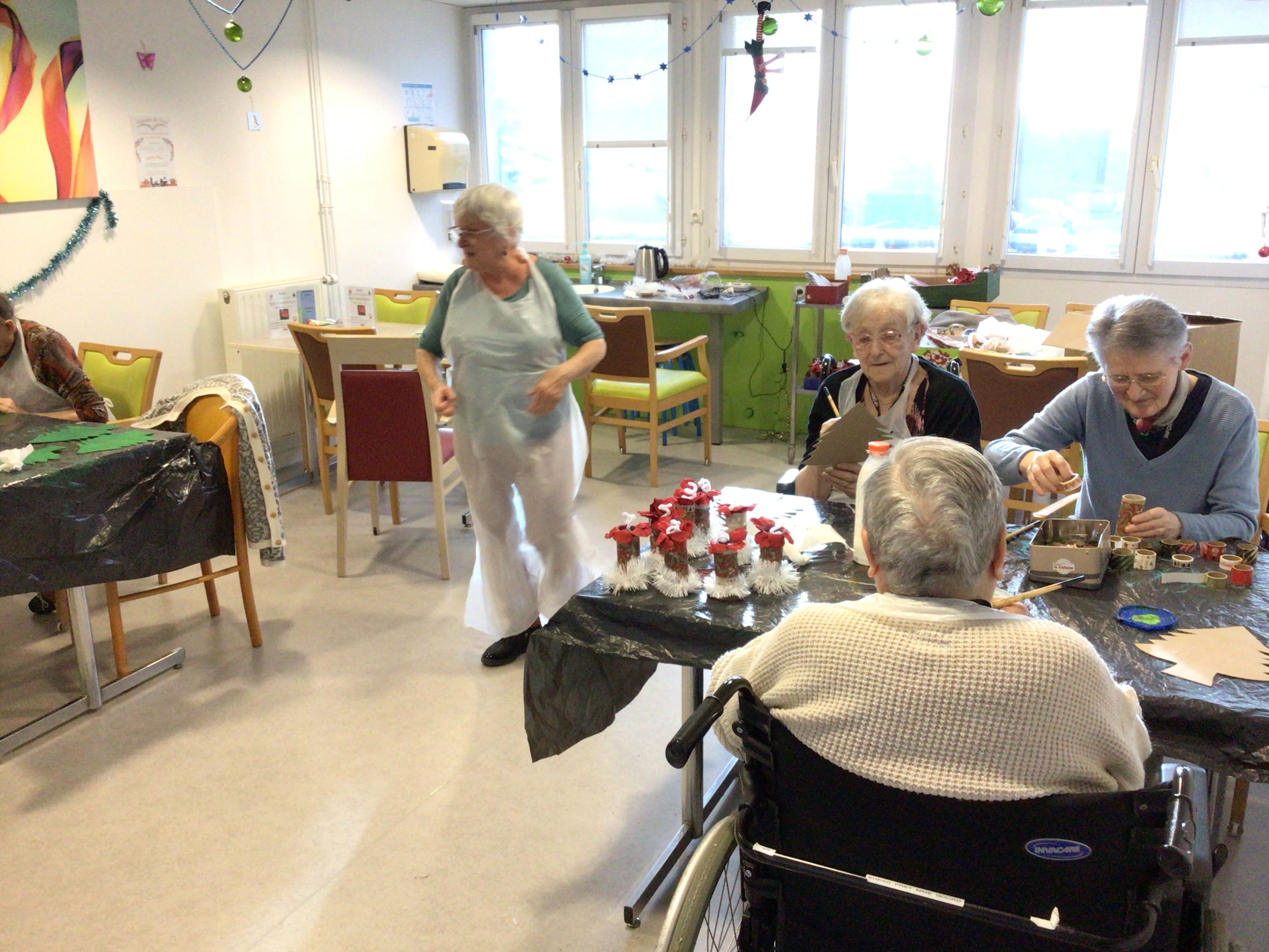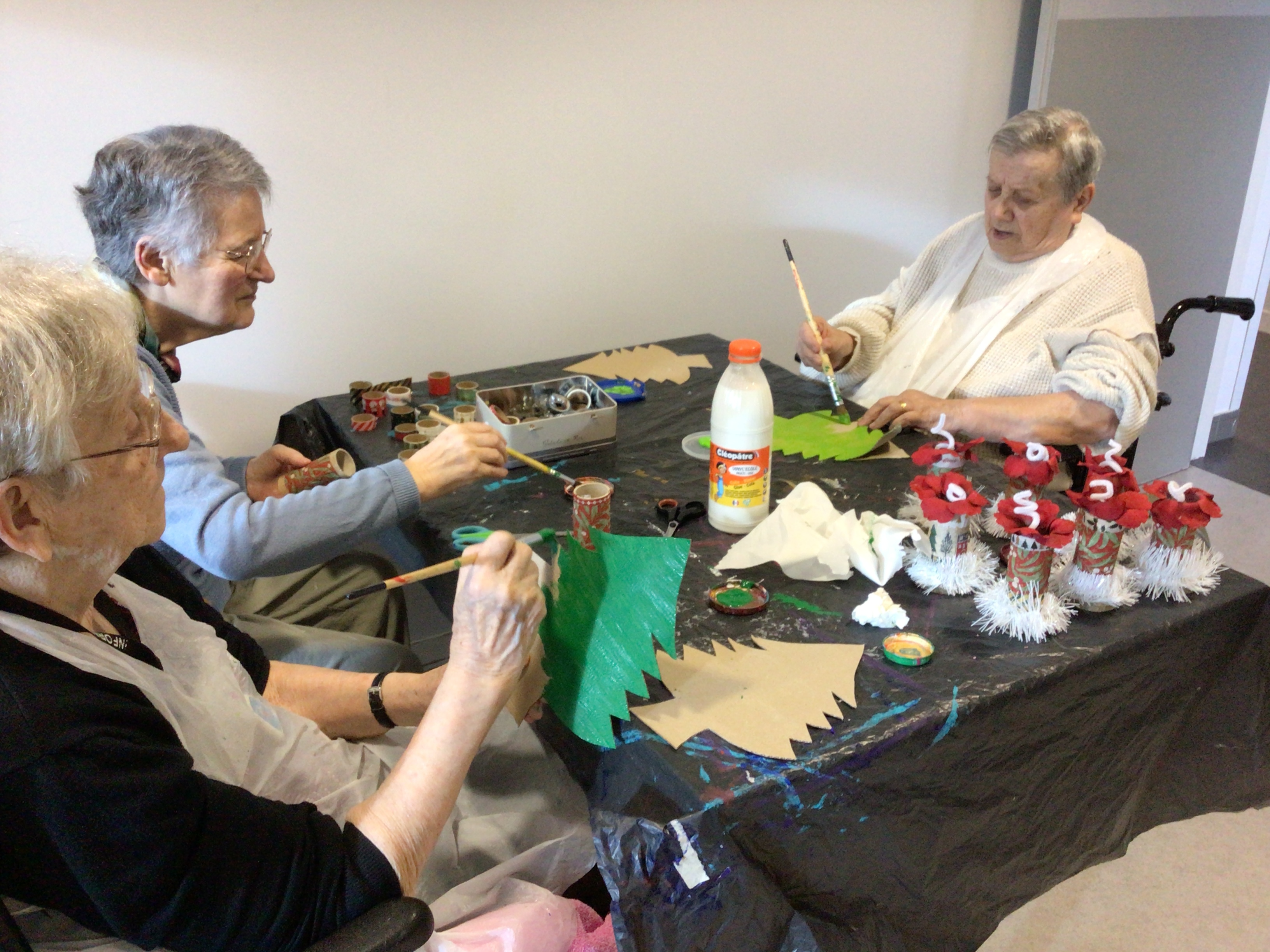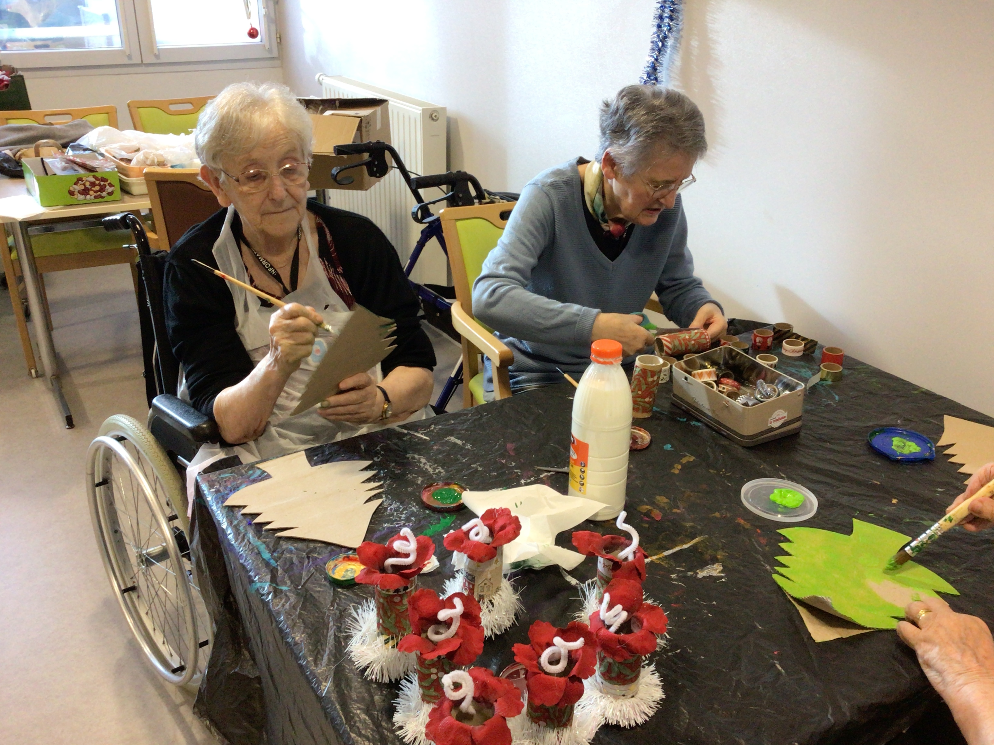 -Brigitte Belaud Art thérapeute, a pu lors de son atelier créatif, terminer avec des résidentes assidues et très impliquées , les bricolages pour les fêtes de fin d'année . Certaines créations seront vendues lors du marché de Noël du 10 décembre