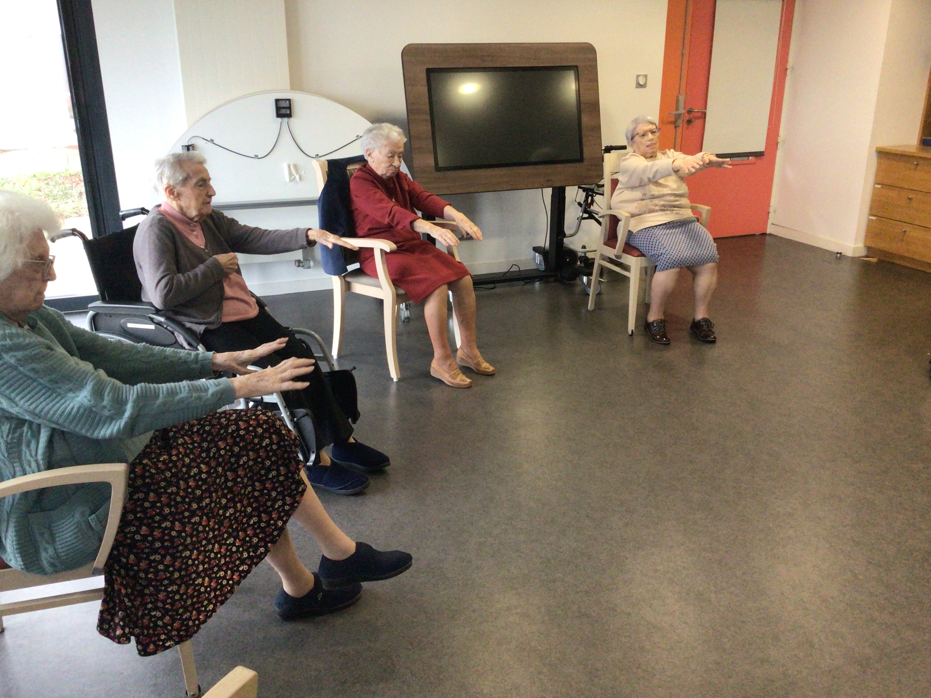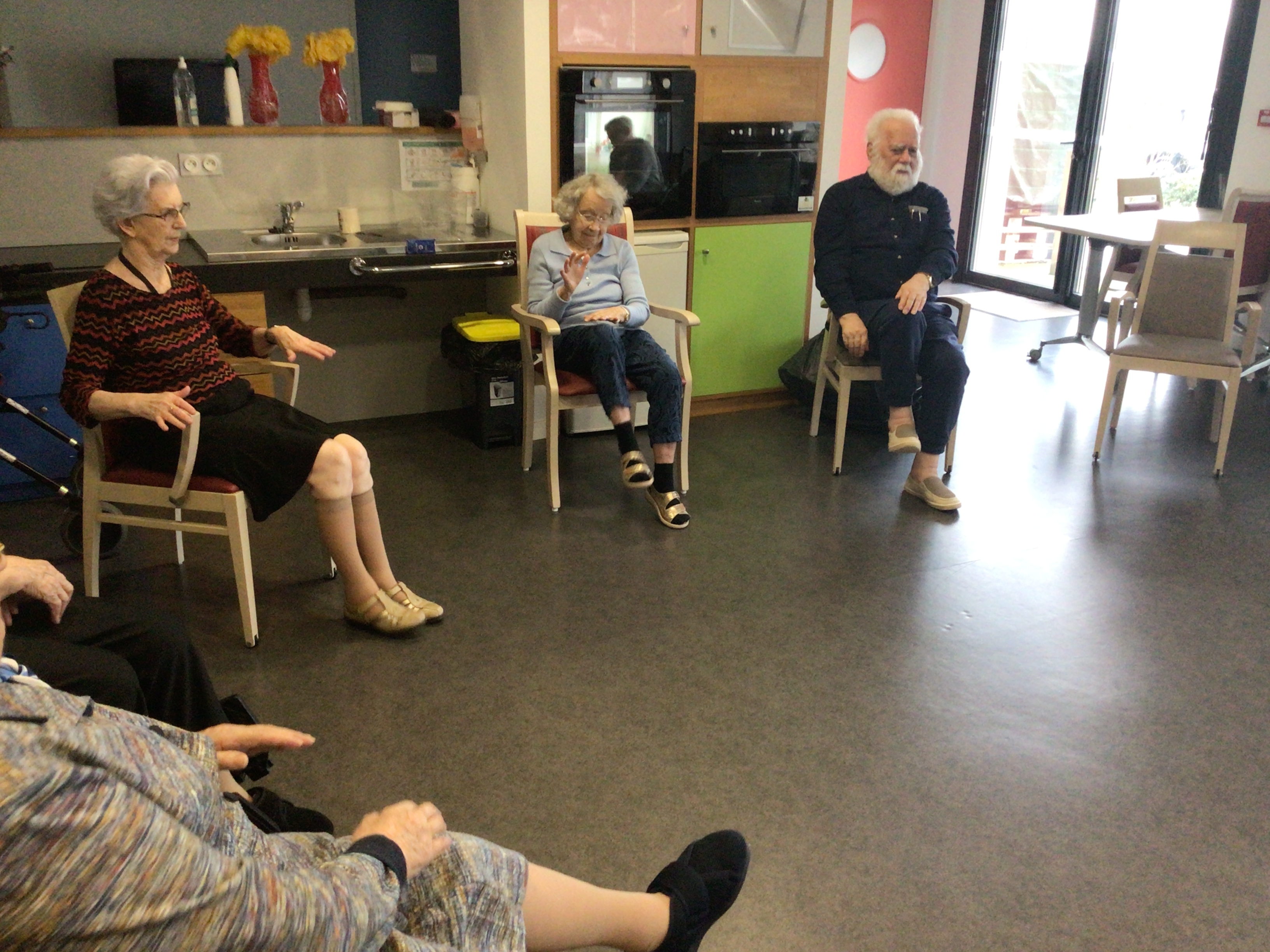 L'après midi, était consacré à l'activité Dérouill'âge: exercices déchauffement, jeu de ballons, ...l'objectif est de continuer à bouger en prenant du plaisir.