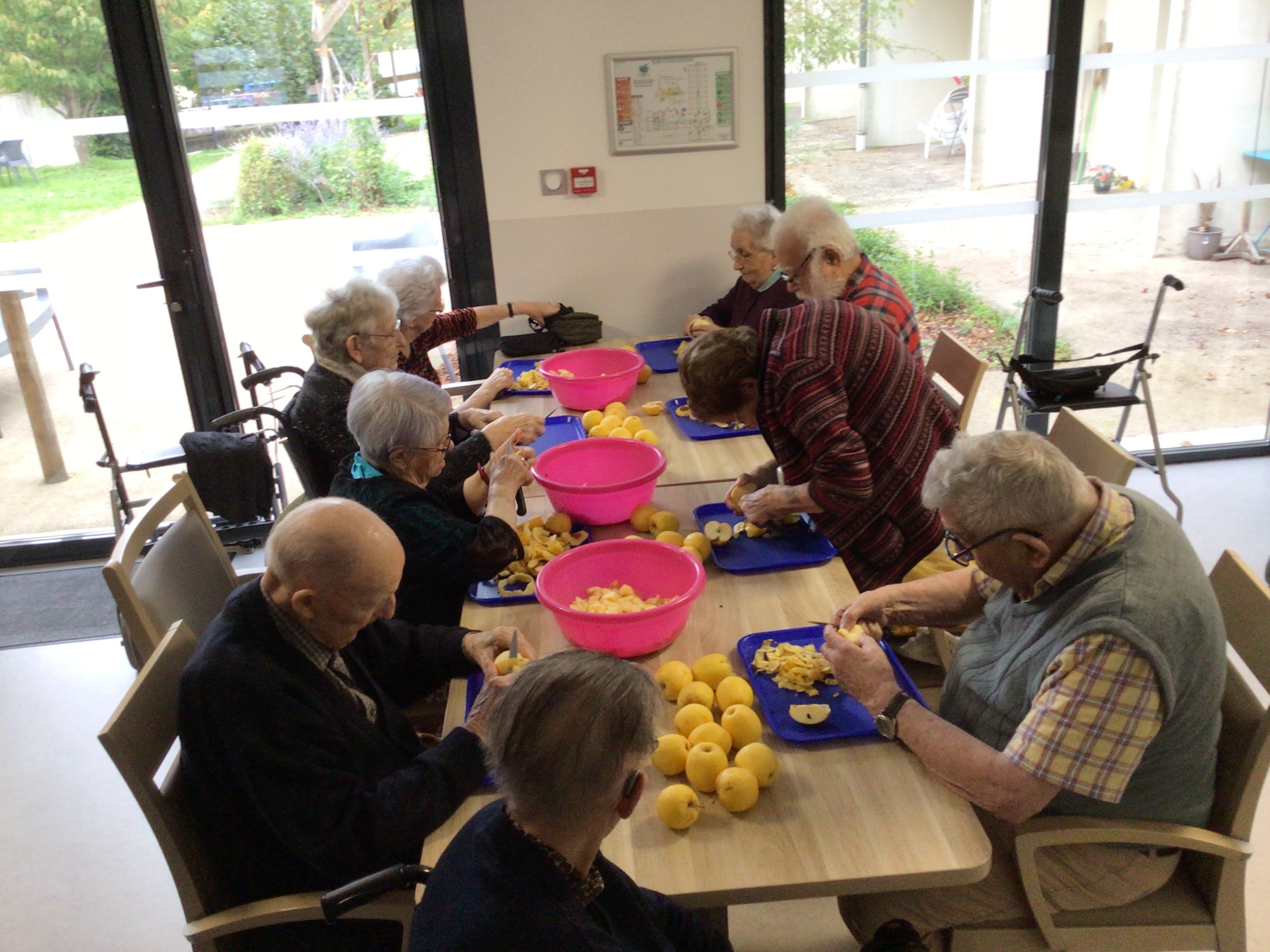 L'épluchage des fruits a réuni, comme tous les mardis, un groupe de résidents très assidus .