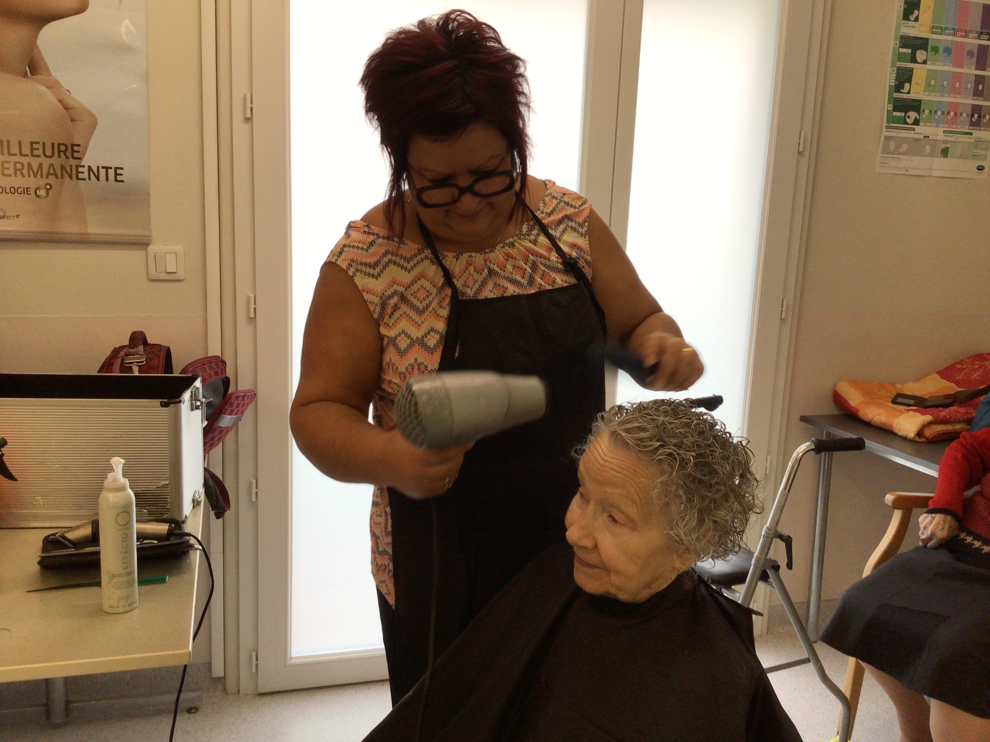 Une journée qui a commencé avec l'intervention de Virginie la coiffeuse. coupes , permanentes , brushings... étaient au programme.