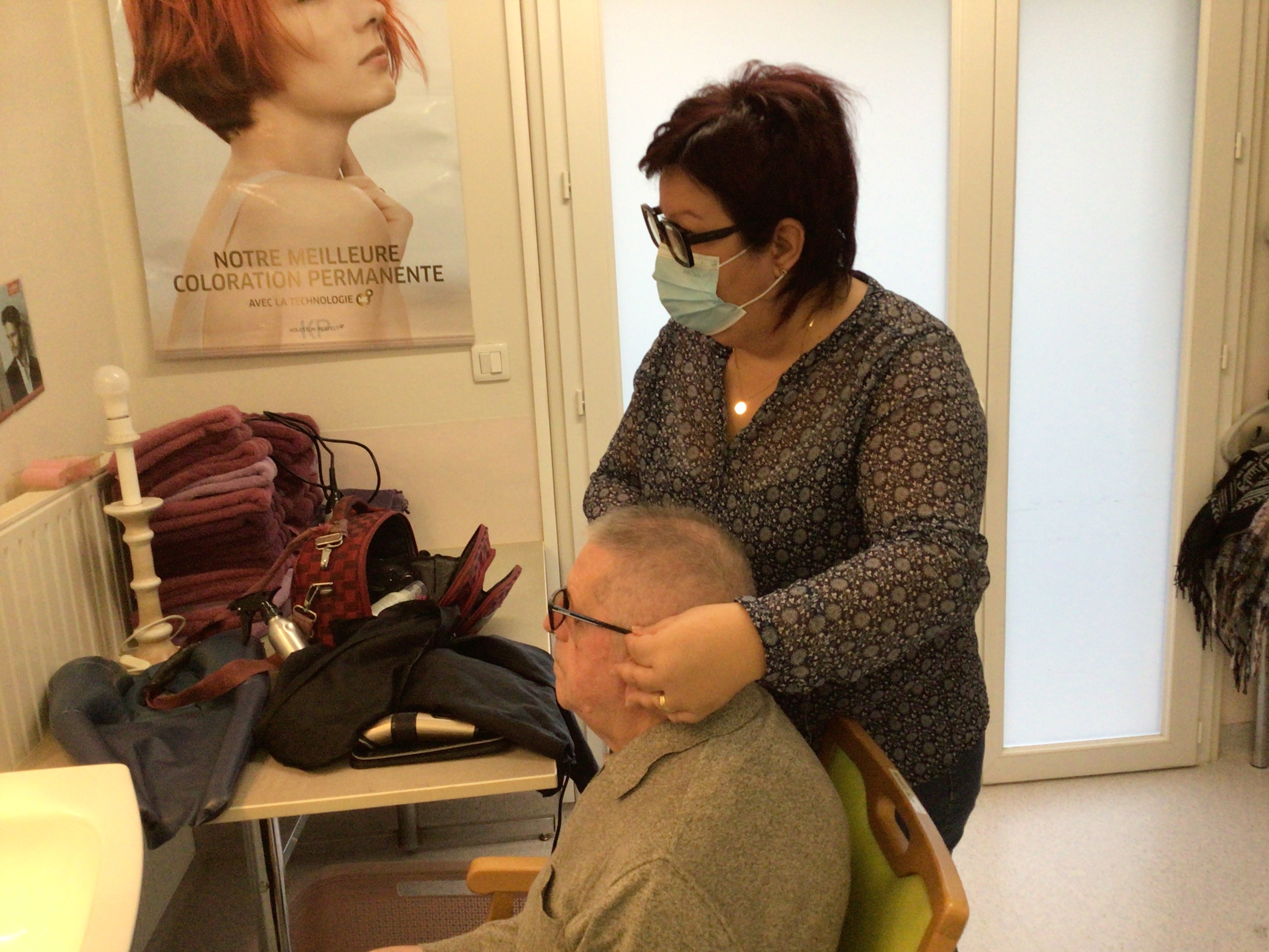 Matin: Passage de la coiffeuse pour se refaire une beauté pour les messieurs et les dames. shampoing, coupe, brushing,...