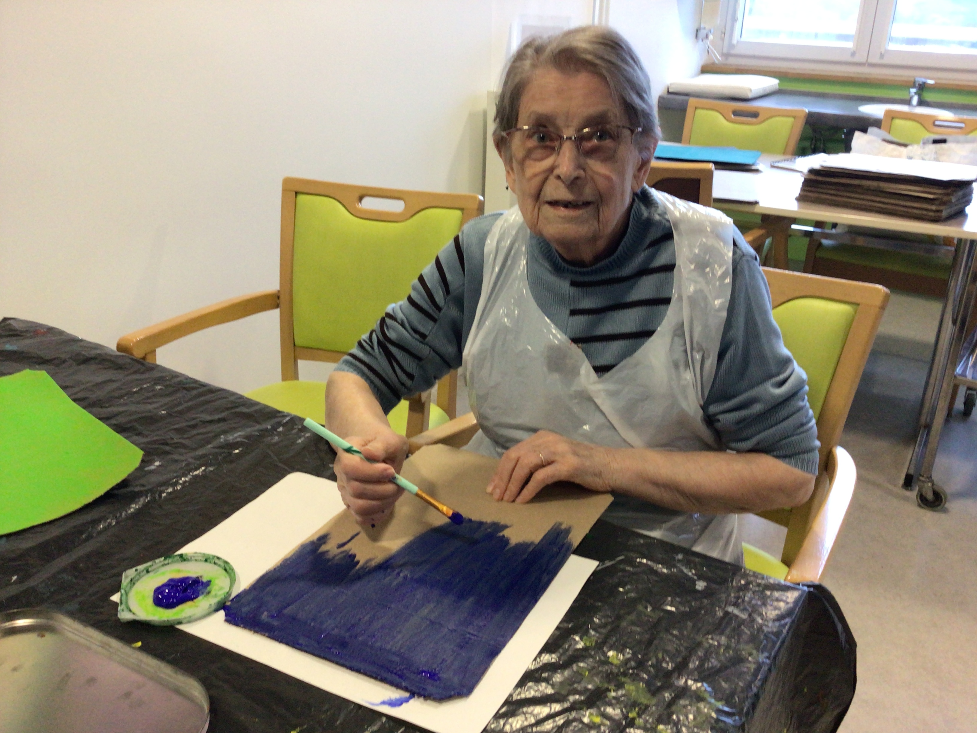 --Art thérapie en individuel et en groupe.Un temps artistique attendu des résidents qui apprécie tout particulièrement ce moment de création libre avec l’accompagnement de Brigitte Belaud Art thérapeute.