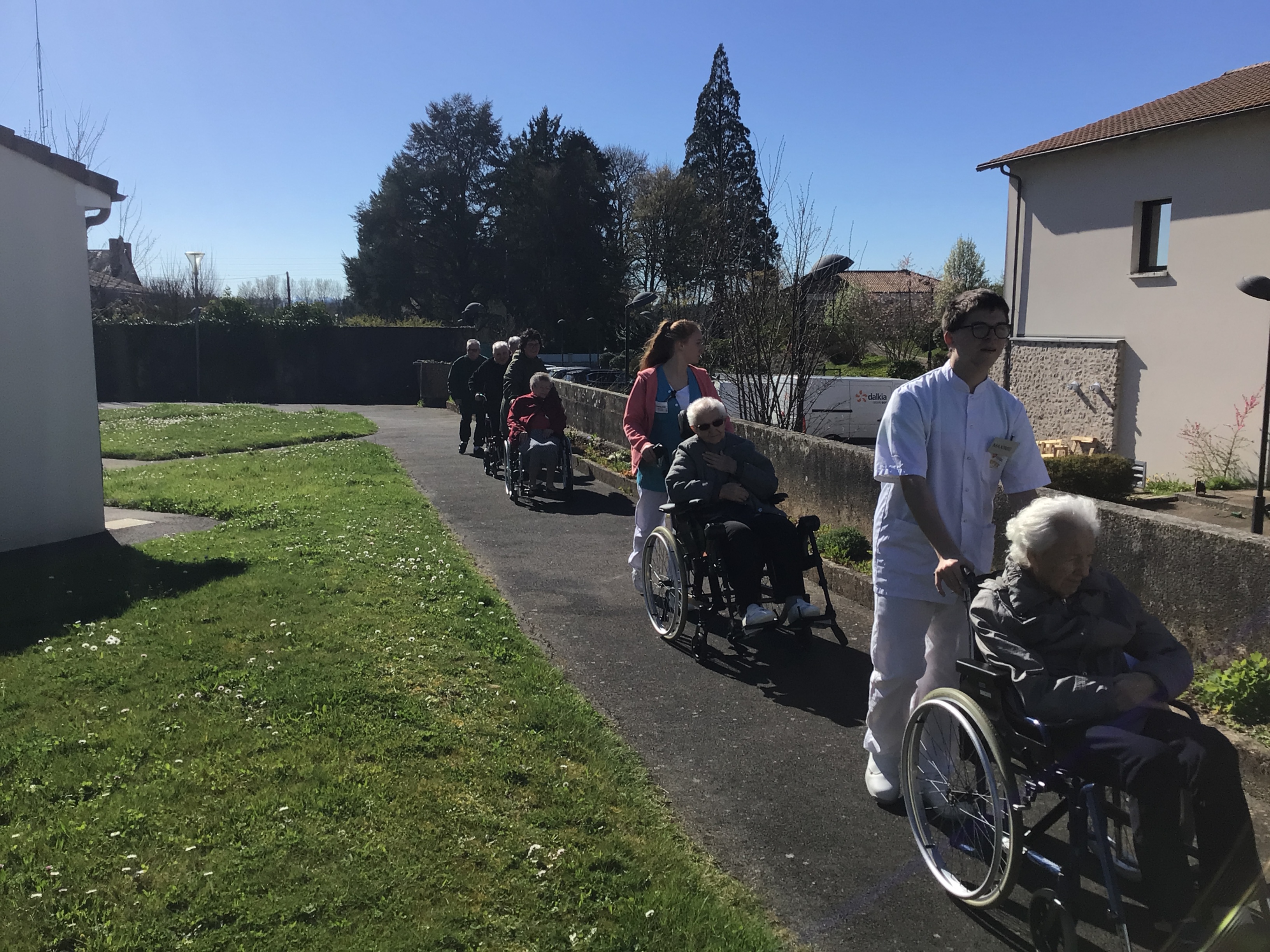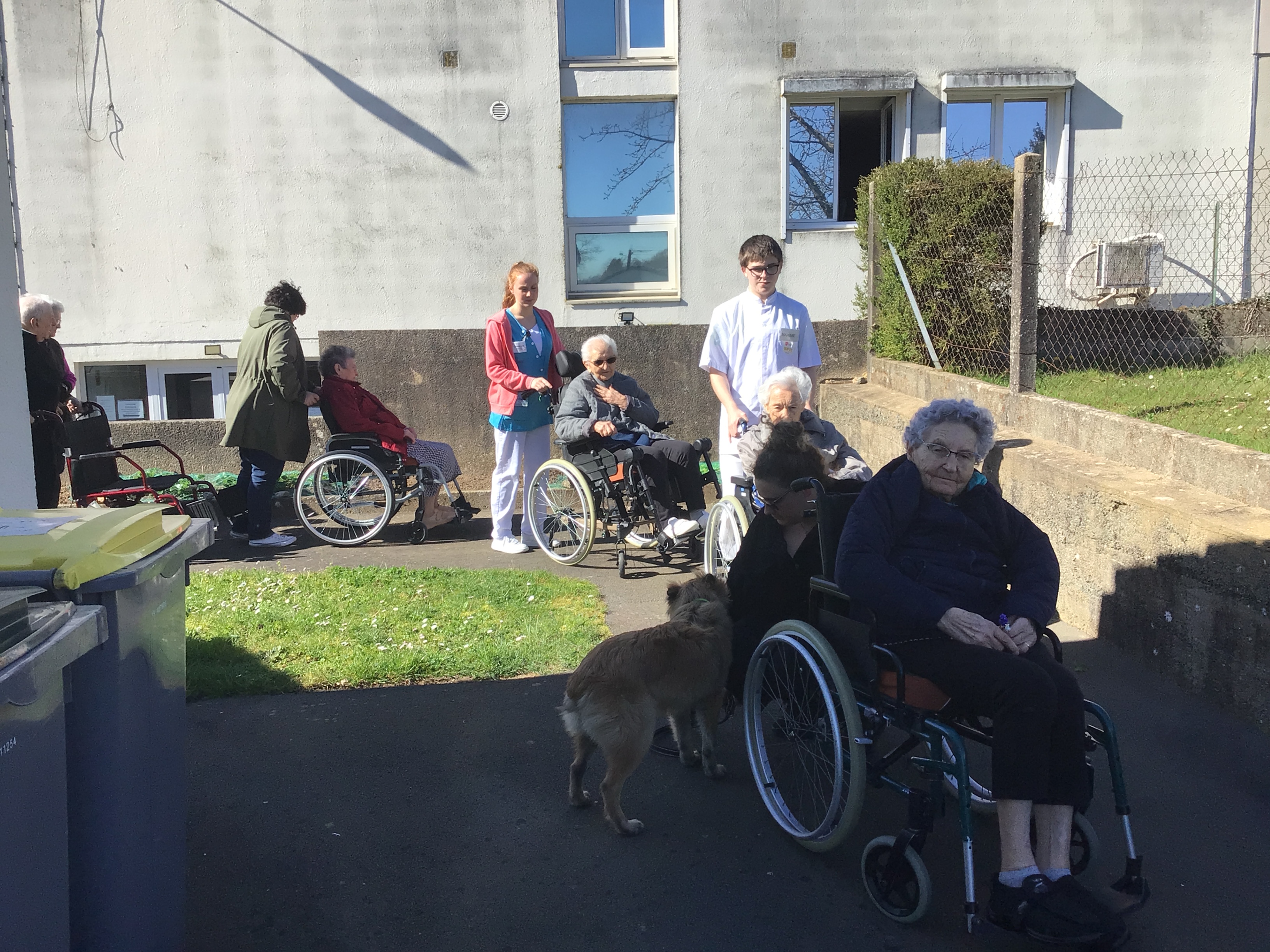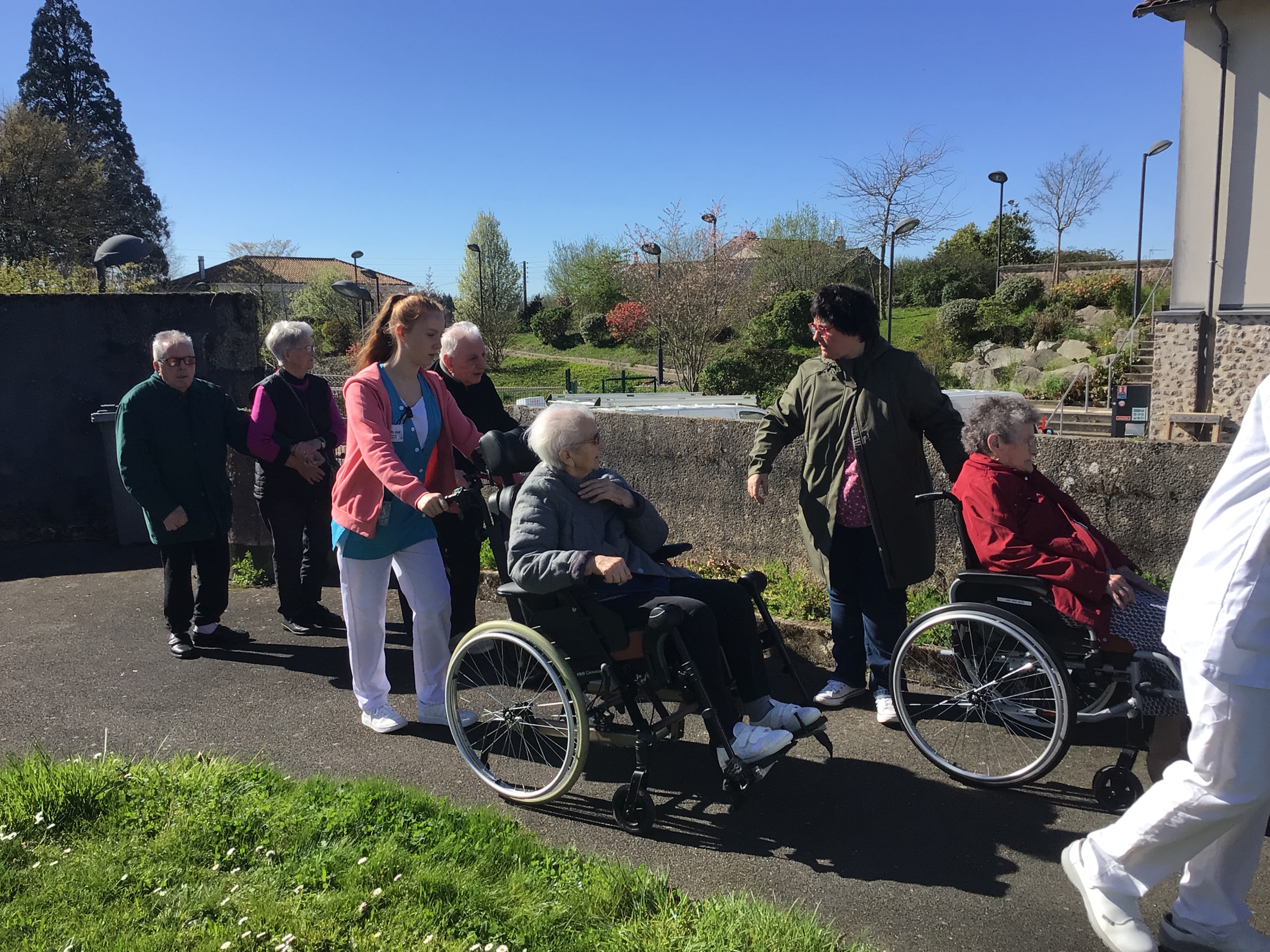 Un groupe de résidents est allé se promener dans les rues de Secondigny avec un accompagnateur à 4 pattes. Et oui, un chien bien éduqué avec son maître nous a accompagné sur toute la sortie. il faisait beau mais le vent du Nord soufflait.