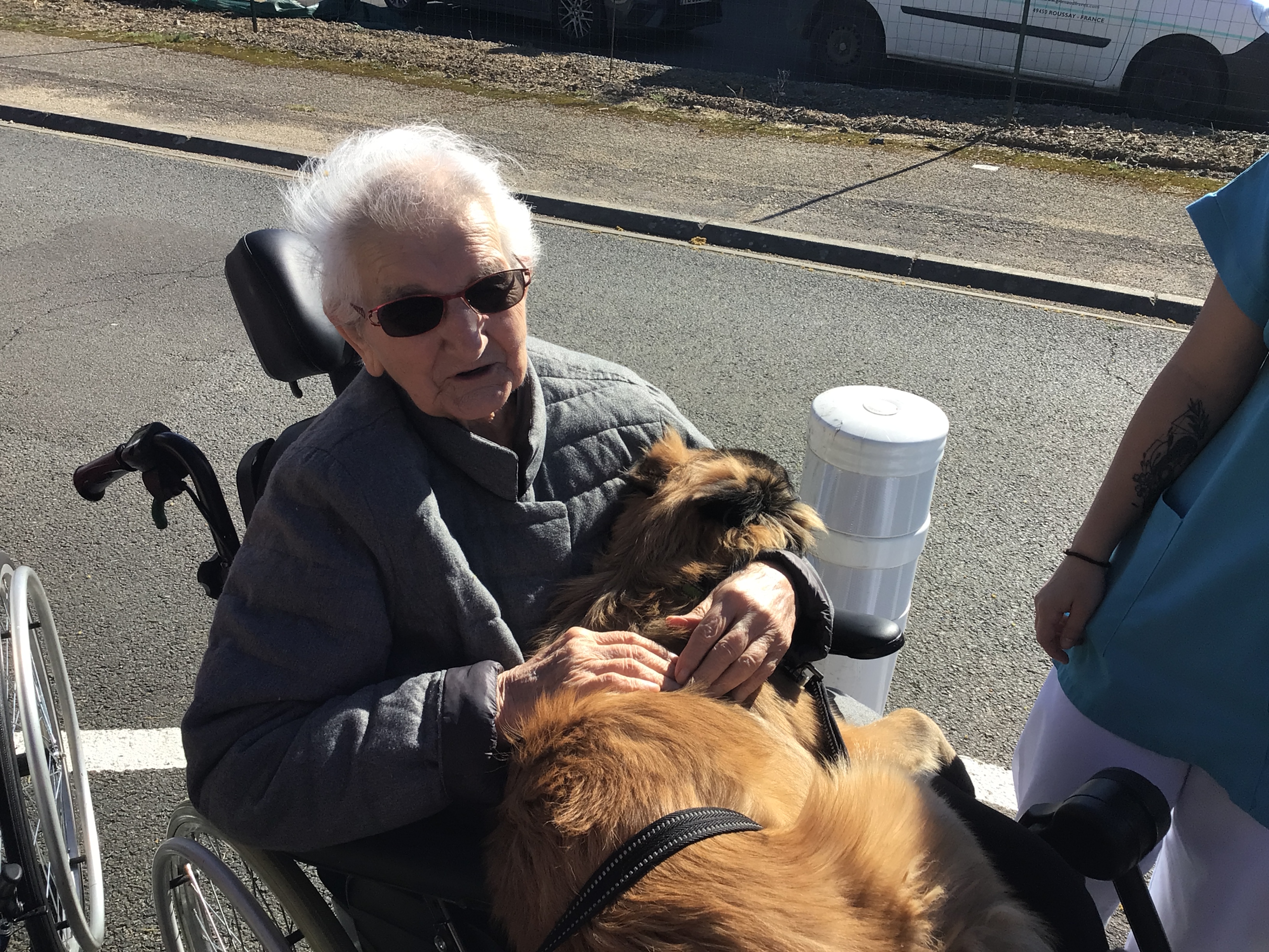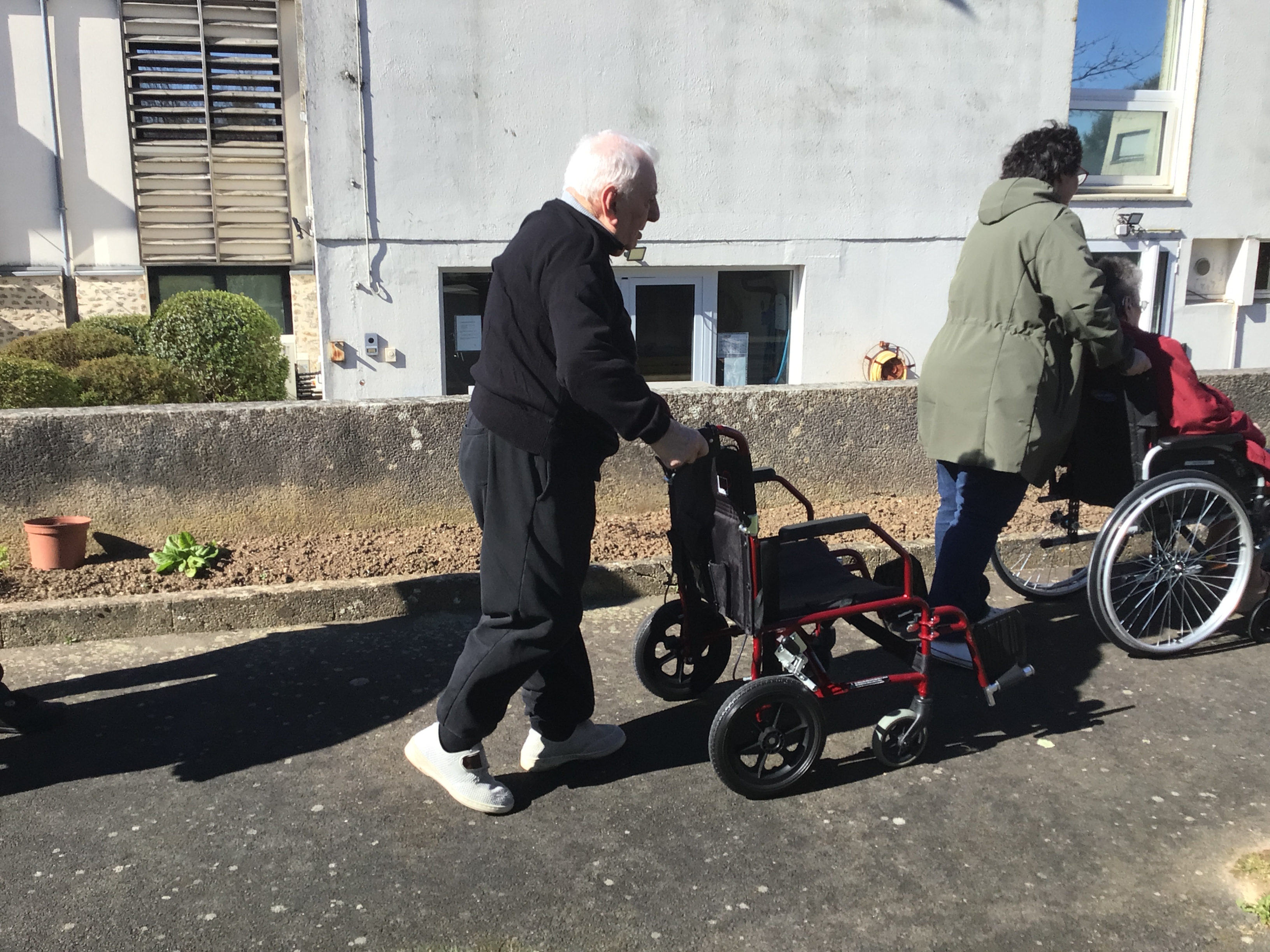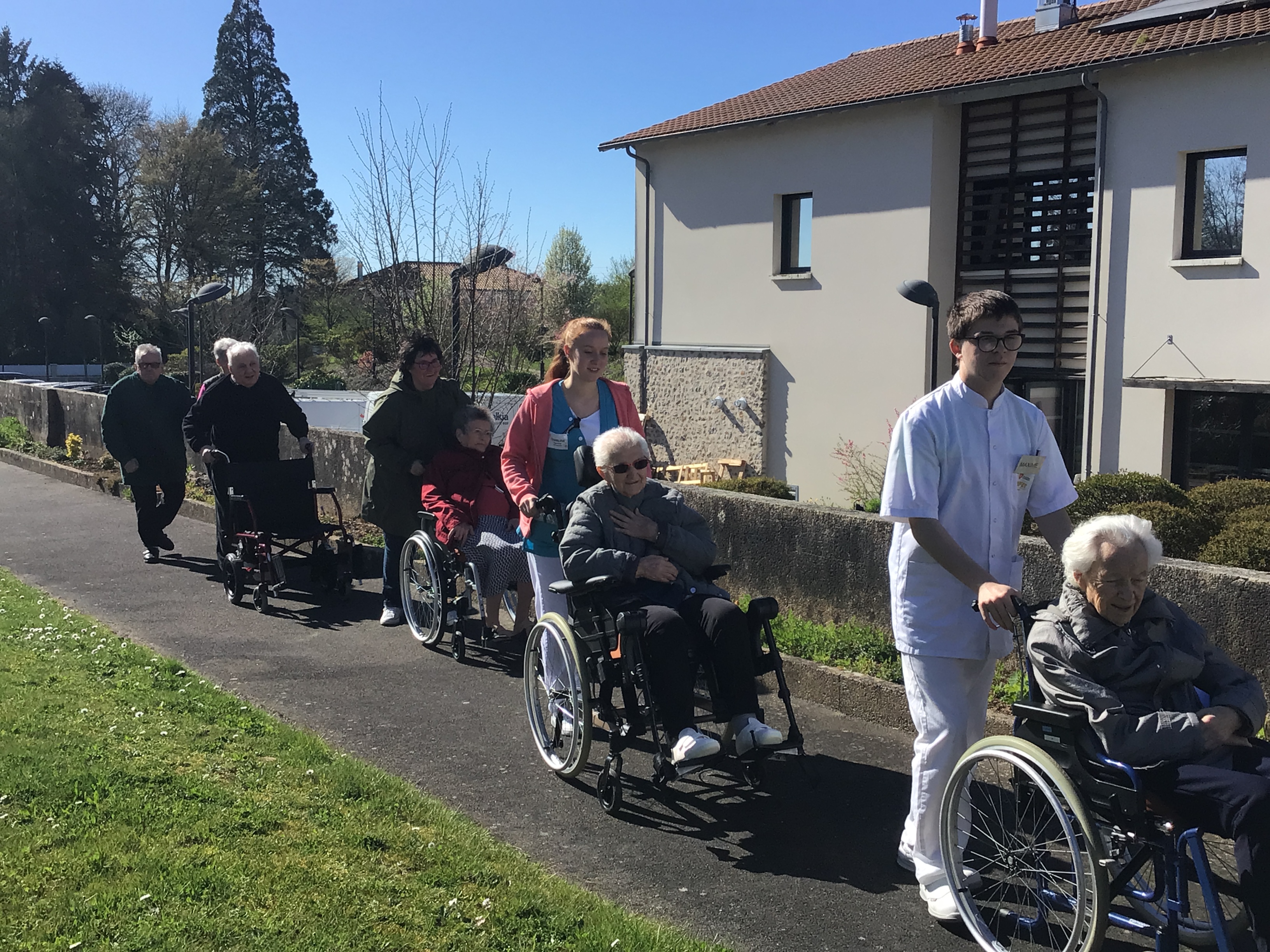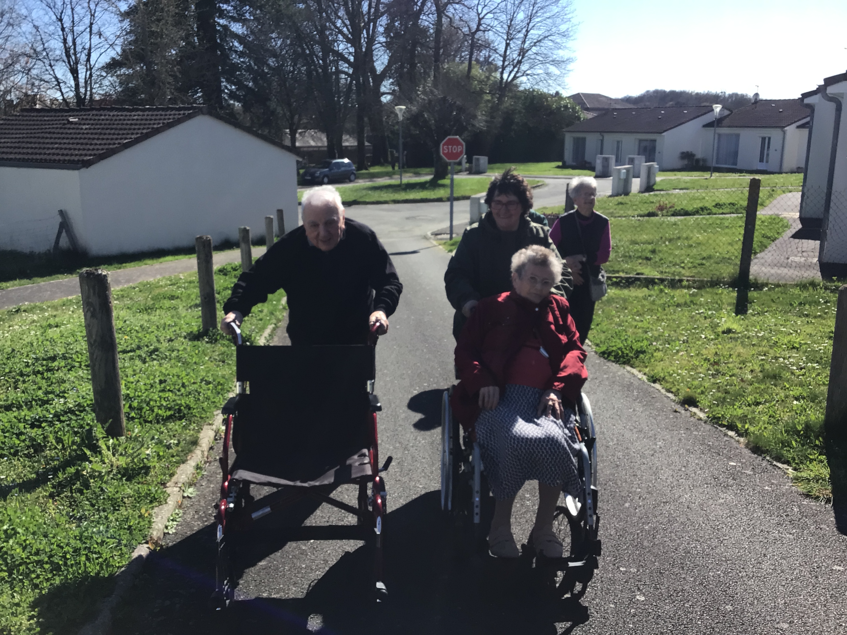 Un groupe de résidents est allé se promener dans les rues de Secondigny avec un accompagnateur à 4 pattes. Et oui, un chien bien éduqué avec son maître nous a accompagné sur toute la sortie. il faisait beau mais le vent du Nord soufflait.