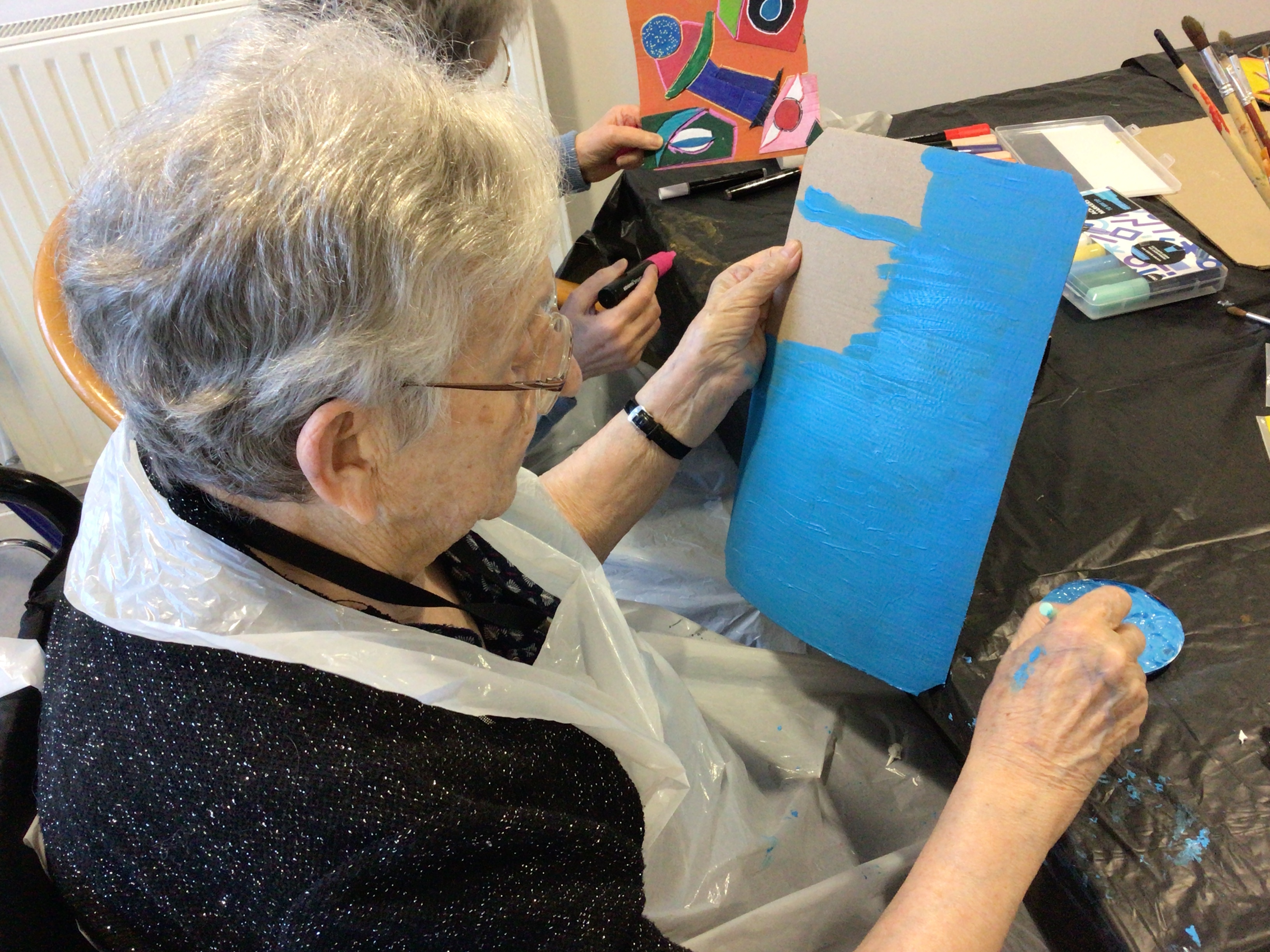 L’atelier art thérapie de Brigitte Belaud a permis cet après-midi, aux résidentes présentes à l’activité de s’exprimer à travers de la peinture, du découpage… Pour certaines, des réalisations de décorations pour Pâques mais pour d’autres, un travail de de création en s’inspirant des œuvres de Gaston Chaissac.