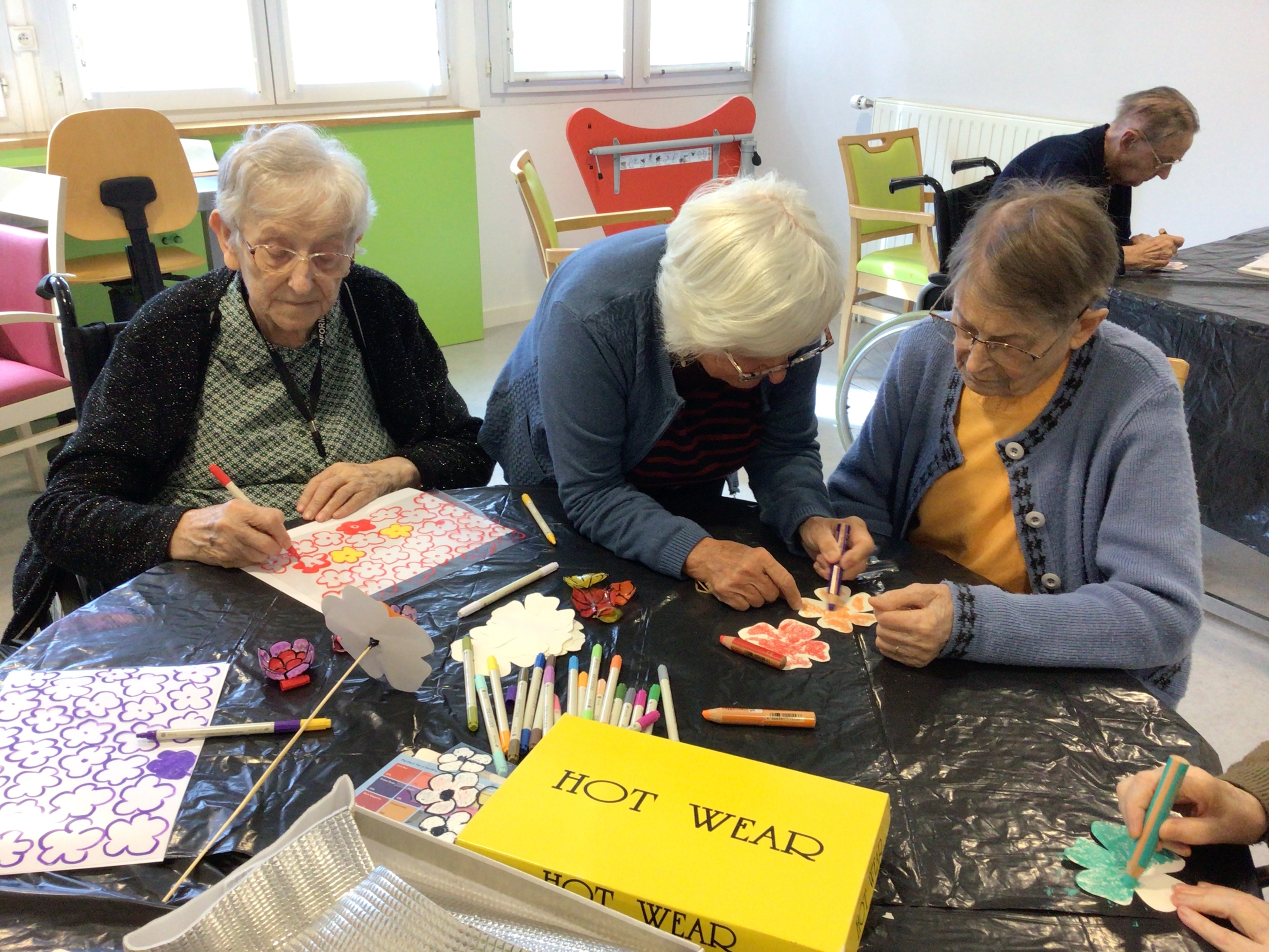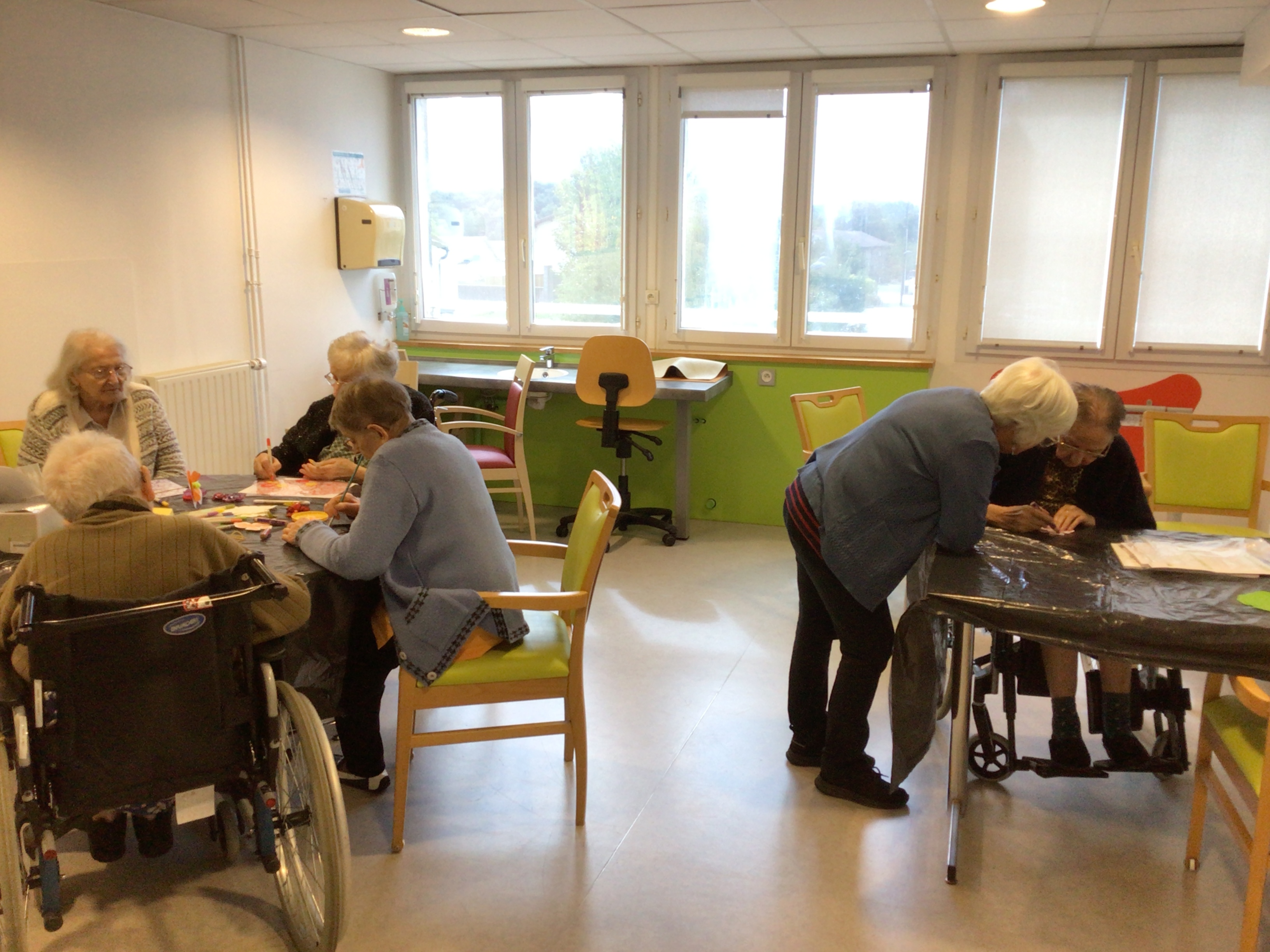 Activités collectives cet après-midi avec le nouveau groupe d'Art thérapie encadré par Brigitte Art thérapeuthe , et les jeux de société avec notre bénévole Marguerite.
