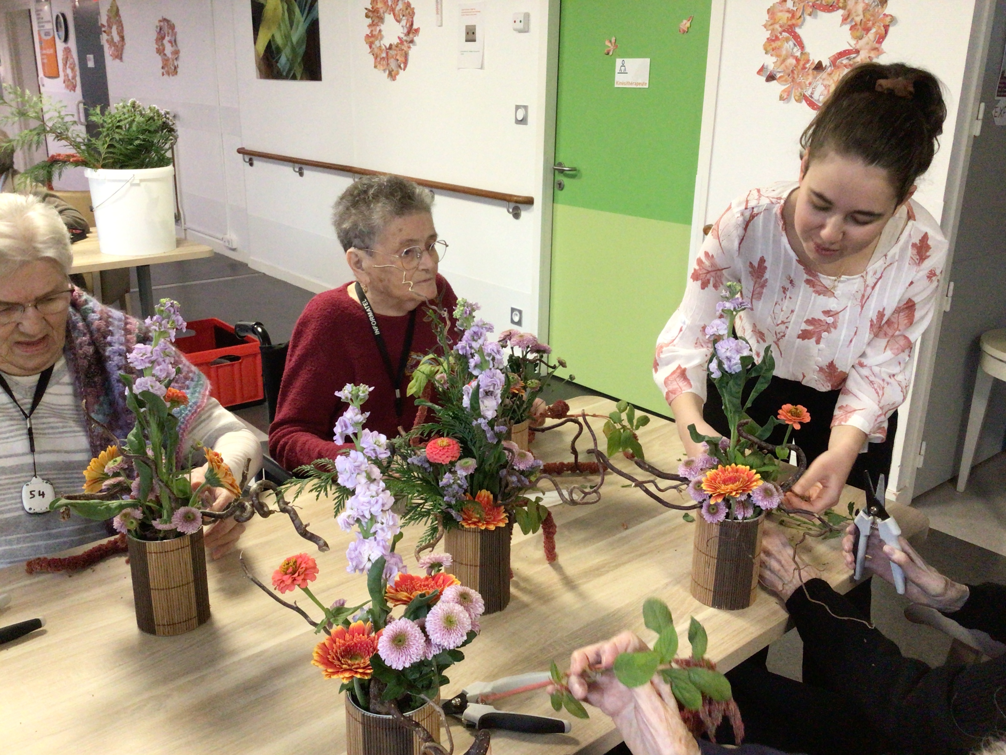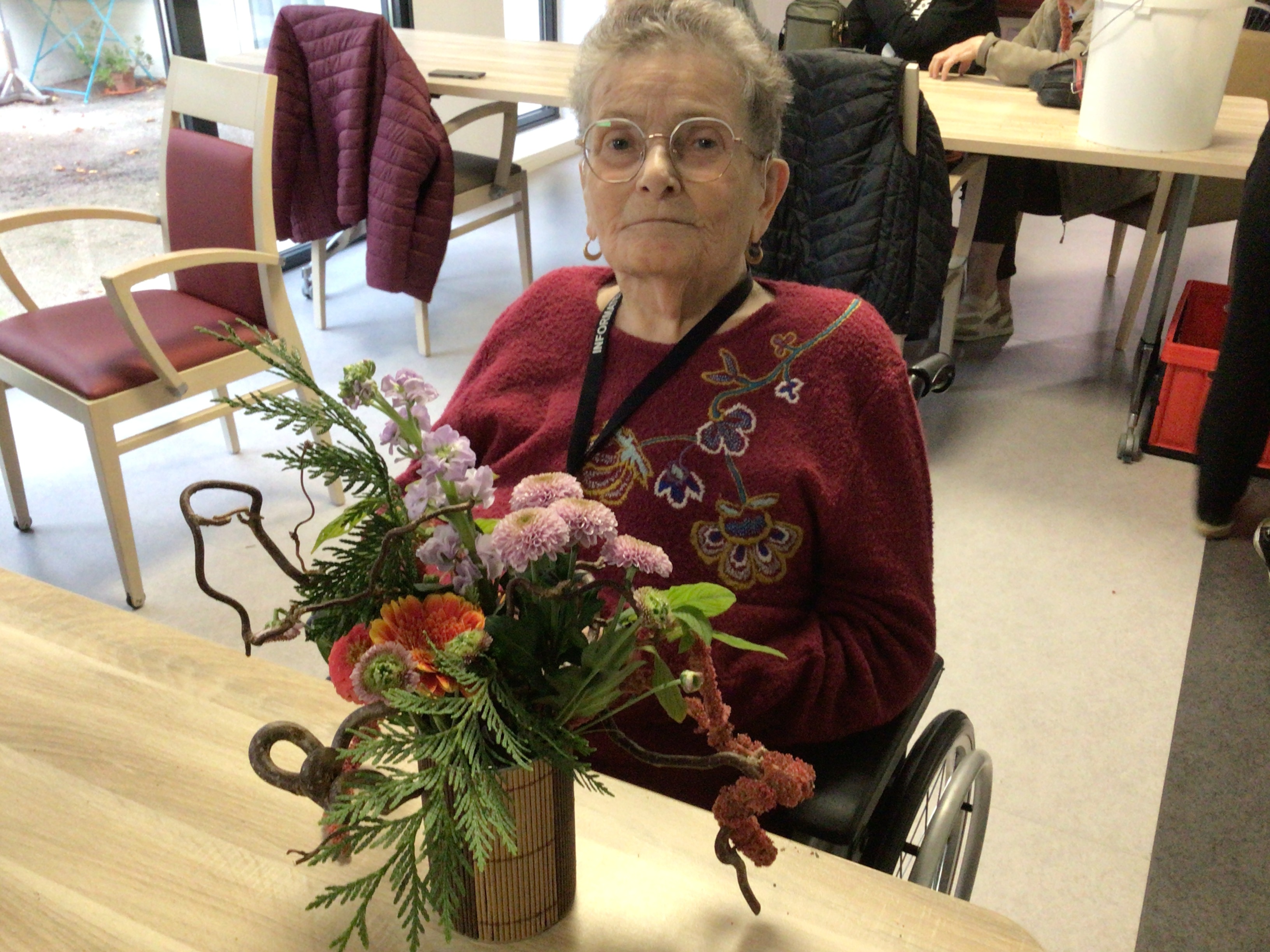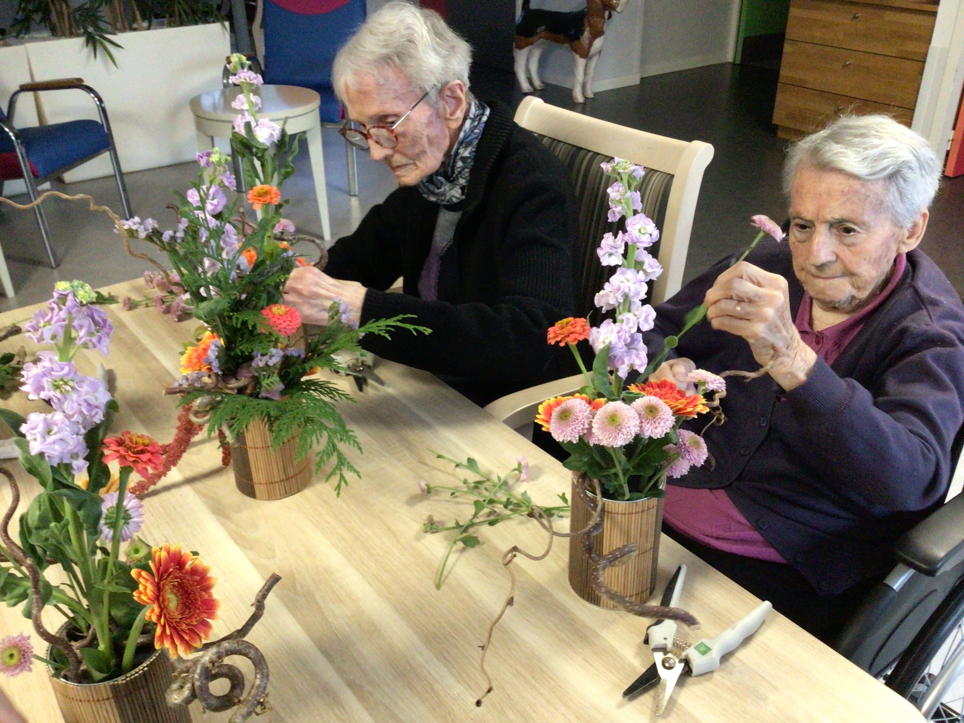 Séance d'Art floral ce matin , avec Honorine la fleuriste de Secondigny. Joli moment de partage et de convivialité avec de très belles compositions pour chacune des résidentes.