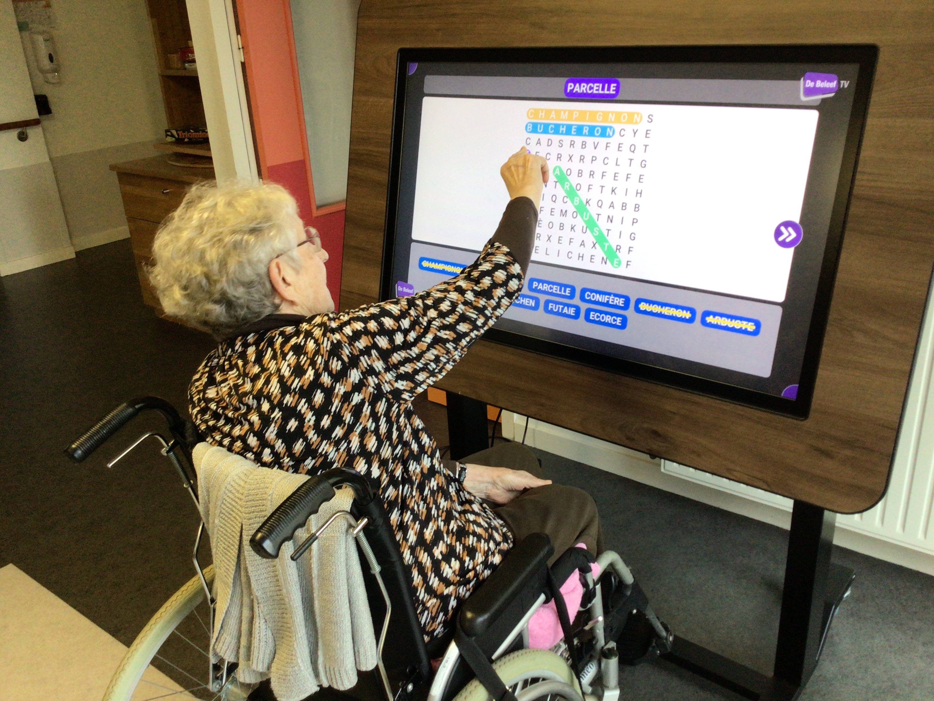 Pour stimuler sa mémoire et sa dextérité, des résidentes jouent sur la table de jeux aux mots mêlés. Pas toujours facile de trouver le mot quand il est écrit à l'envers!