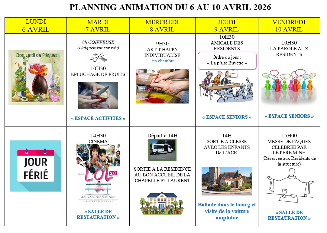 Au sein de l’EHPAD l’animation participe à l’amélioration de la qualité de vie des résidents en prenant en compte les souhaits et les possibilités de chacun.