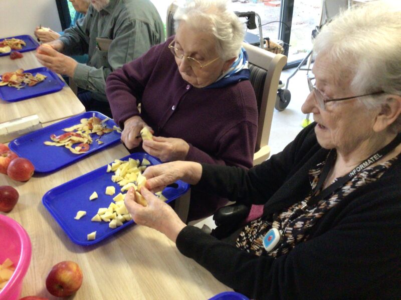 coiffeuse, épluchage de pommes et visite exposition Mme Calvet