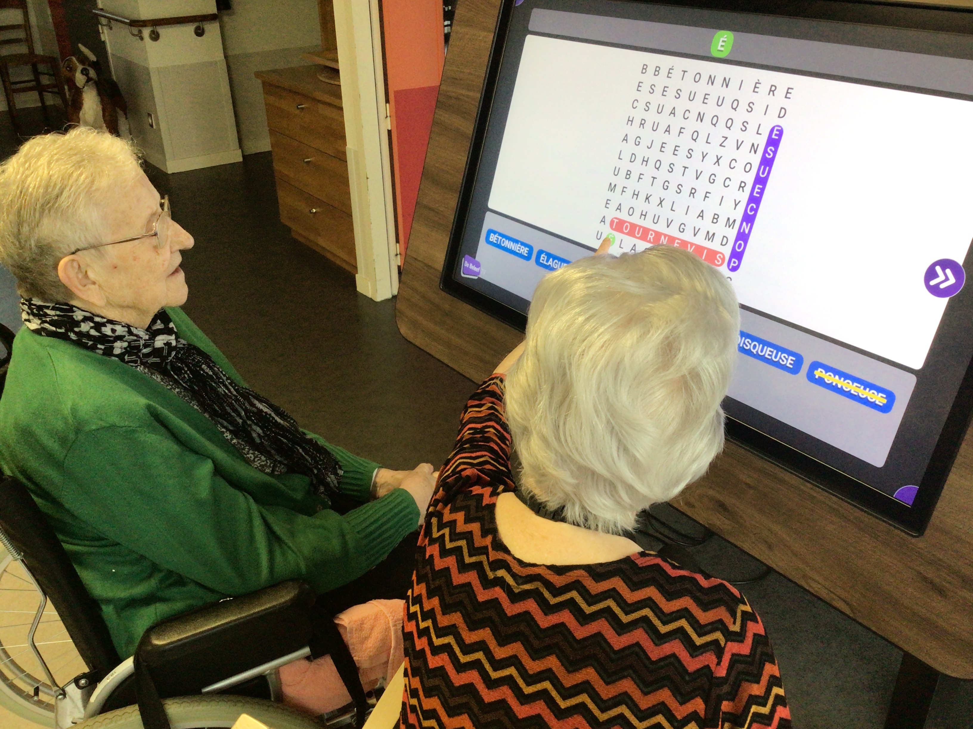 Des résidentes se sont retrouvées autour de la table de jeux. Un bel outil numérique pour développer la motricité fine, divertir et renforcer les liens sociaux.