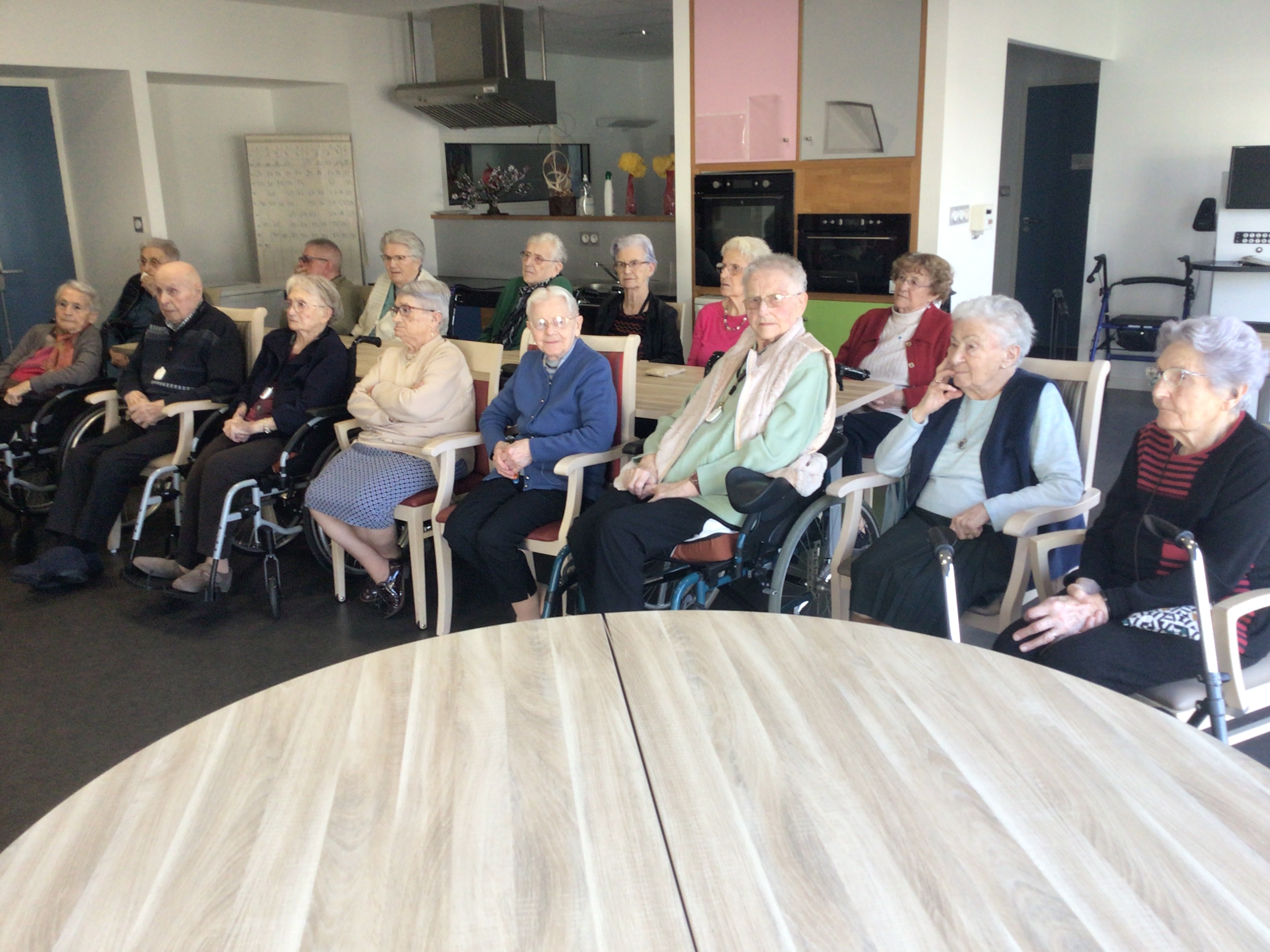 Le Petit Bac proposé cet après-midi avait réuni un bon nombre de résidents. Ce jeu de mémoire collectif plaît beaucoup aux résidents, il permet une stimulation cognitive mais aussi d'encourager les interactions sociales.