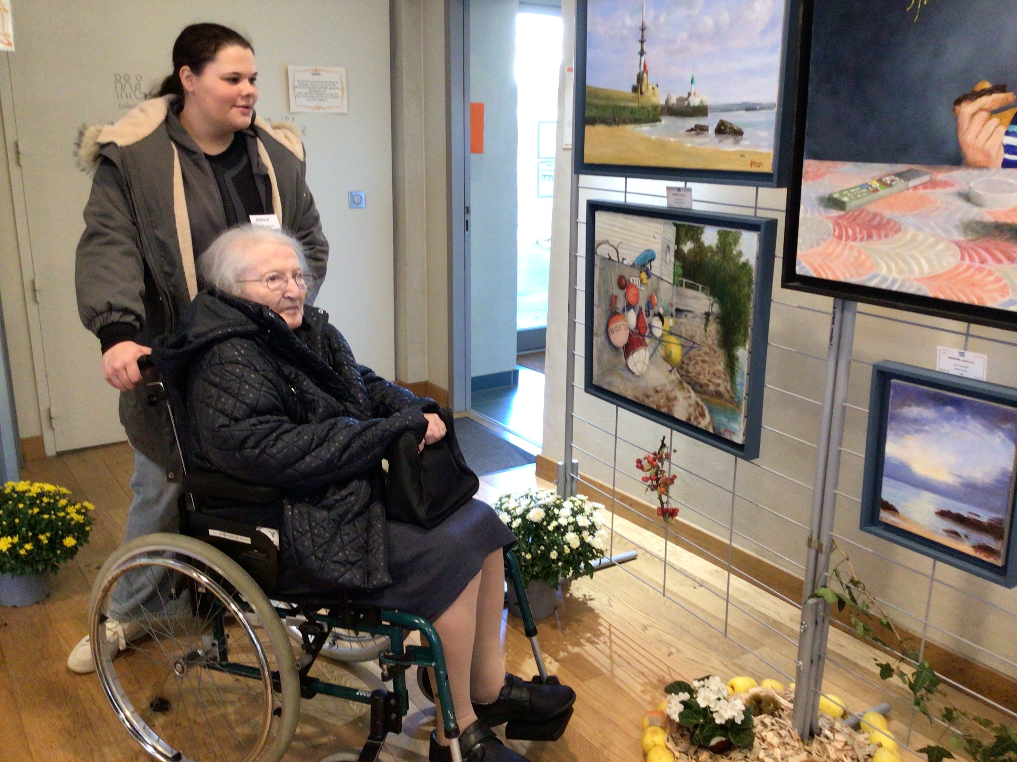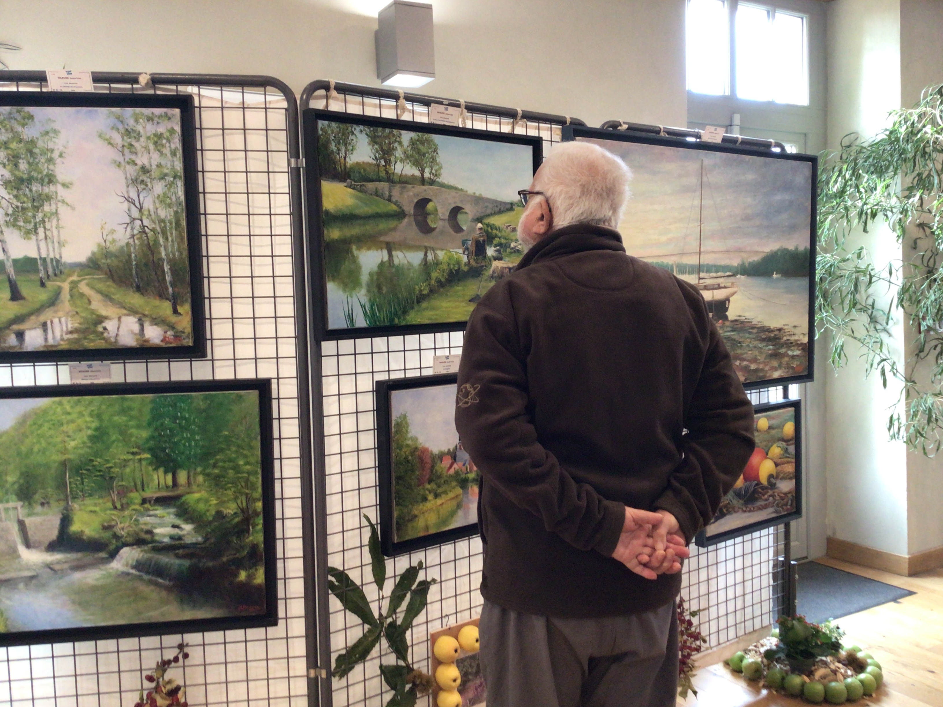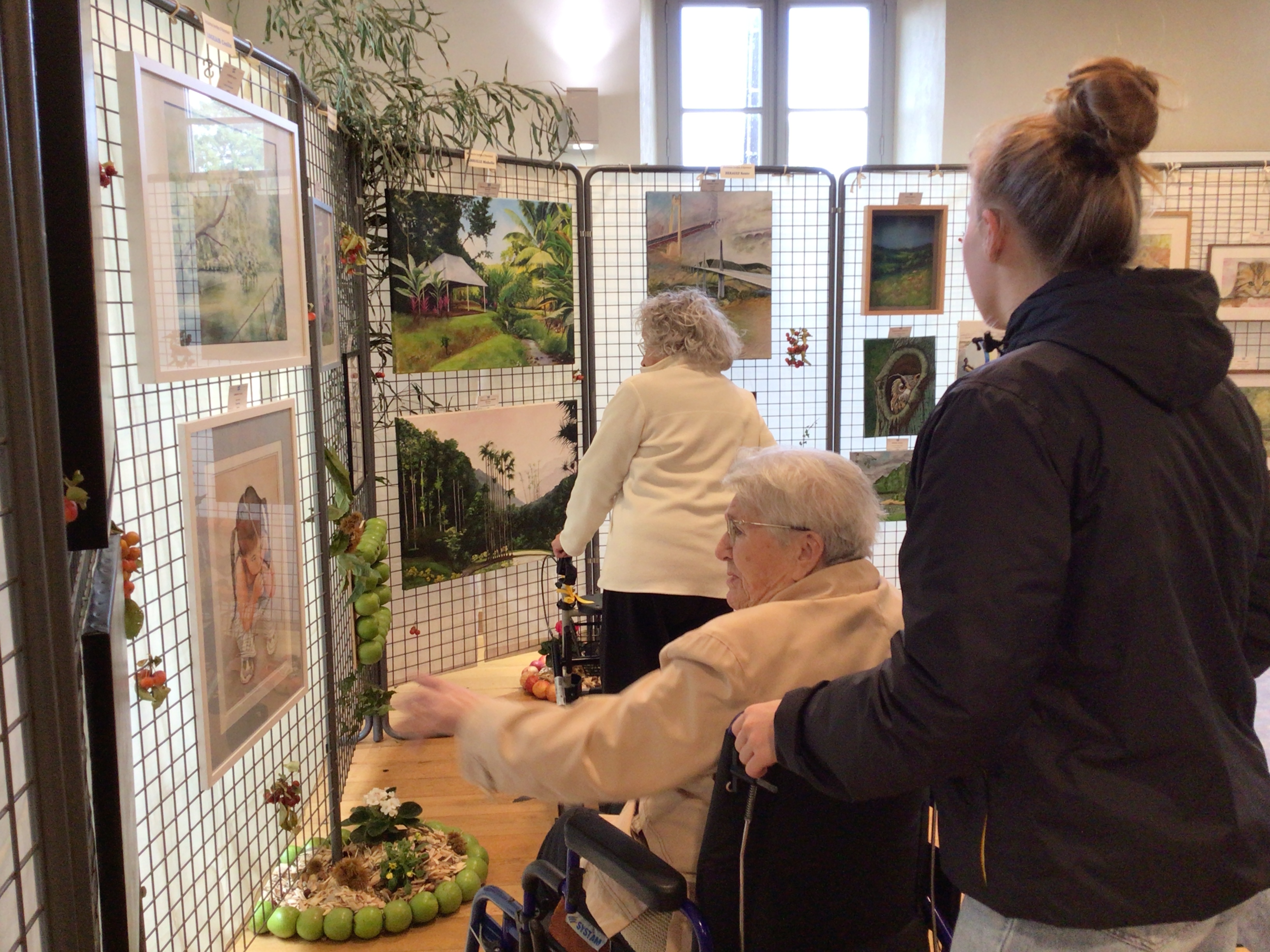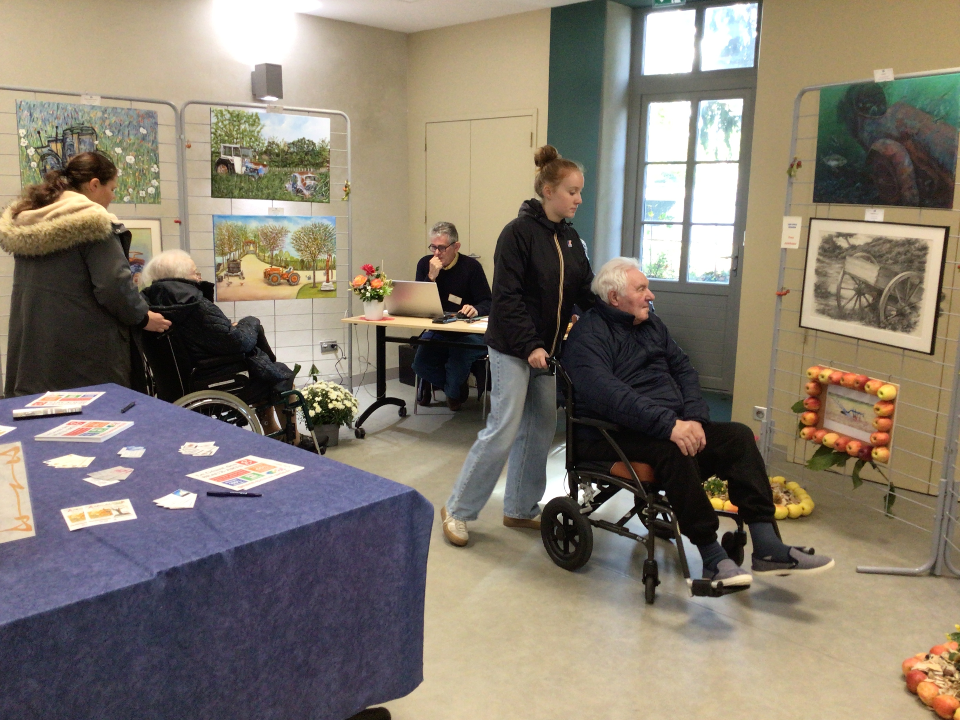 Dans le cadre de Pomm'expo, les résidents de l'Ehpad sont allés ce matin , visiter le salon de peinture qui rend hommage au patrimoine agricole : vestiges de matériels, voitures anciennes et outils d’autrefois revisités par les artistes.