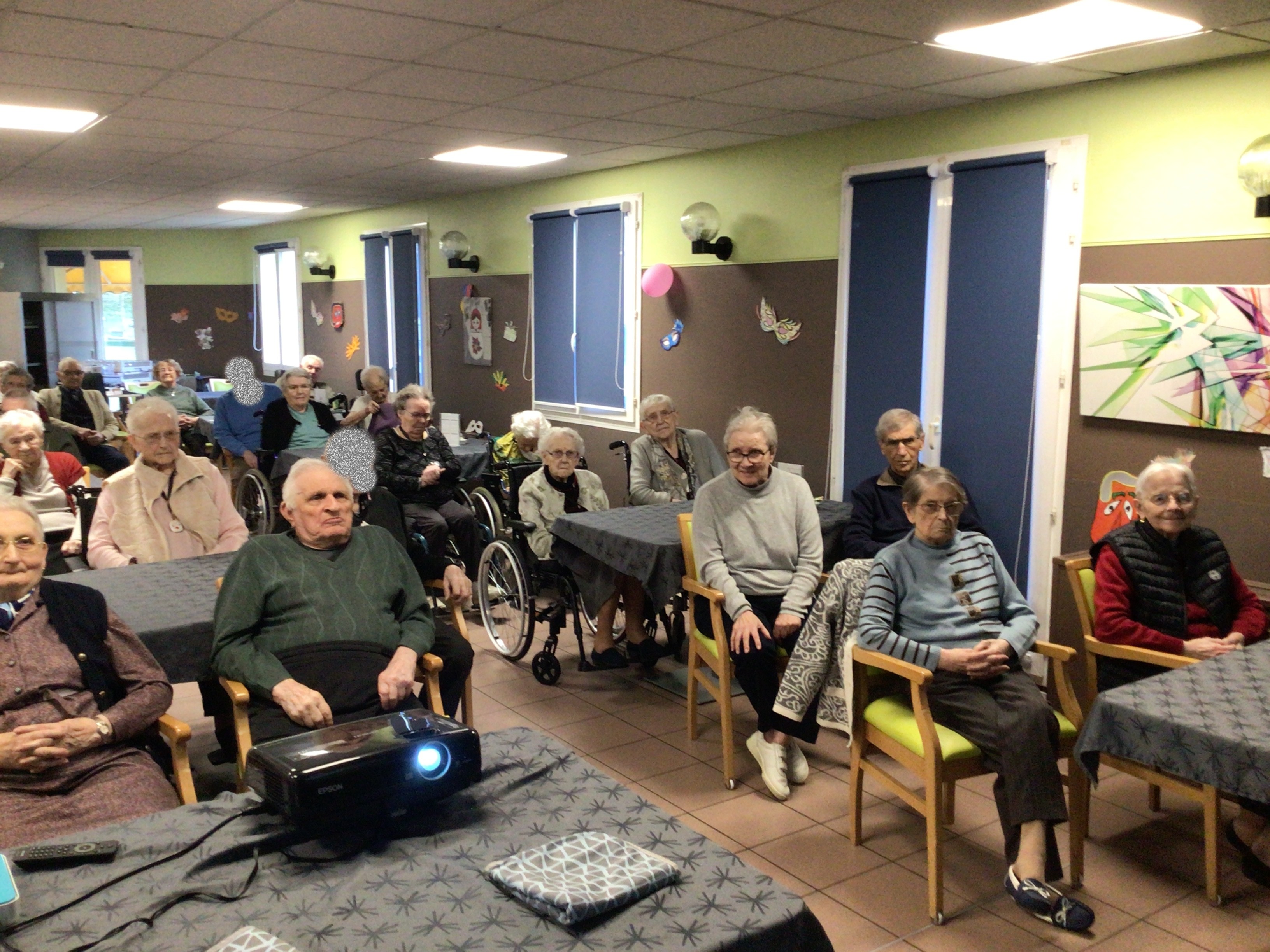 après midi: film "je vous trouve très beau" avec Michel Blanc. les Résidents ont apprécié la beauté du film et le fait que ce soit à la campagne. Au moemnt du goûter, les résidents ont pu raconter leurs souvenirs : cultiver les parcelles, traire les vaches,...