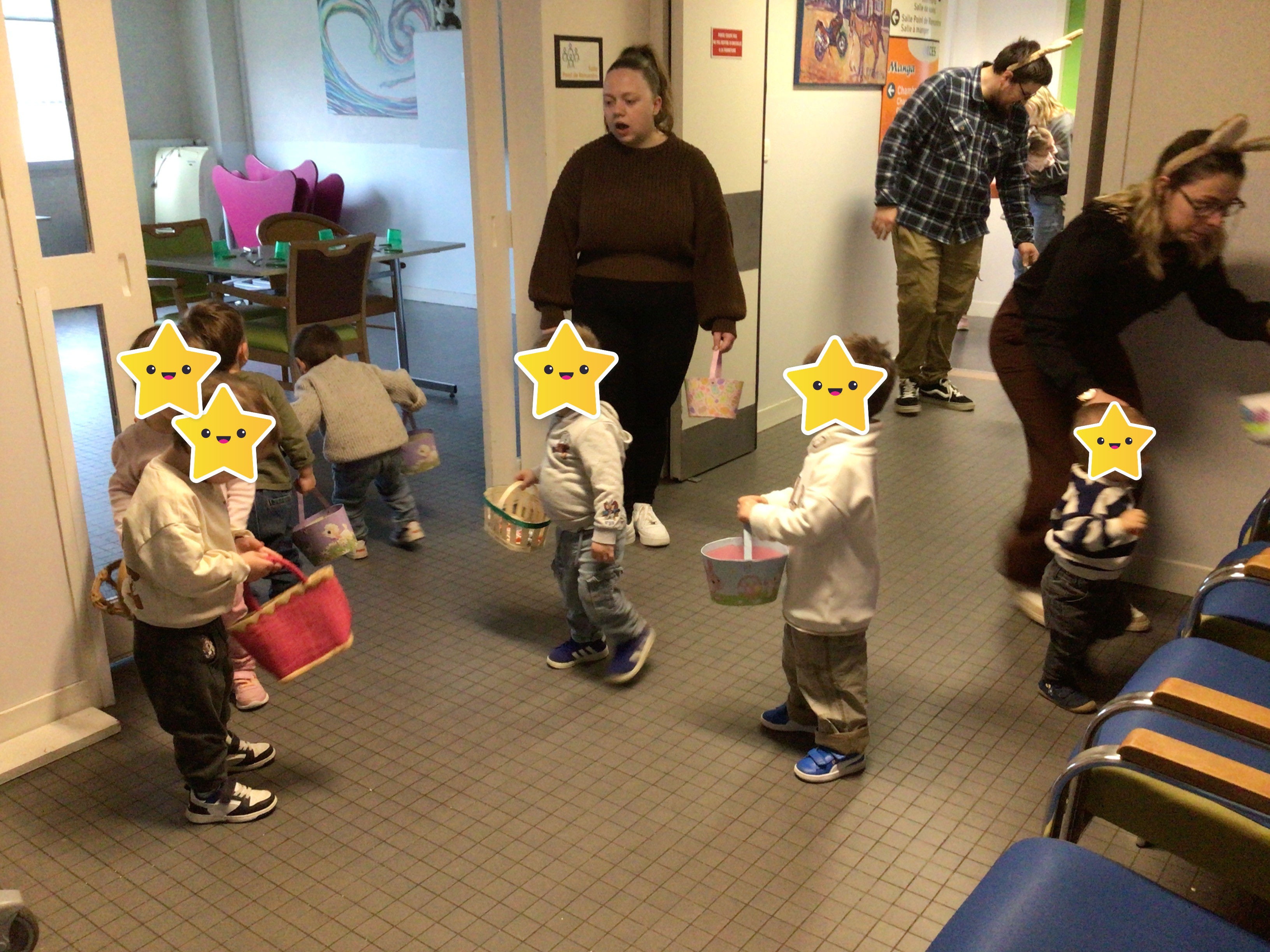 Au programme, chasse aux œufs dans les couloirs, les enfants se sont lancés avec leur petit panier à la recherche des précieux trésors dissimulés par Claudie l’animatrice.