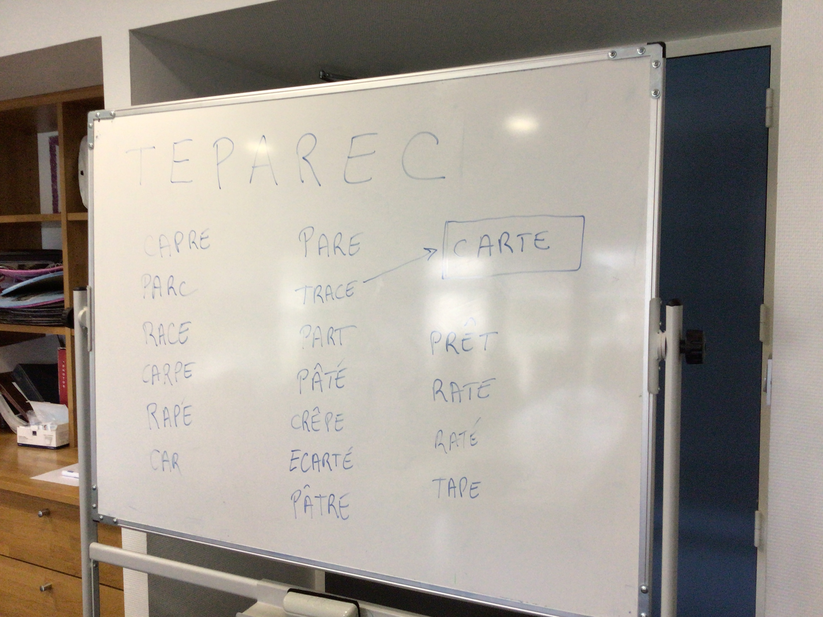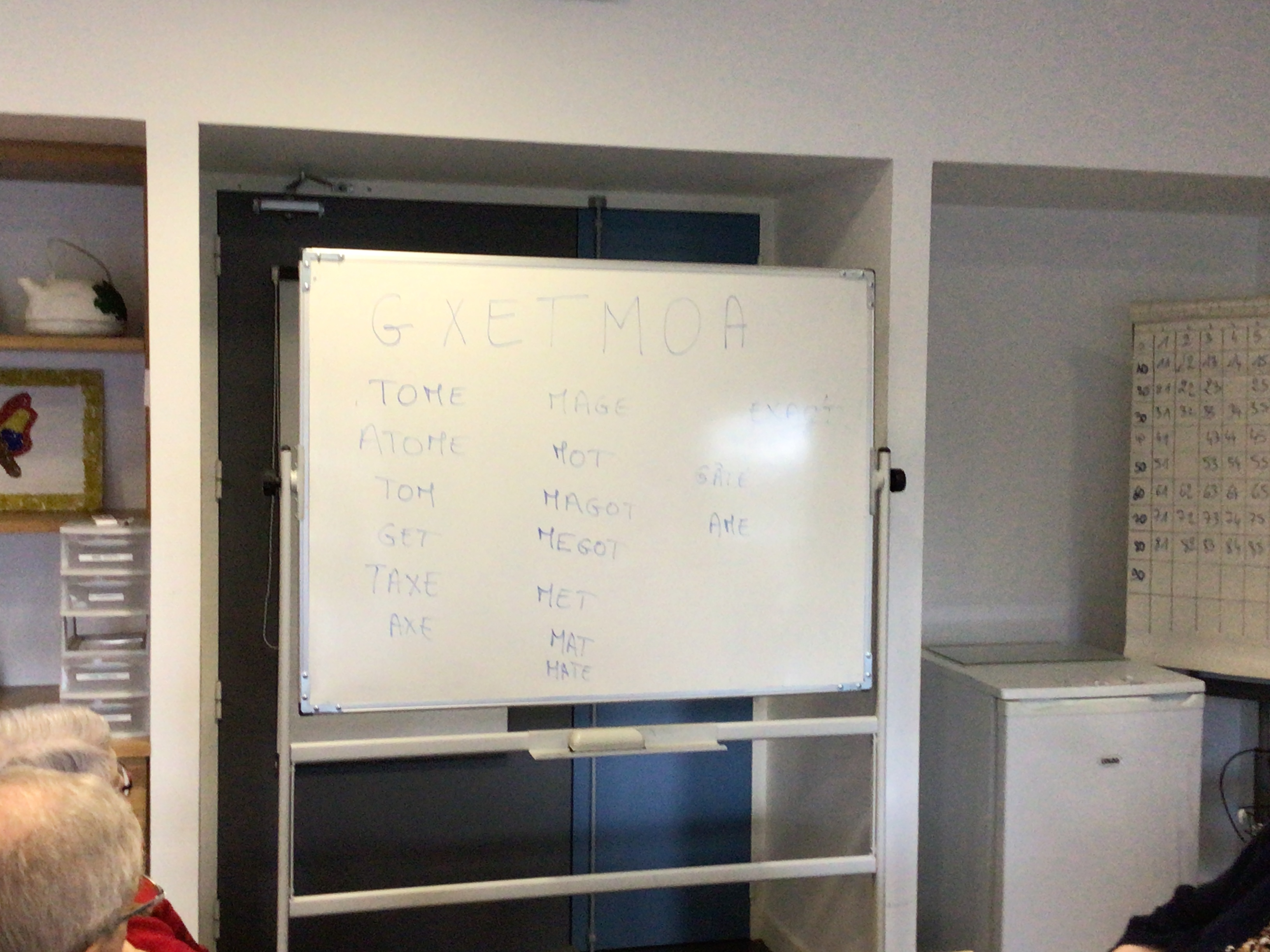 partie Lettres: tirage au sort de 7 lettres par les résidents. il faut ensuite trouver le plus de mots possibles avec les lettres.