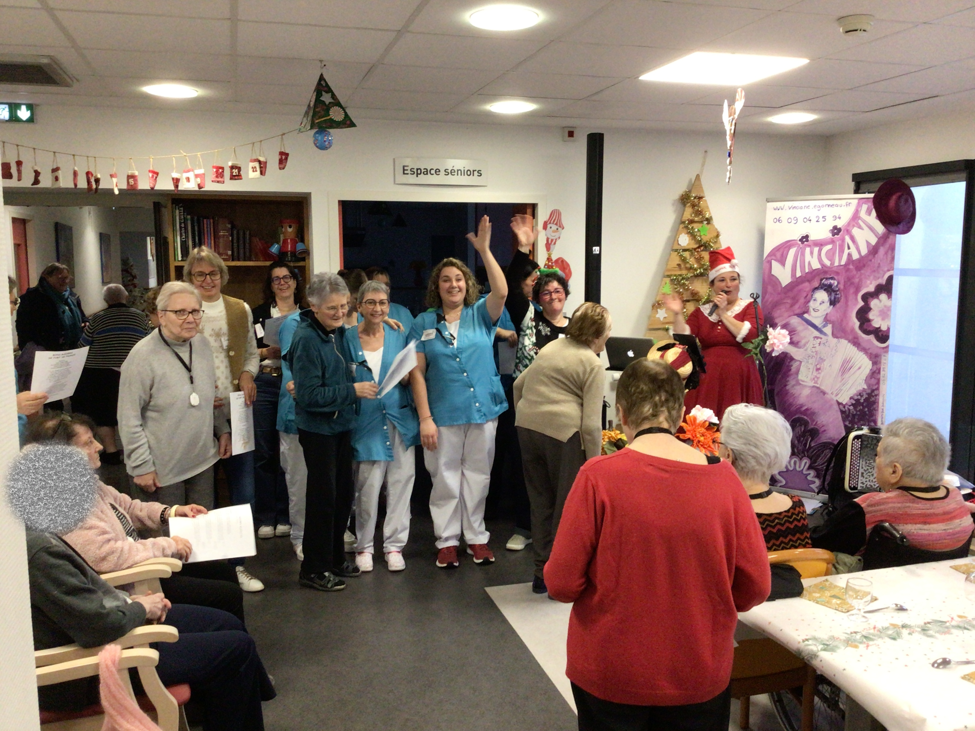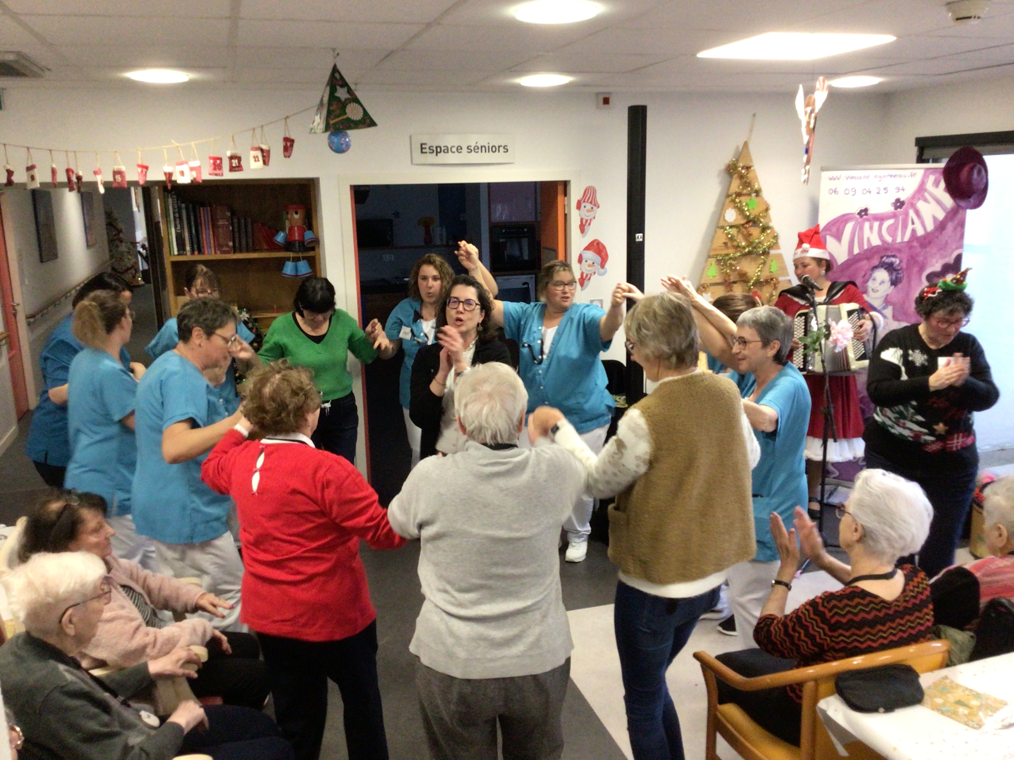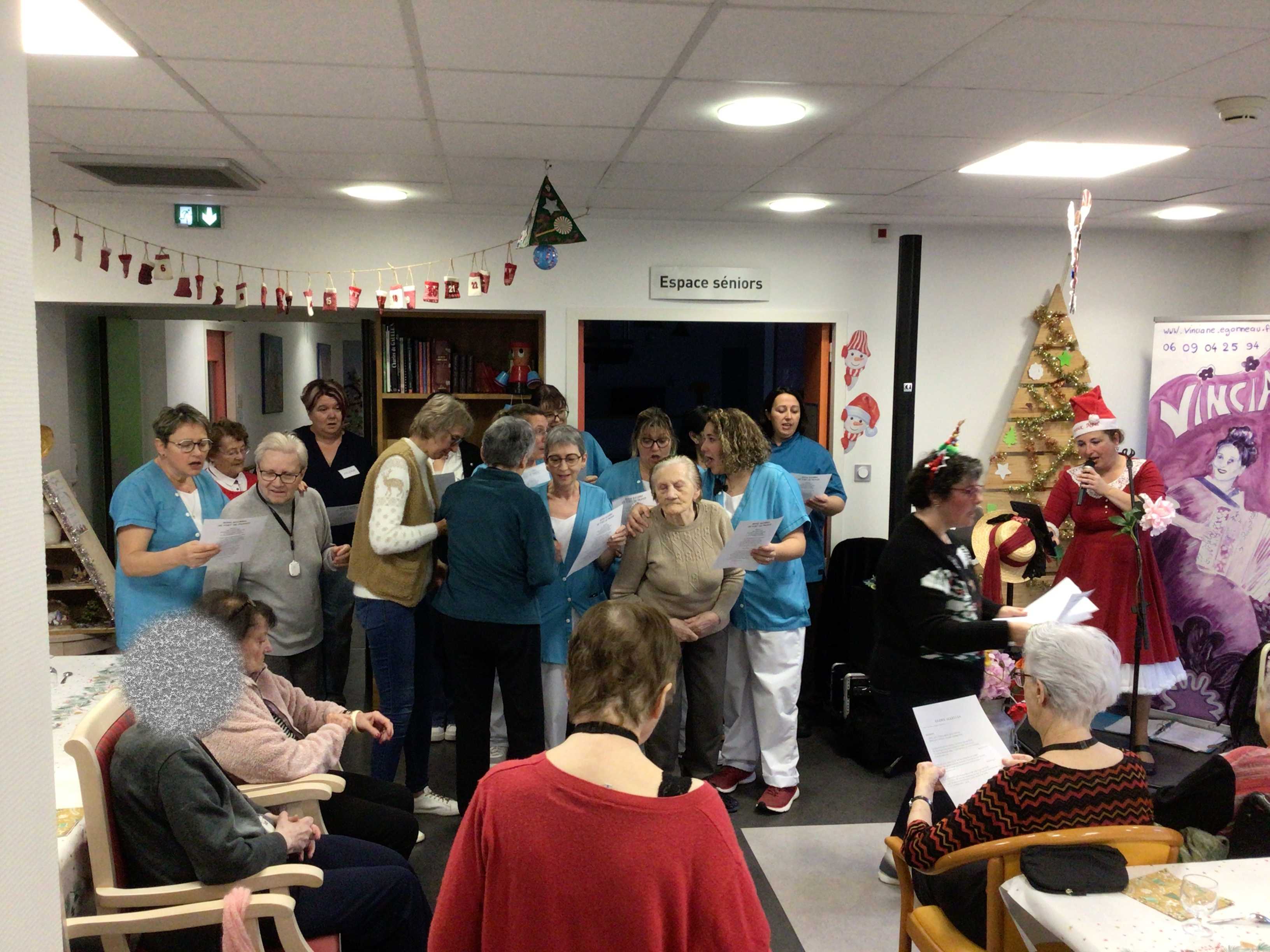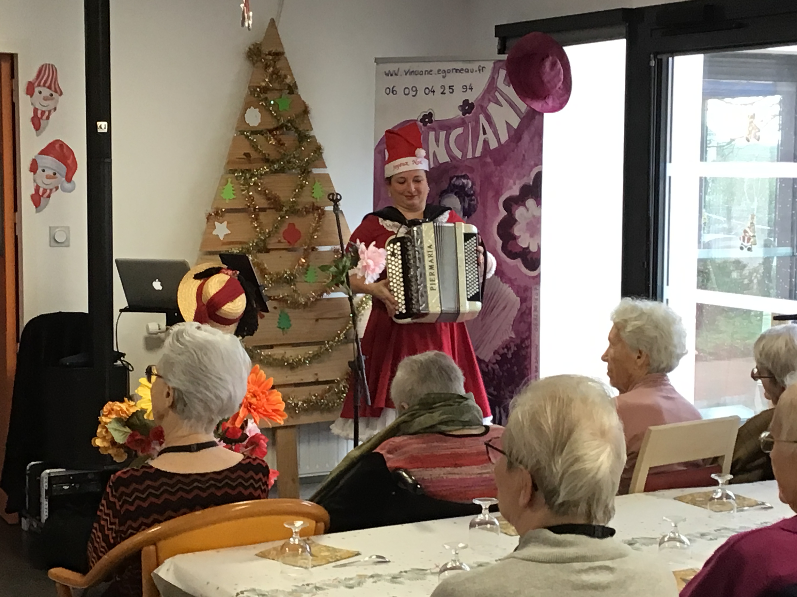 Le goûter de Noël au sein de l’EHPAD a réuni l’ensemble des résidents autour d’un bon moment musical animé par Vincianne Egonneau artiste chanteuse en collaboration avec les animatrices Claudie et Sandra.