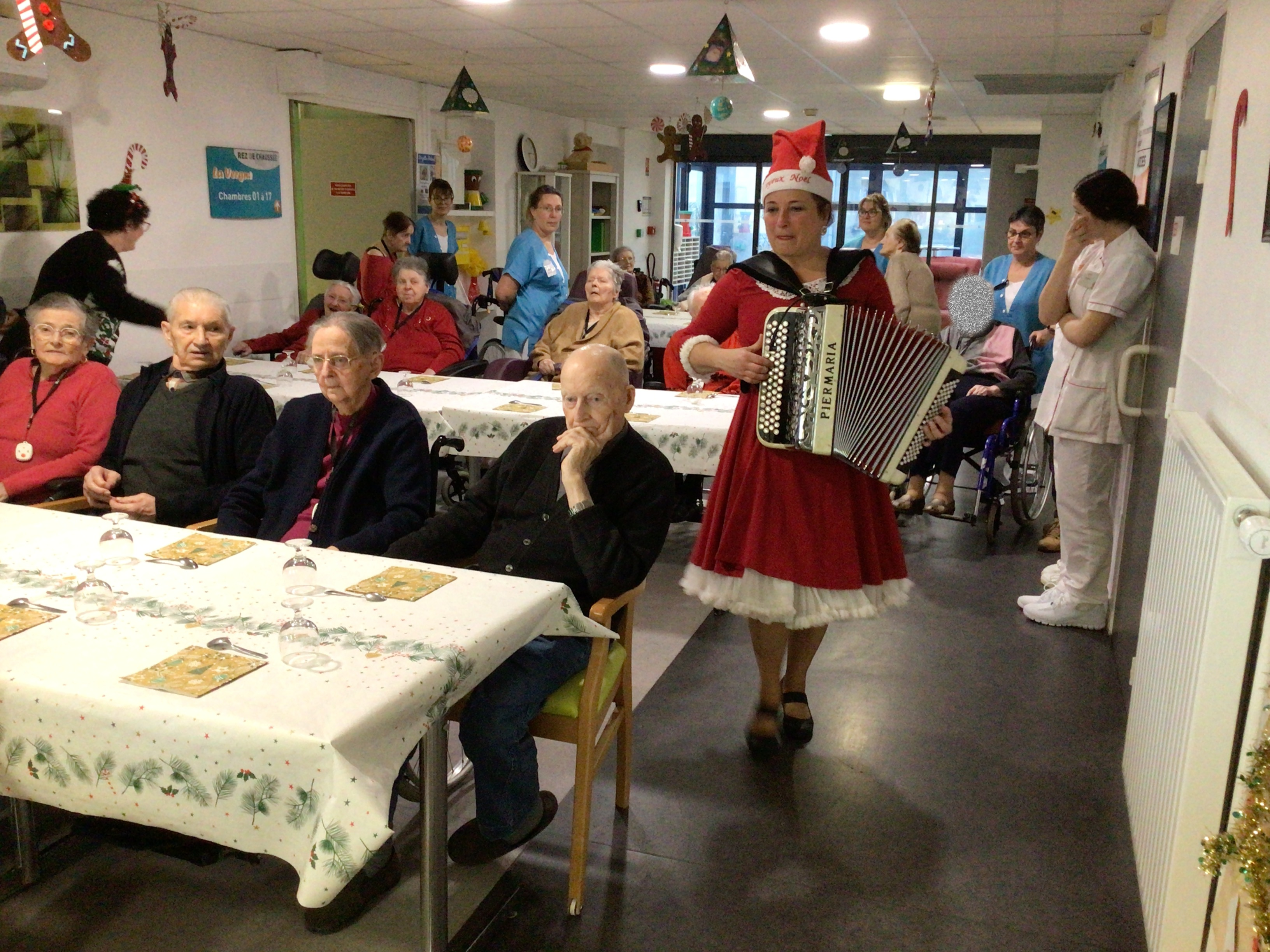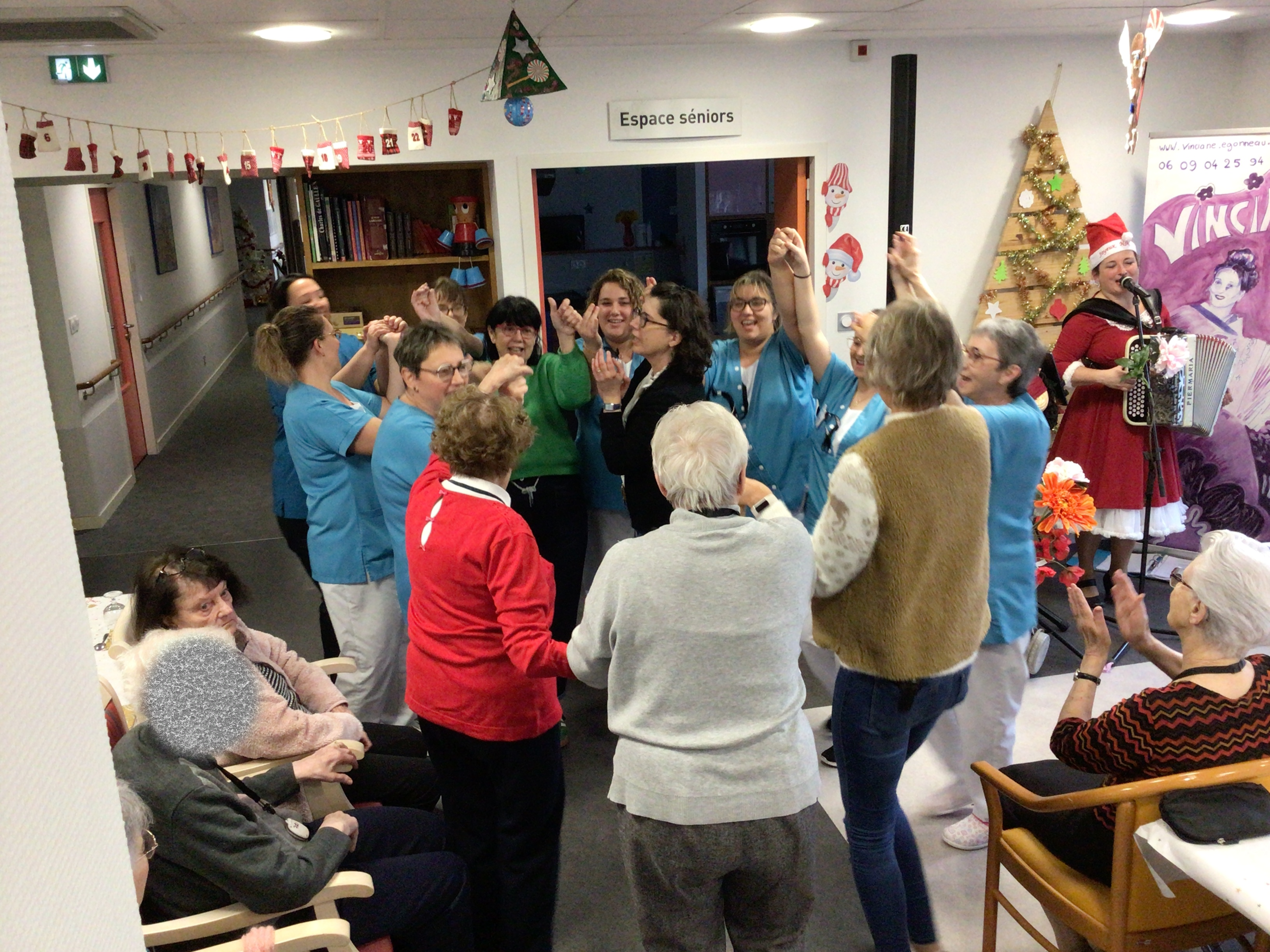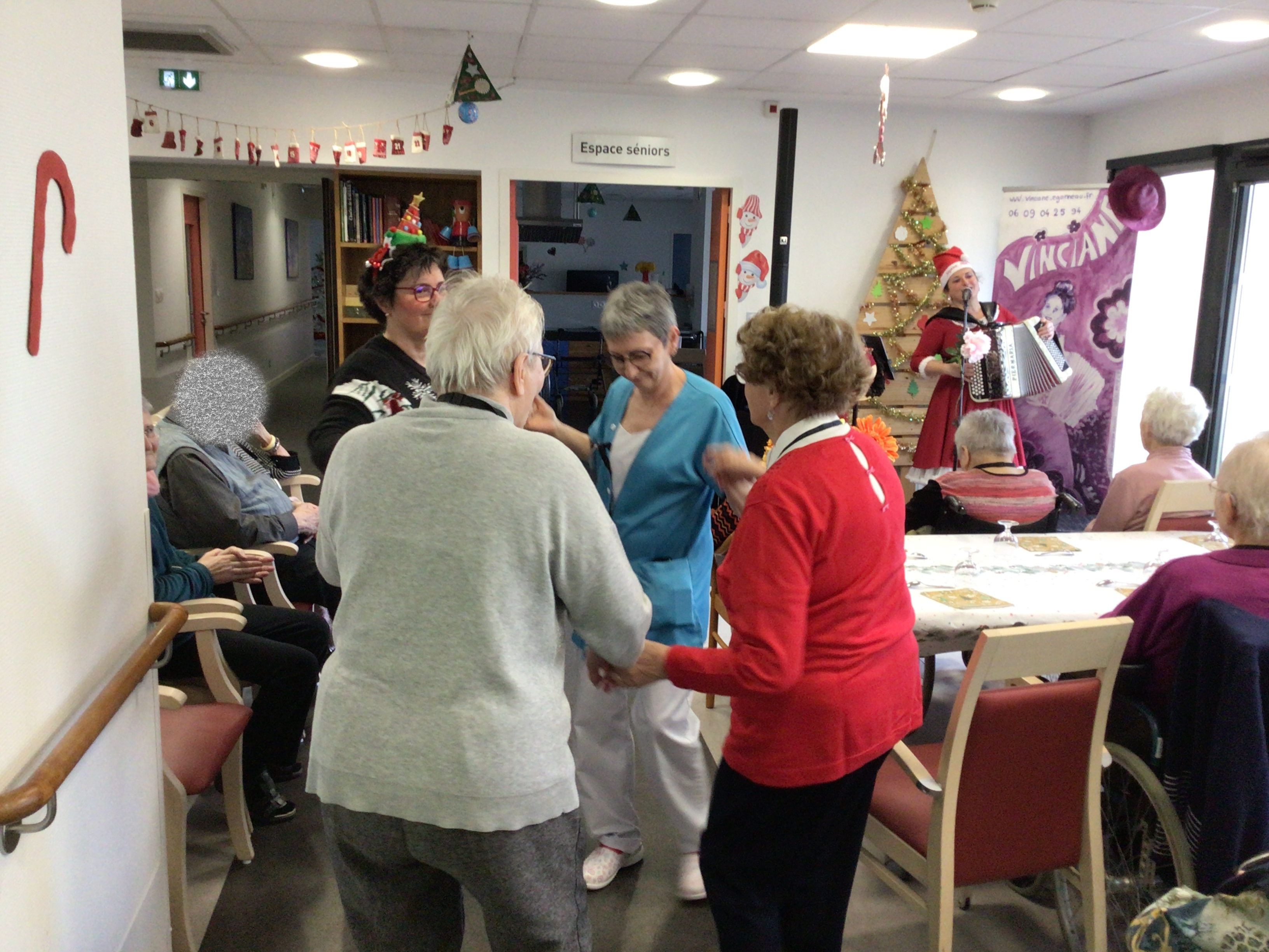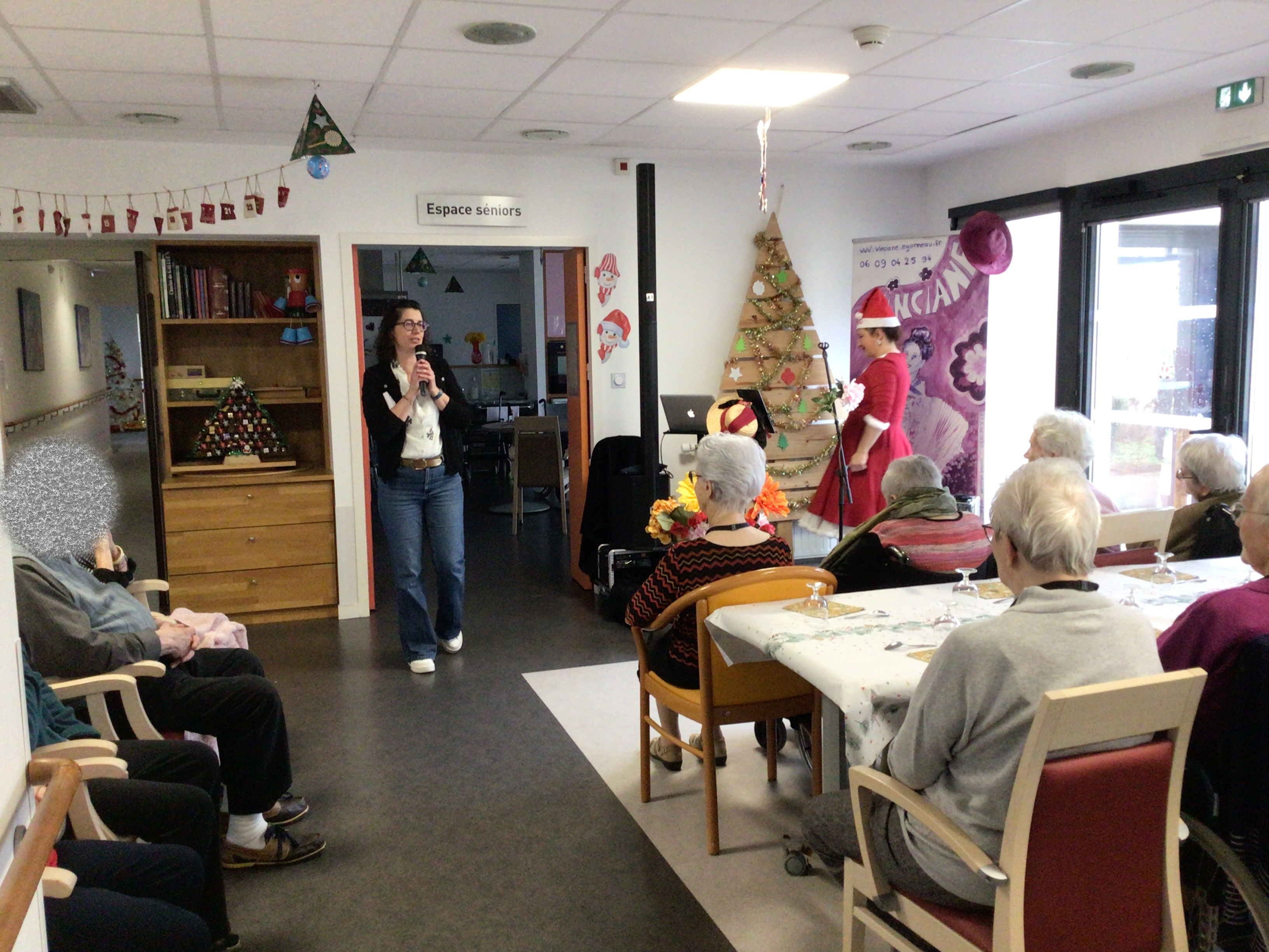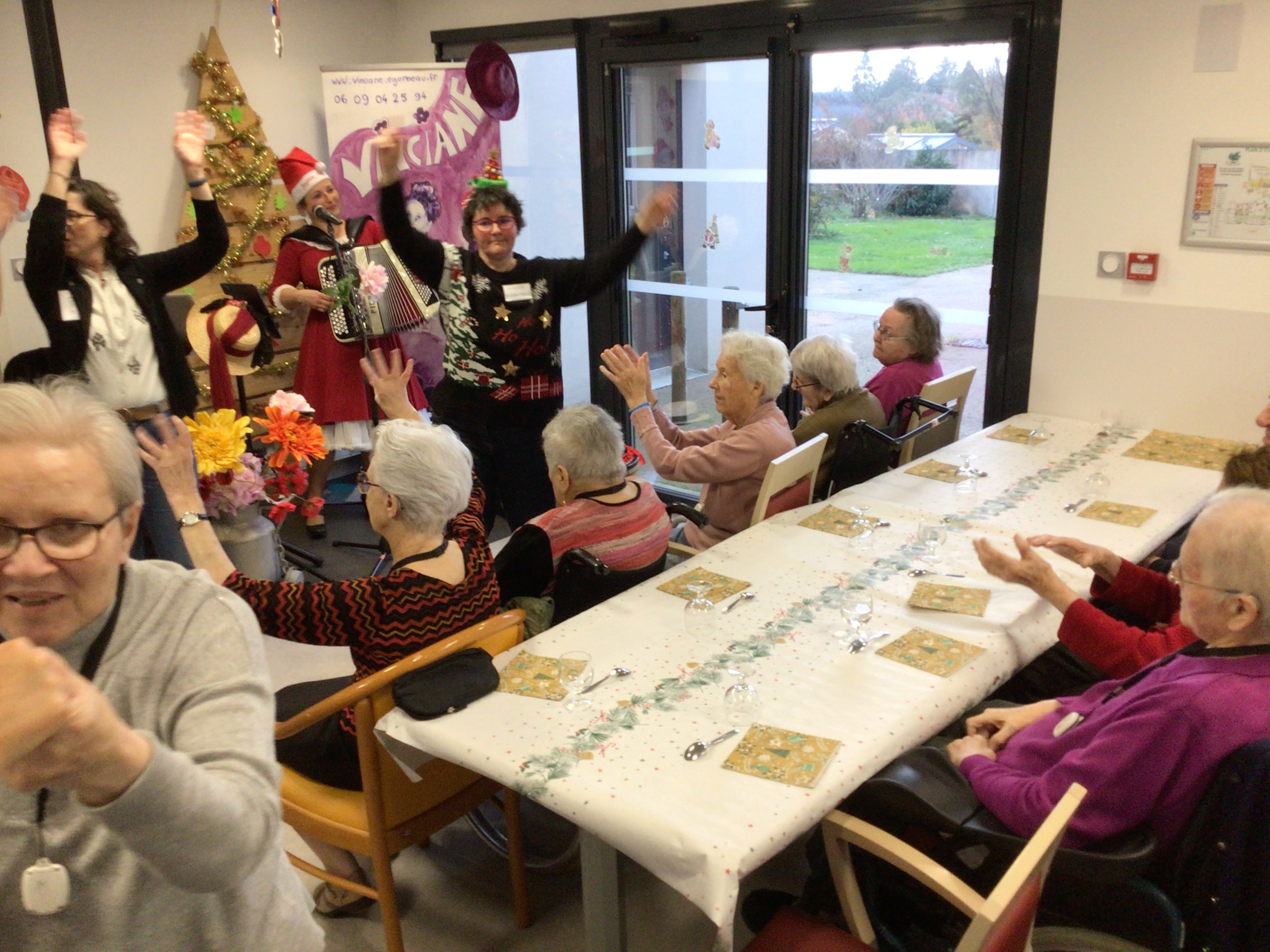 Le goûter de Noël au sein de l’EHPAD a réuni l’ensemble des résidents autour d’un bon moment musical animé par Vincianne Egonneau artiste chanteuse en collaboration avec les animatrices Claudie et Sandra.