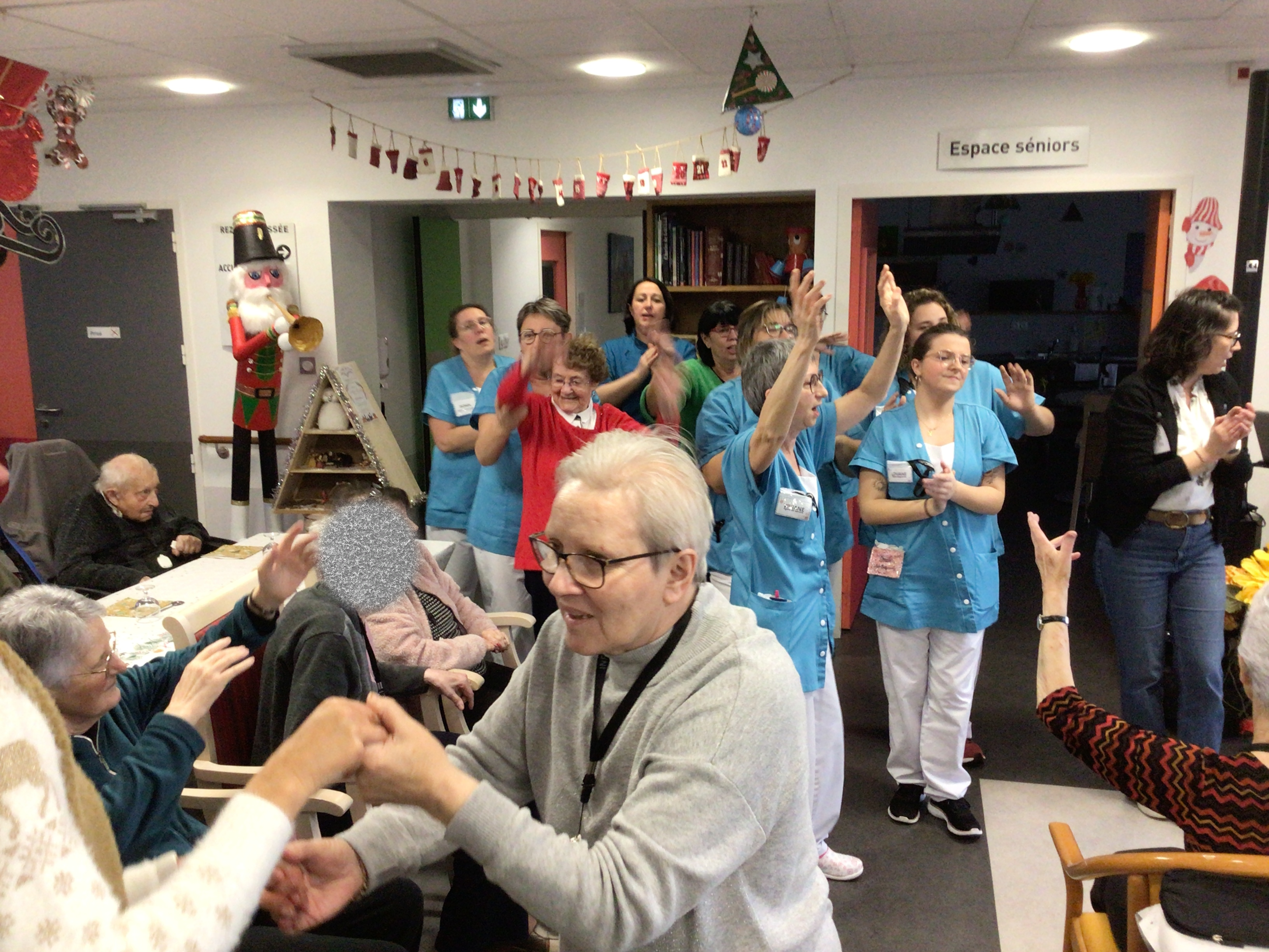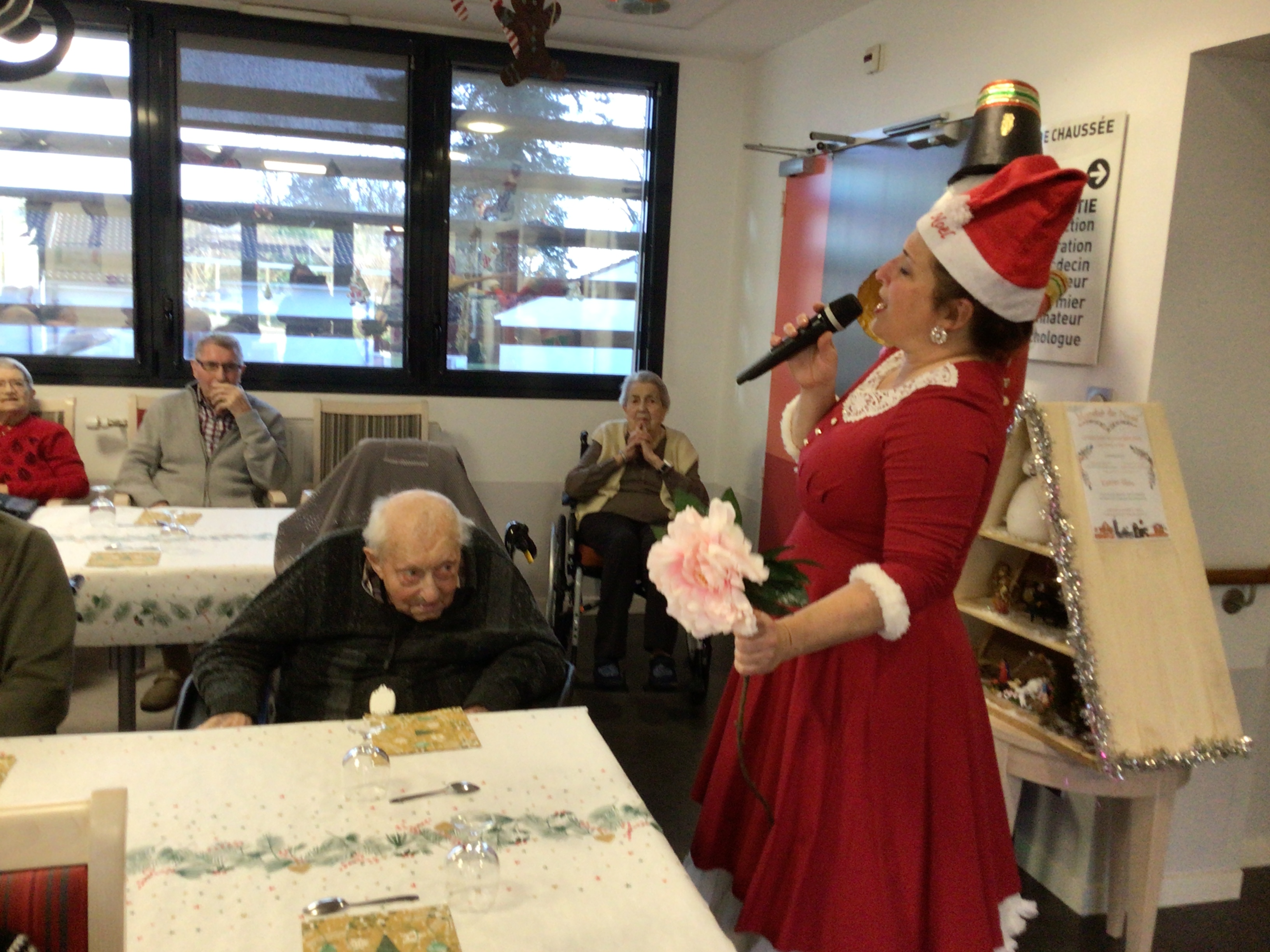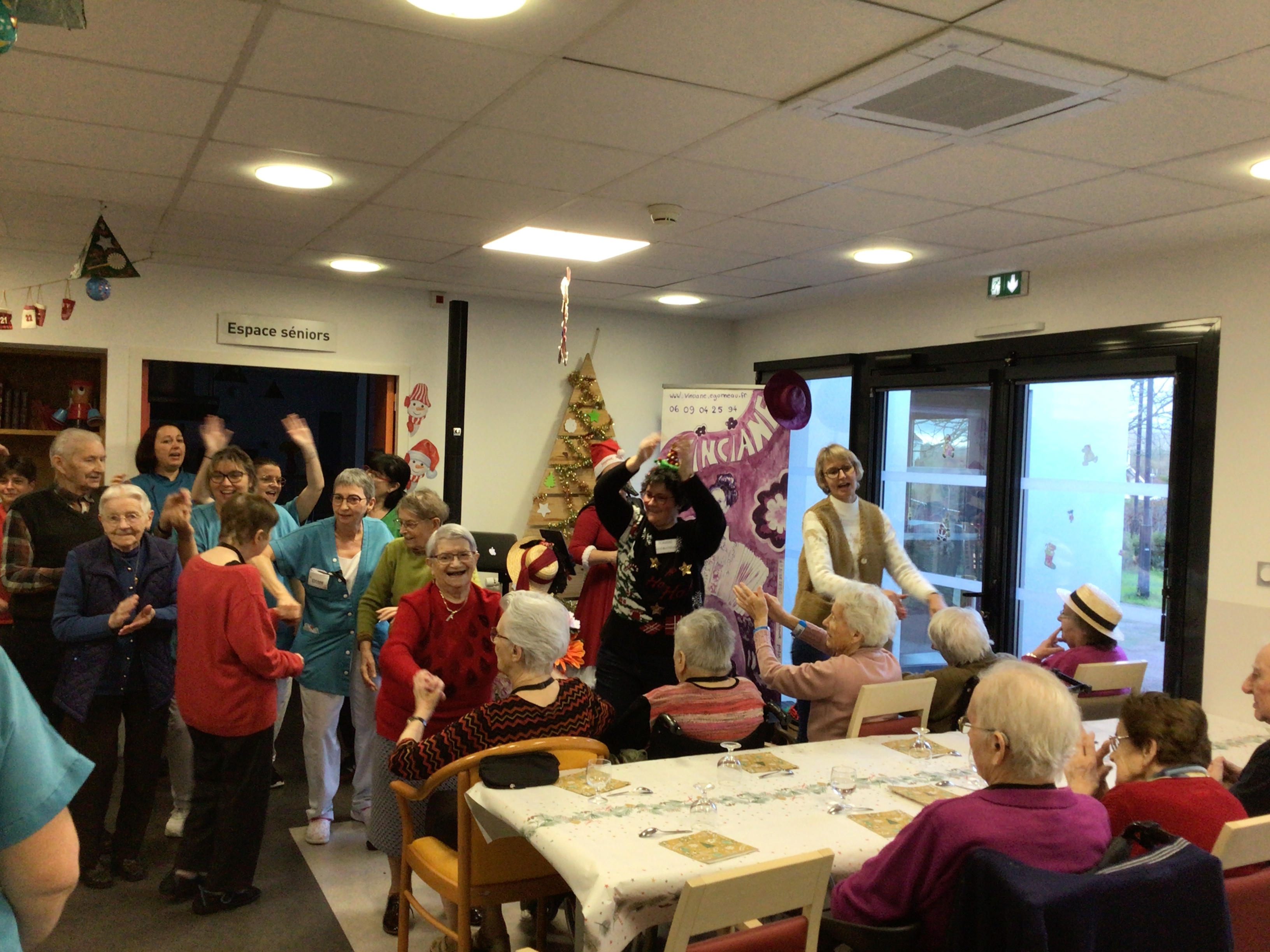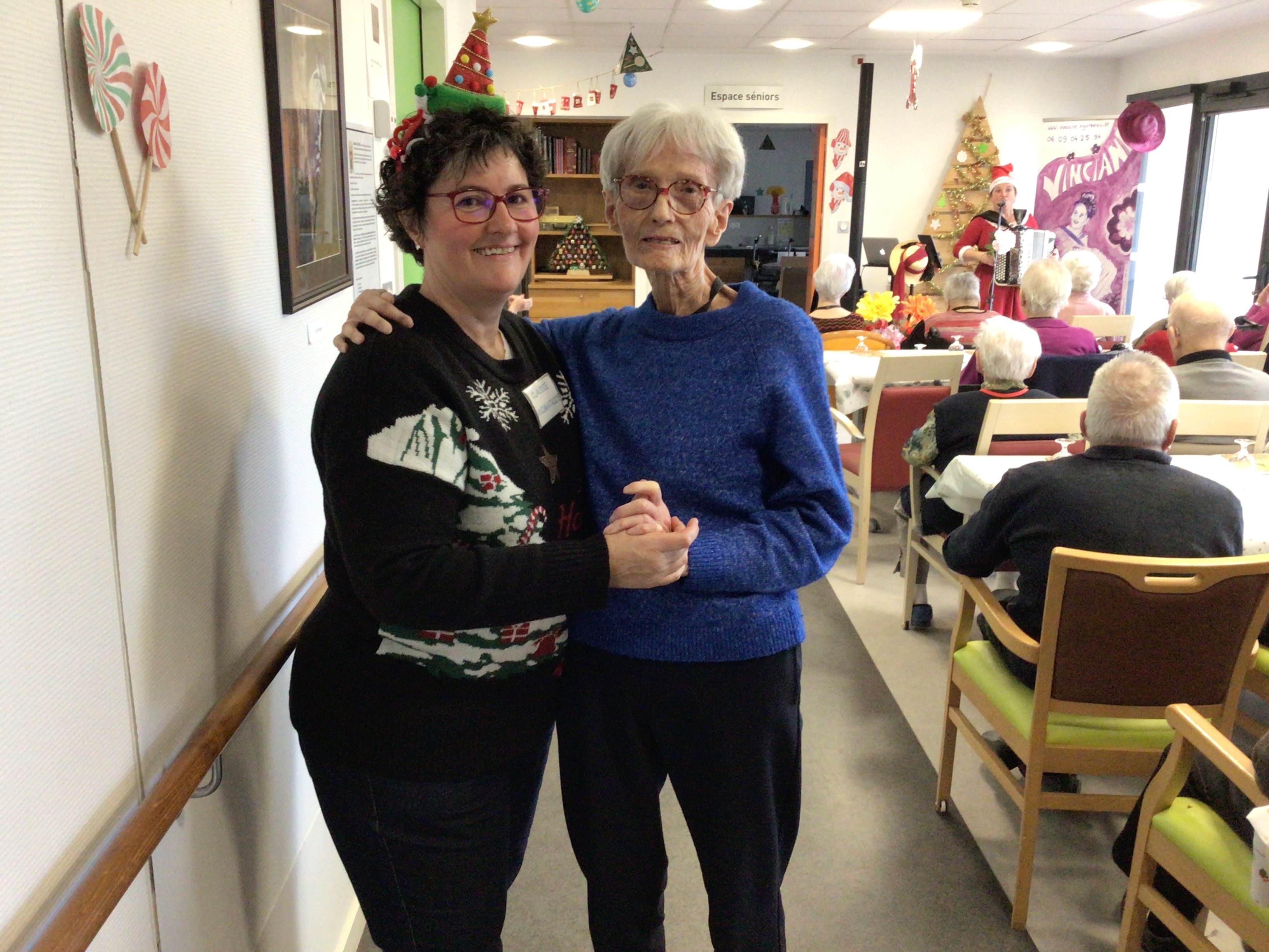 Le goûter de Noël au sein de l’EHPAD a réuni l’ensemble des résidents autour d’un bon moment musical animé par Vincianne Egonneau artiste chanteuse en collaboration avec les animatrices Claudie et Sandra.