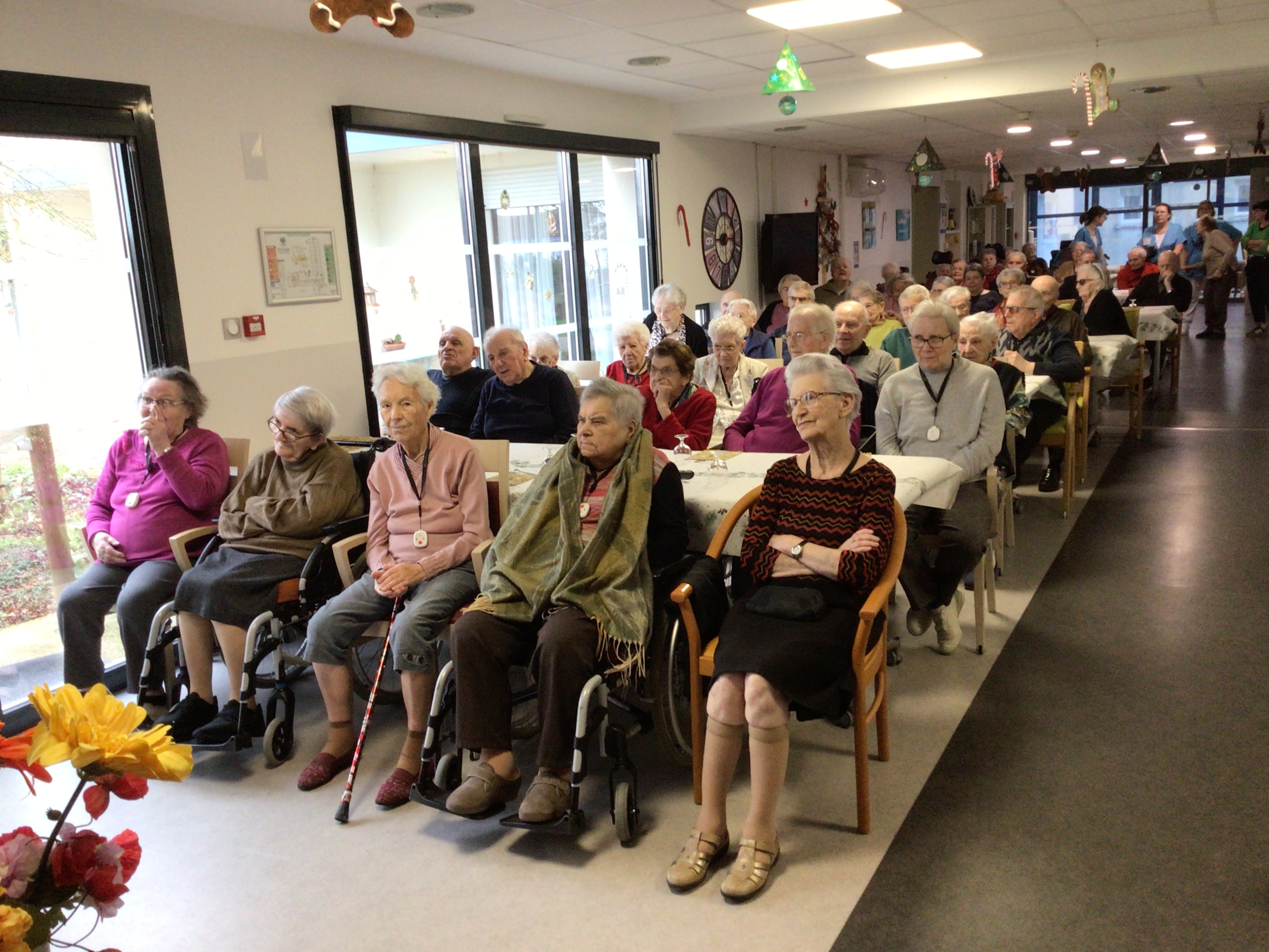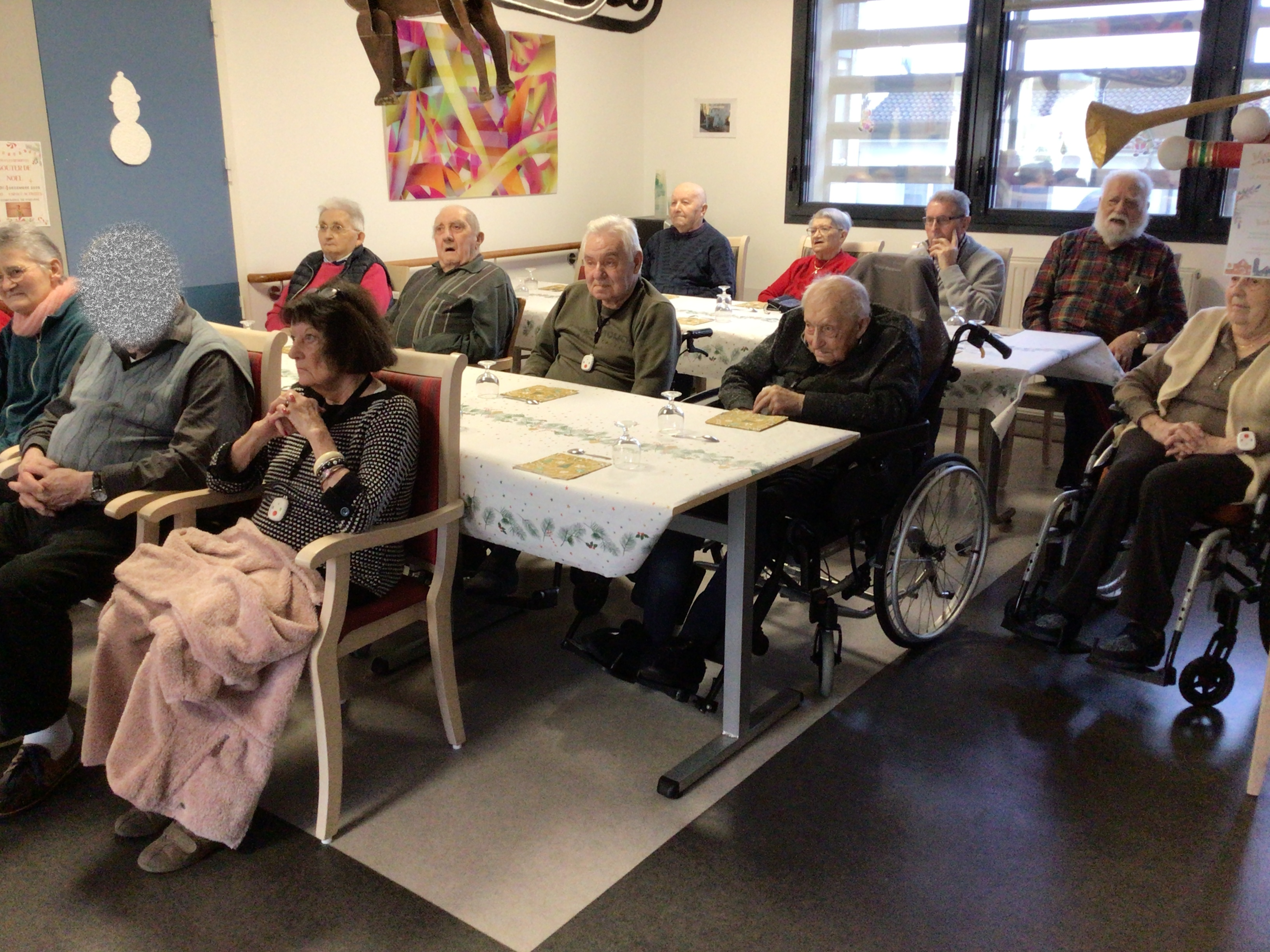 La salle avait été préparée avec soin, de belles tables, une belle décoration installée avec les résidents, tous les ingrédients étaient réunis pour passer un bel après-midi.