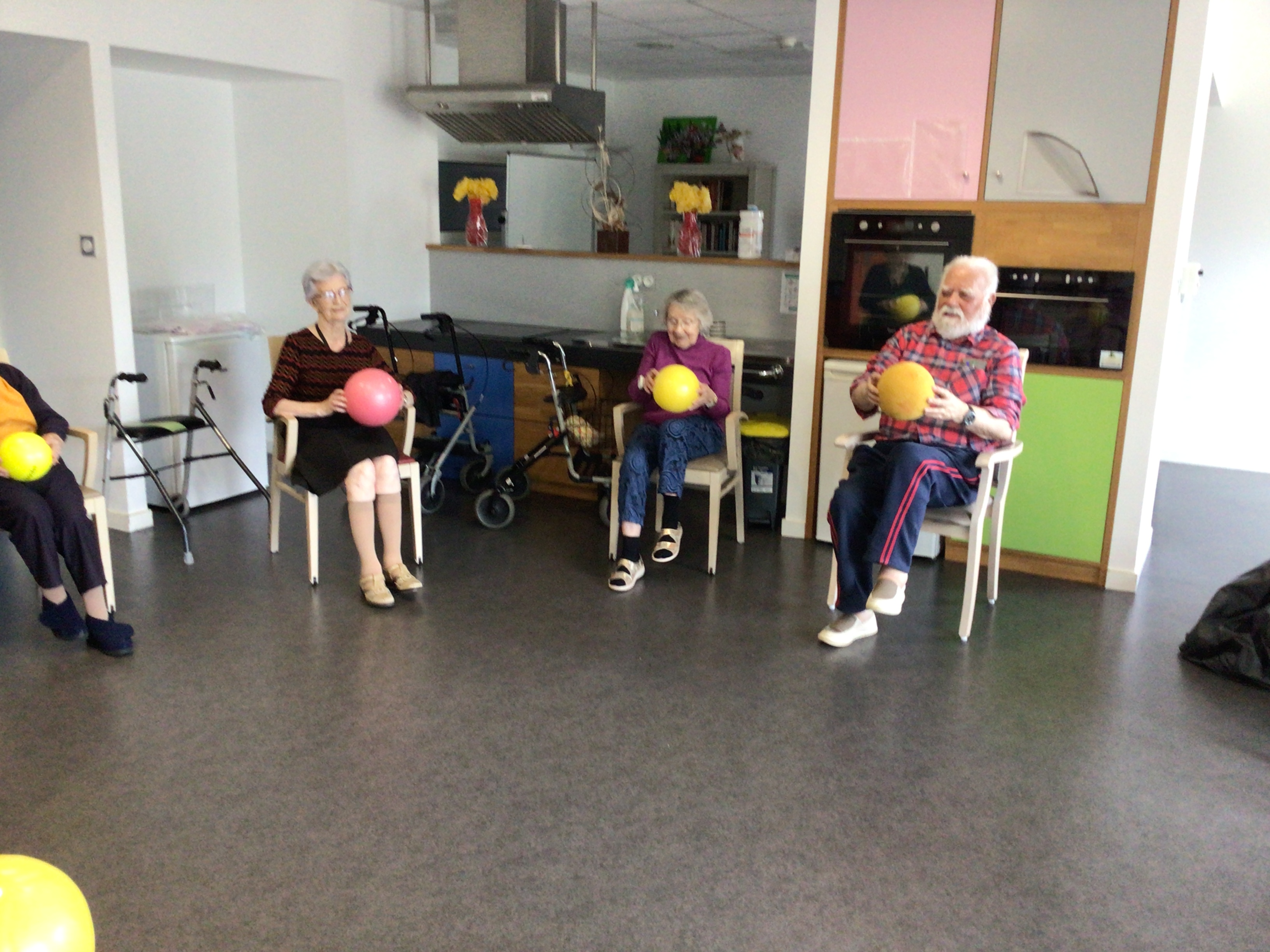 Séance Dérouill’âge cet après-midi, des exercices de renforcement musculaire adaptés au groupe, un moment de sport détente, de jeux et surtout le plaisir d’être ensemble.