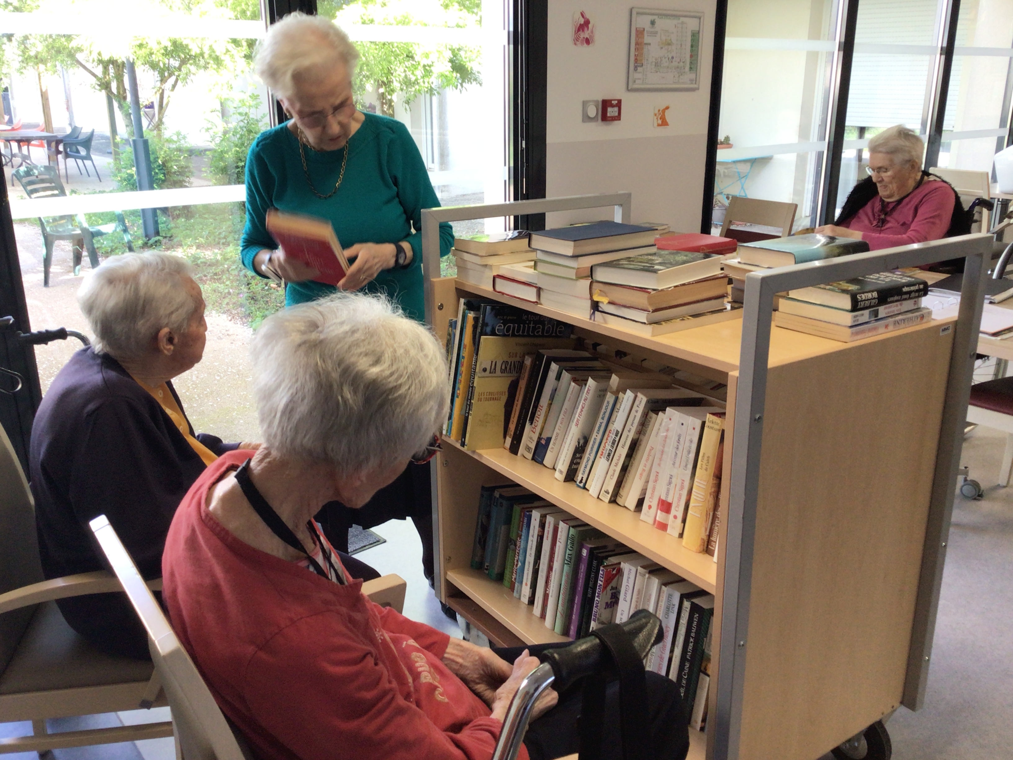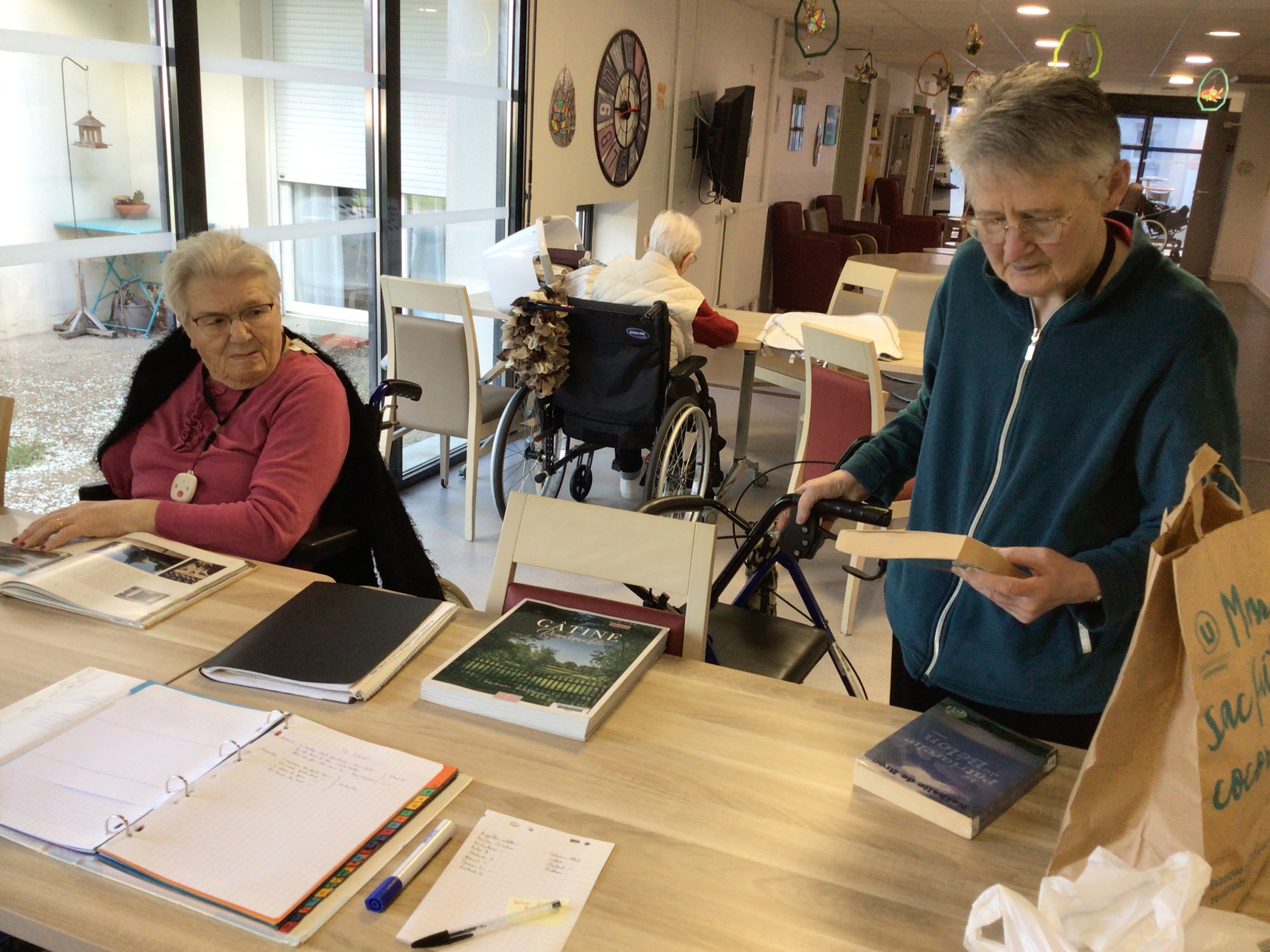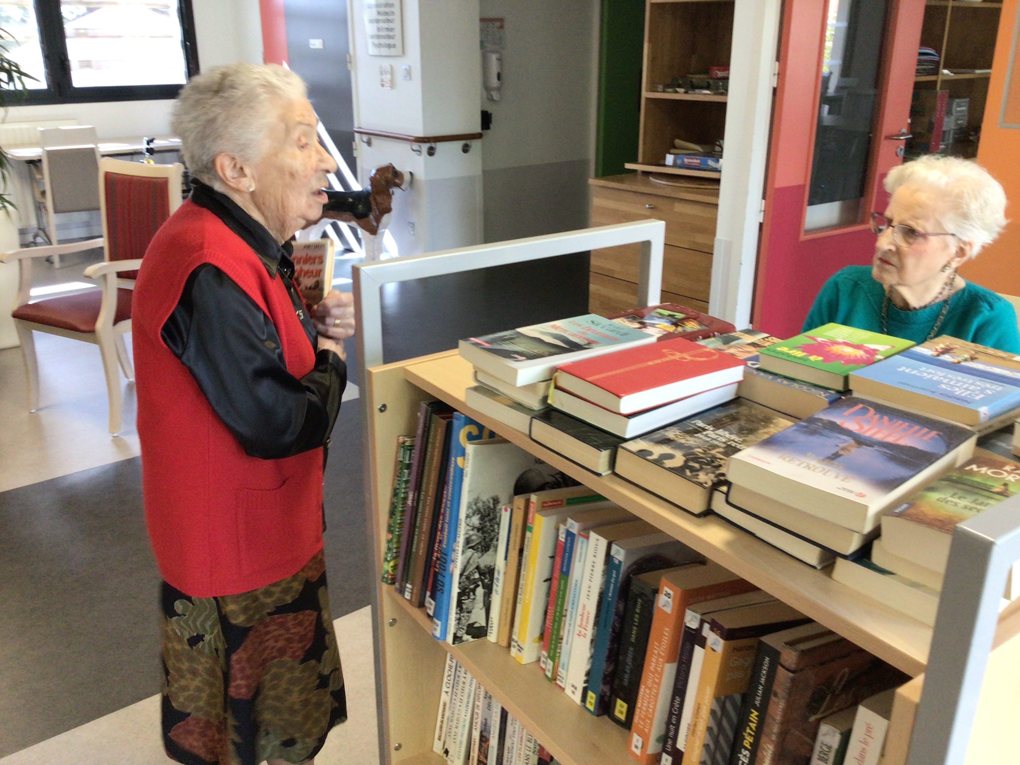 Un échange de livre pour certains qui profitent de ce temps autour des livres pour papoter avec les autres résidents.