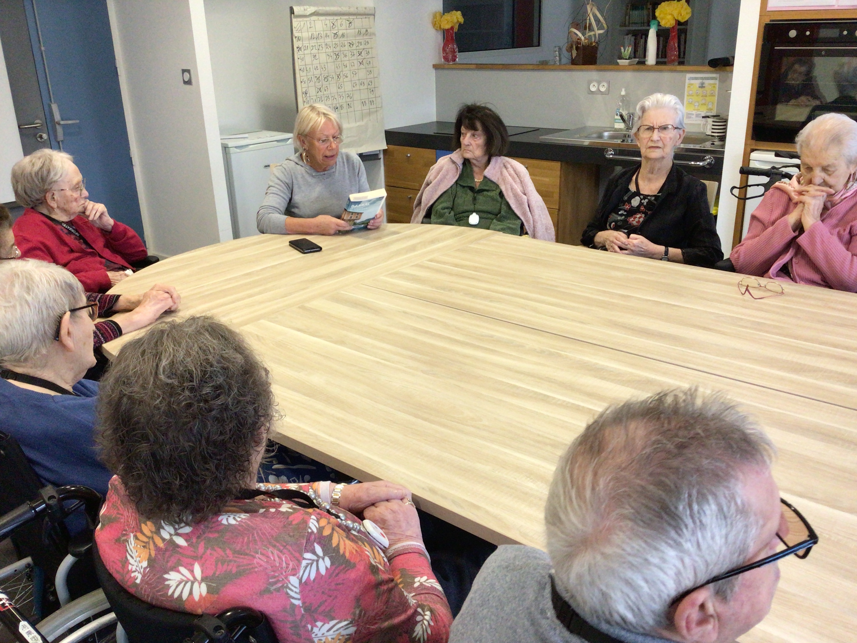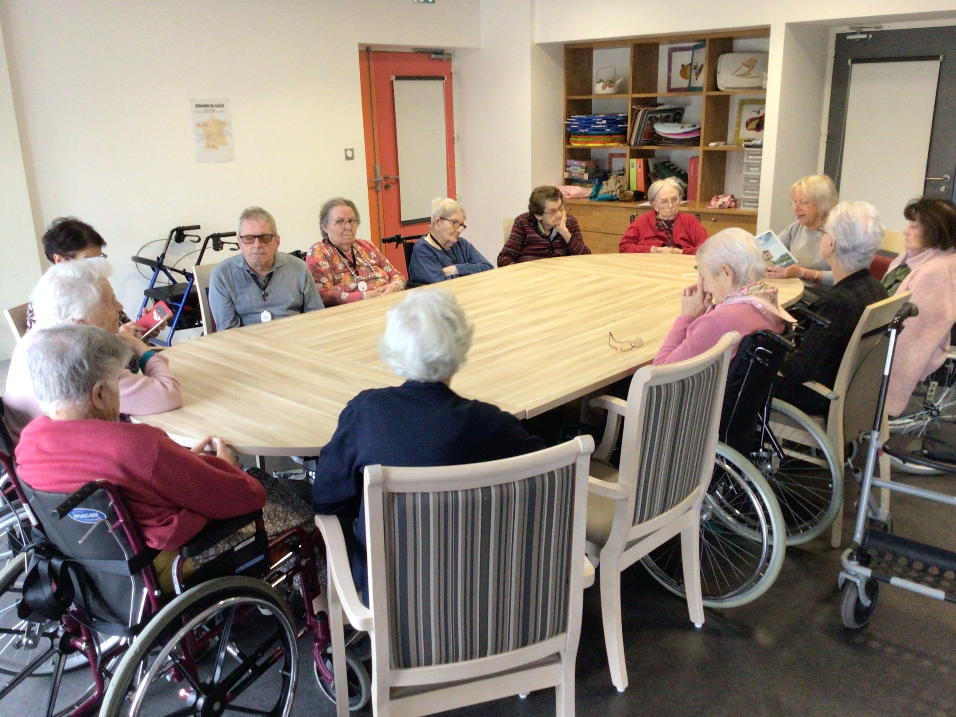-Atelier lecture avec les bénévoles de la "Lecture à haute voix".Les résidents ont pu apprécié ce moment de lecture en petit groupe.