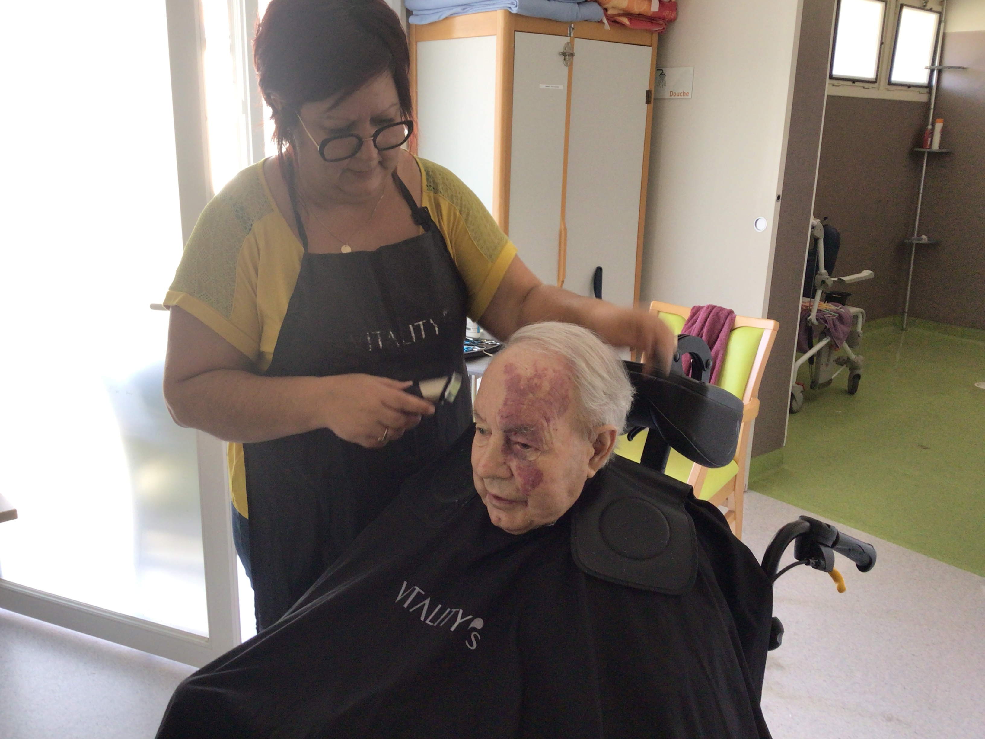 Lecture à haute voix, passage de la coiffeuse et séance de gymnastique adaptée avec Corentin, animateur SIEL BLEU