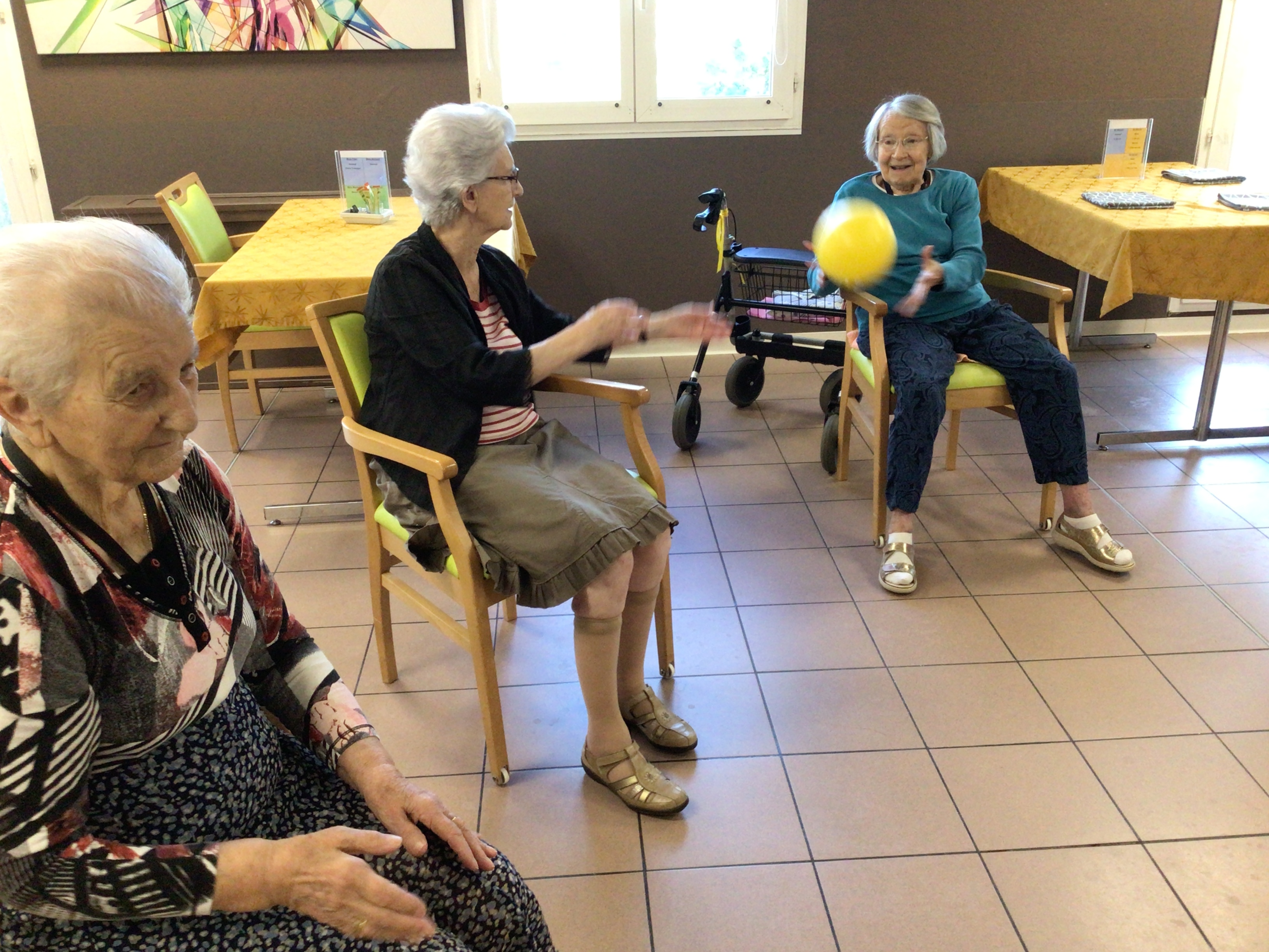 Séance Dérouill'âge cet après-midi, avec un groupe de résidents fidèles et motivés.